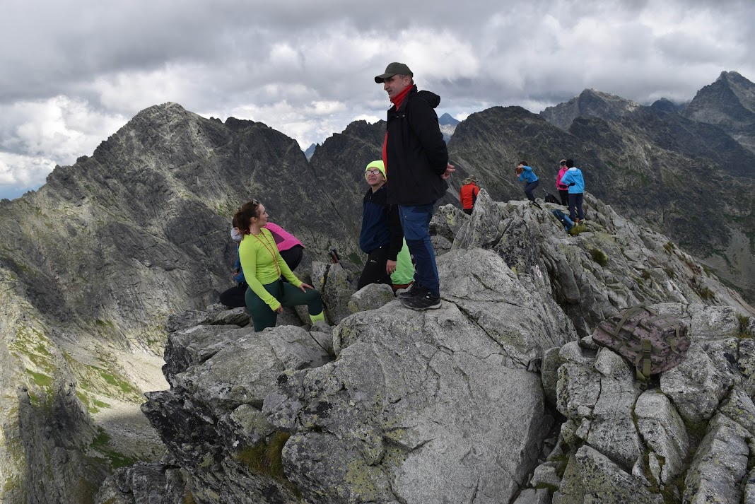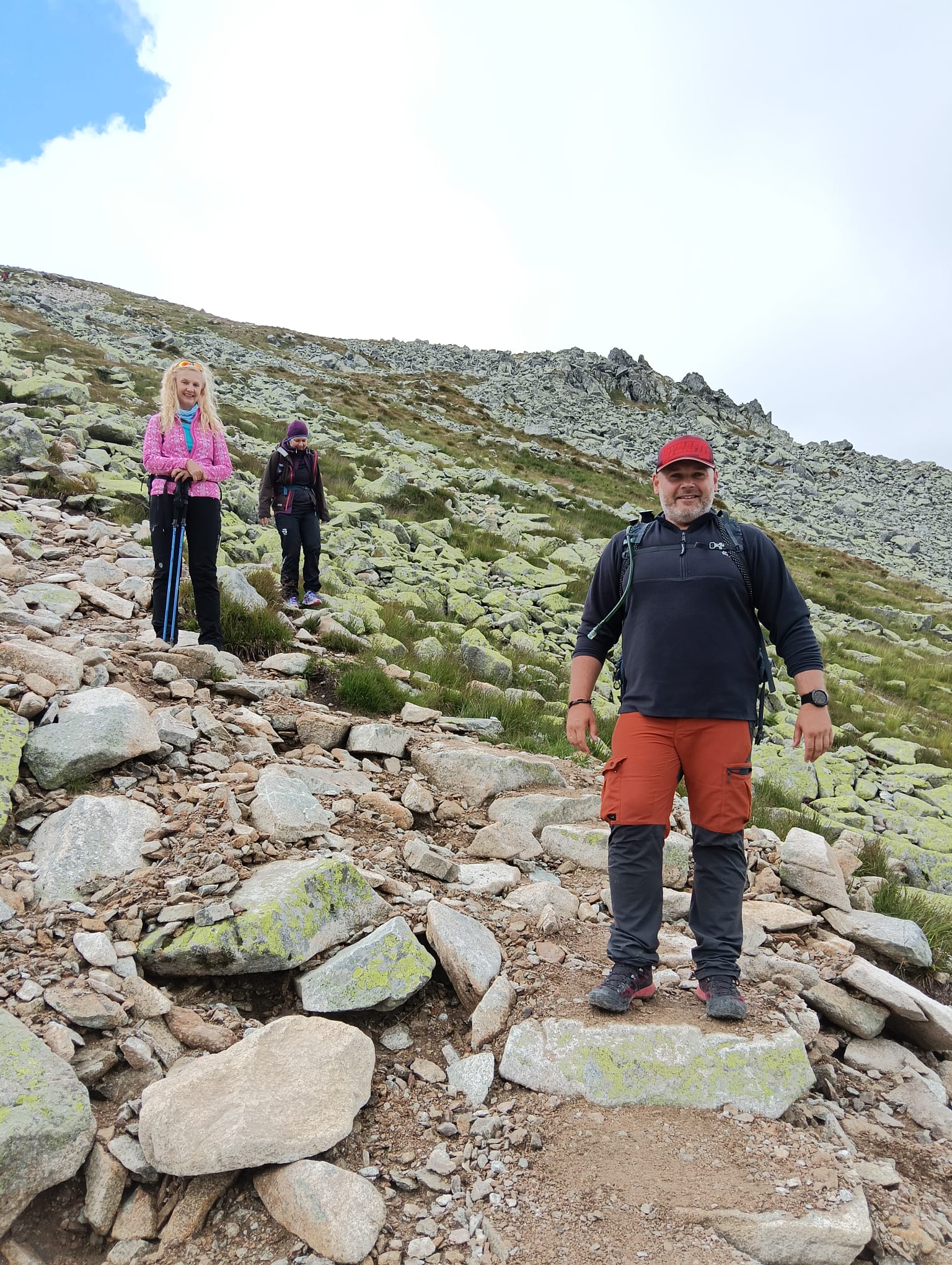 Na Wyżniej Przełęczy Koprowej niespodzianka- spotykamy grupę, która szła z Trzech Studniczek. Do celu pozostała niecała godzina, szlak zmienia kolor na czerwony.