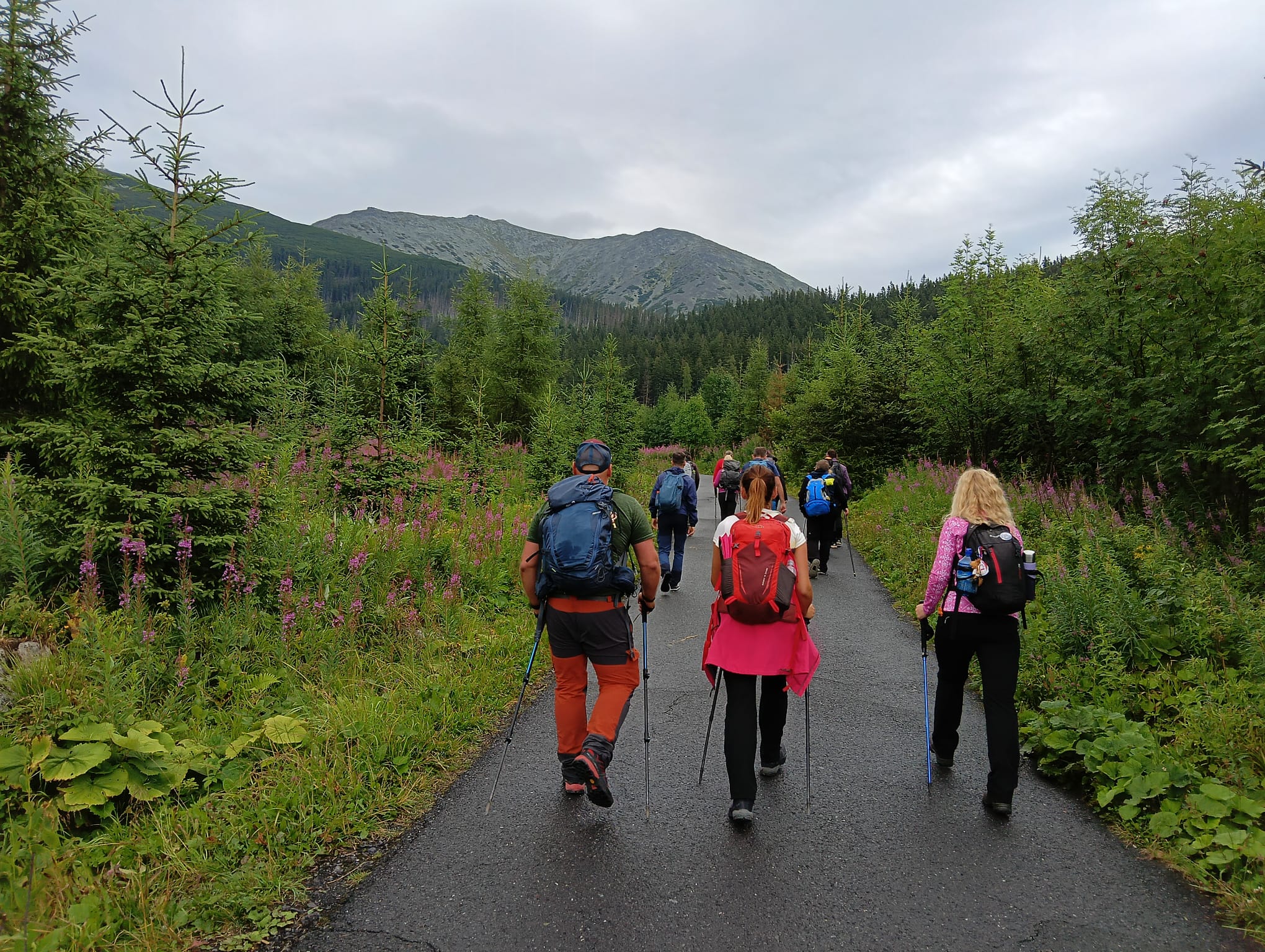 Grupa prowadzona przez Krzysztofa decyduje się na krótszą trasę przez Dolinę Mięguszowiecką. Rozpoczynamy w okolicach stacji kolejki Popradzki Staw i po godz. 9 ruszamy asfaltową drogą.