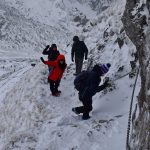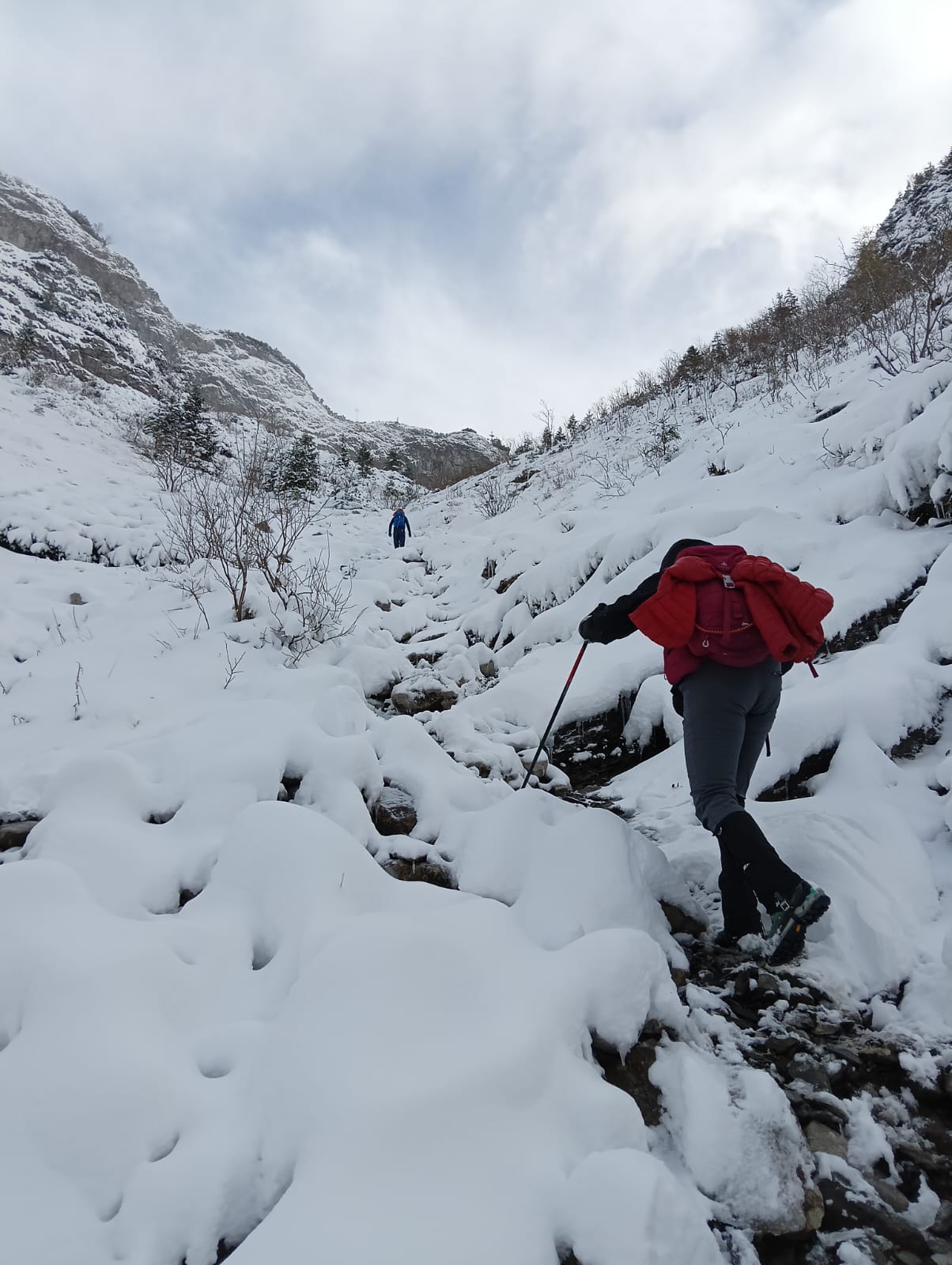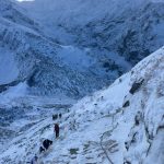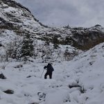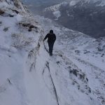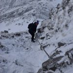 Wspinamy się fragmentem Głazistego Żlebu. Nachylenie wzrasta i podejście robi się bardziej wymagające.