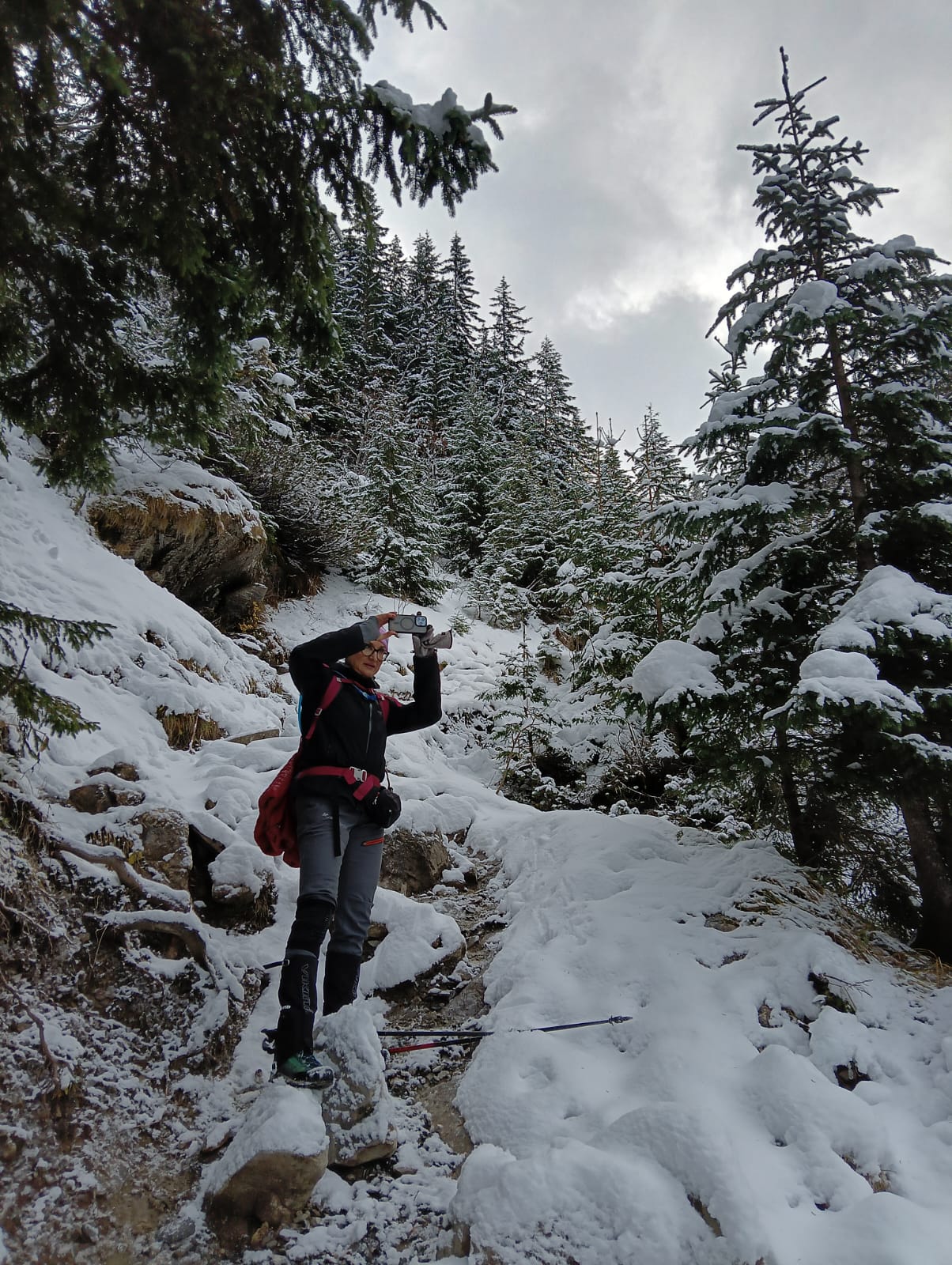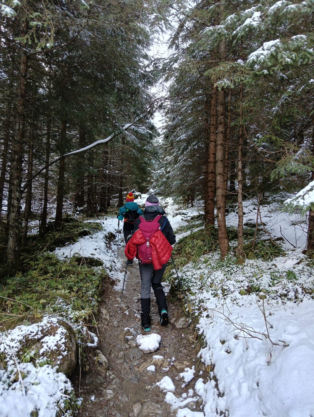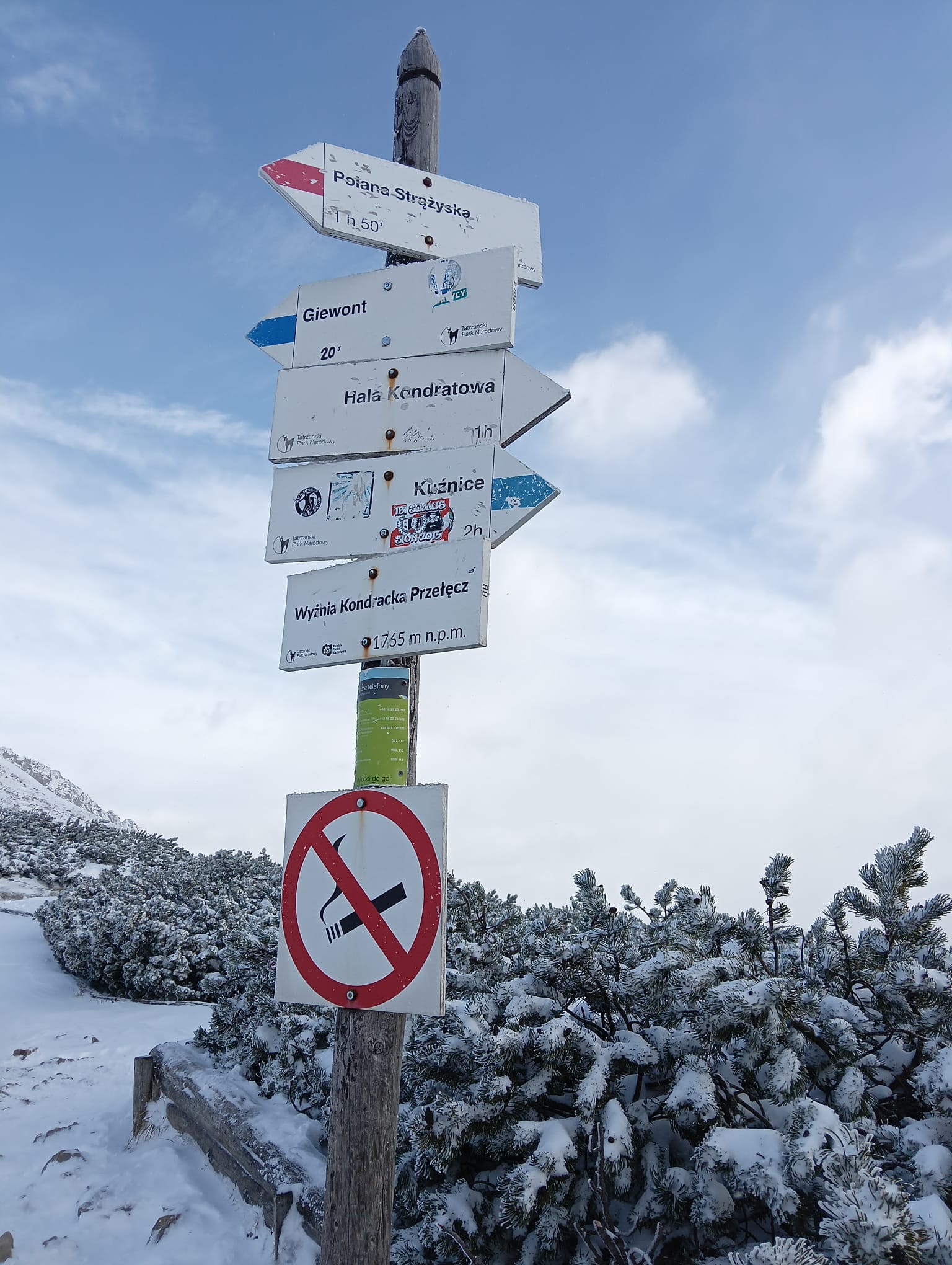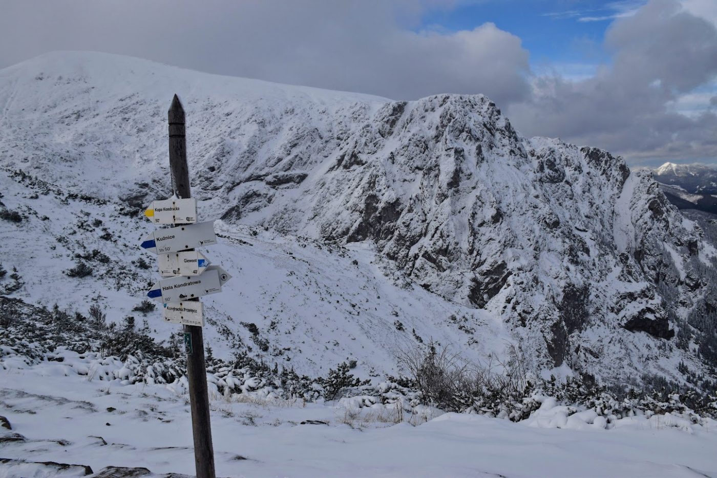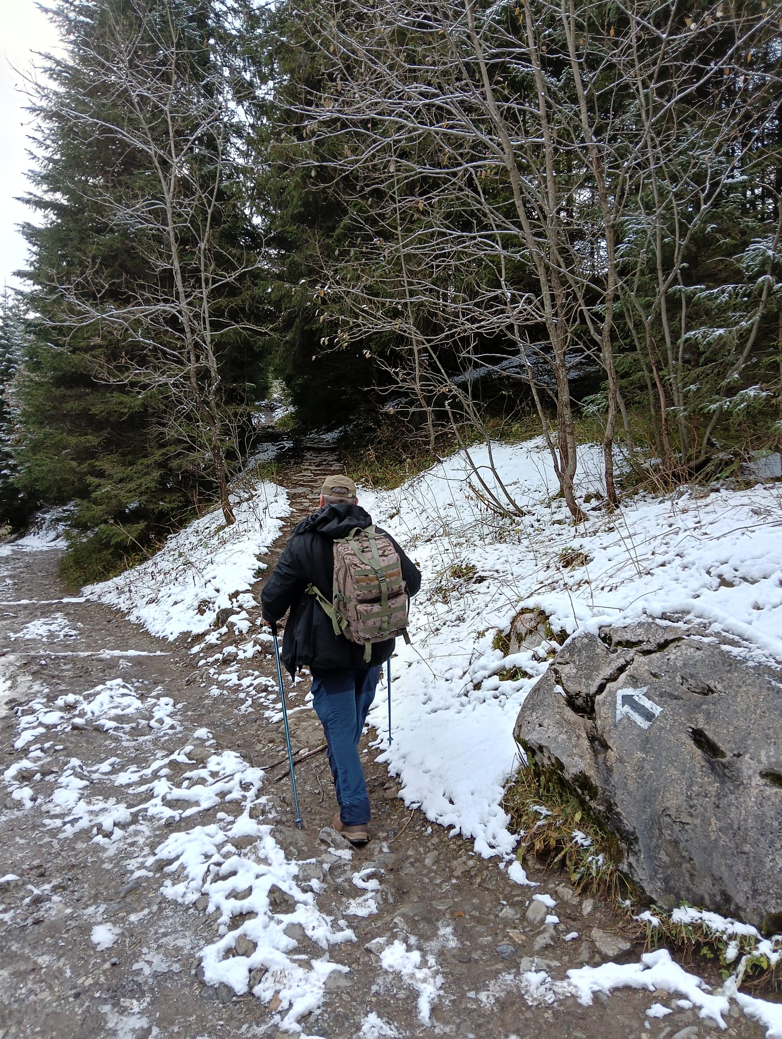 Na rozstaju Krzysztof skręca na czarno znakowaną Ścieżkę nad Reglami i decyduje się wejść na Wyżnią Przełęcz Kondracką przez Grzybowiec. Z późniejszej relacji dowiadujemy się, że droga była przysypana i miejscami trzeba było torować.