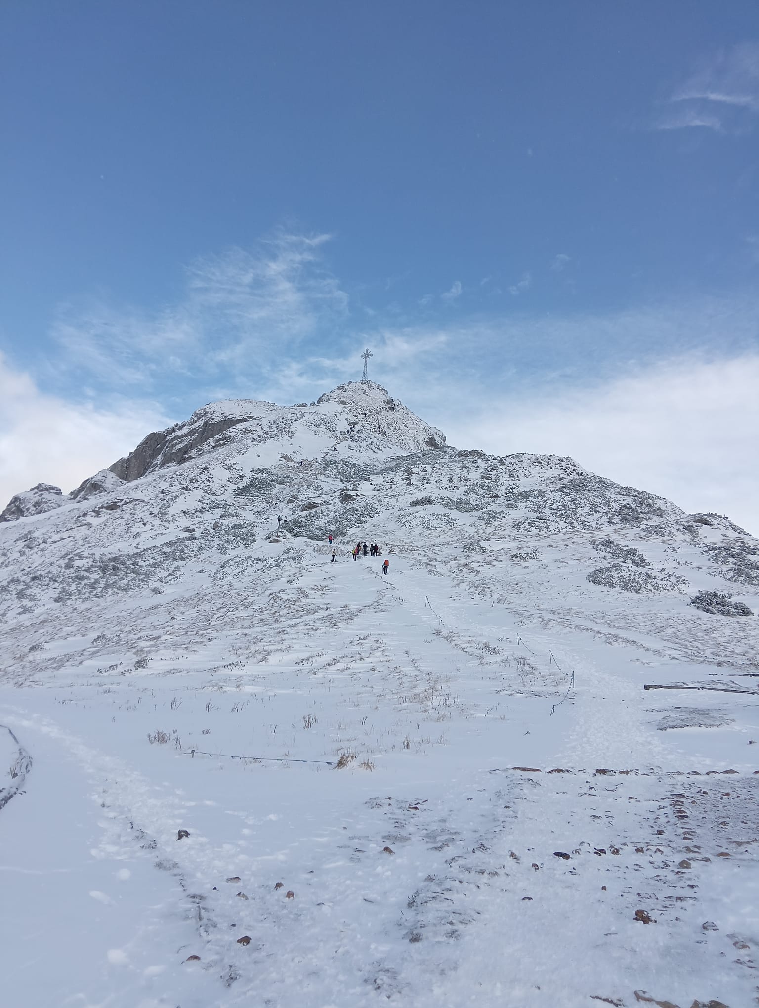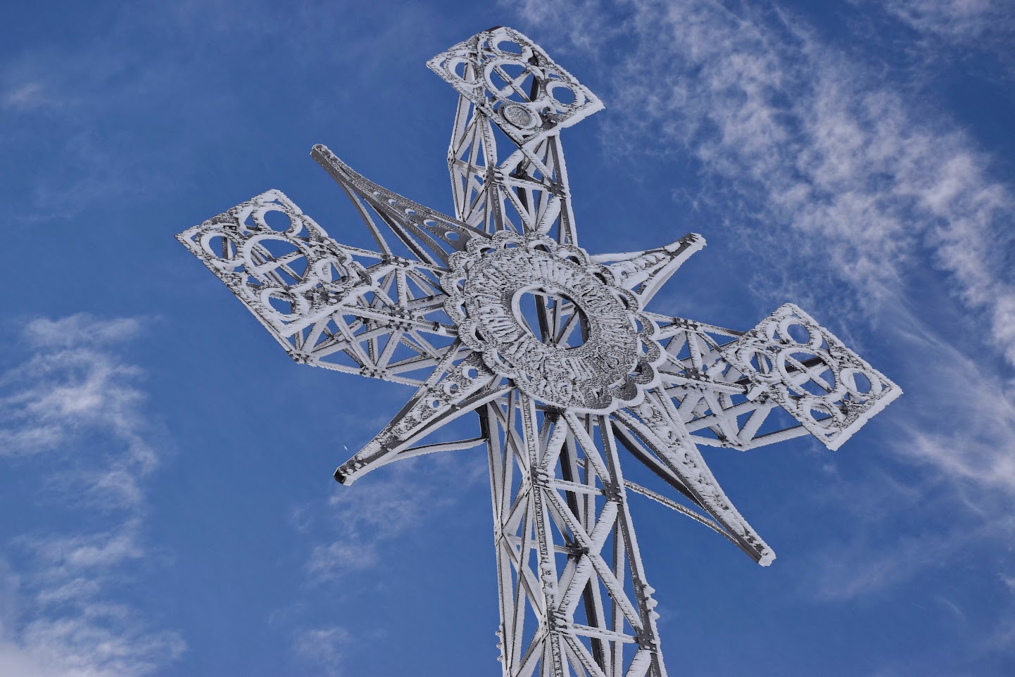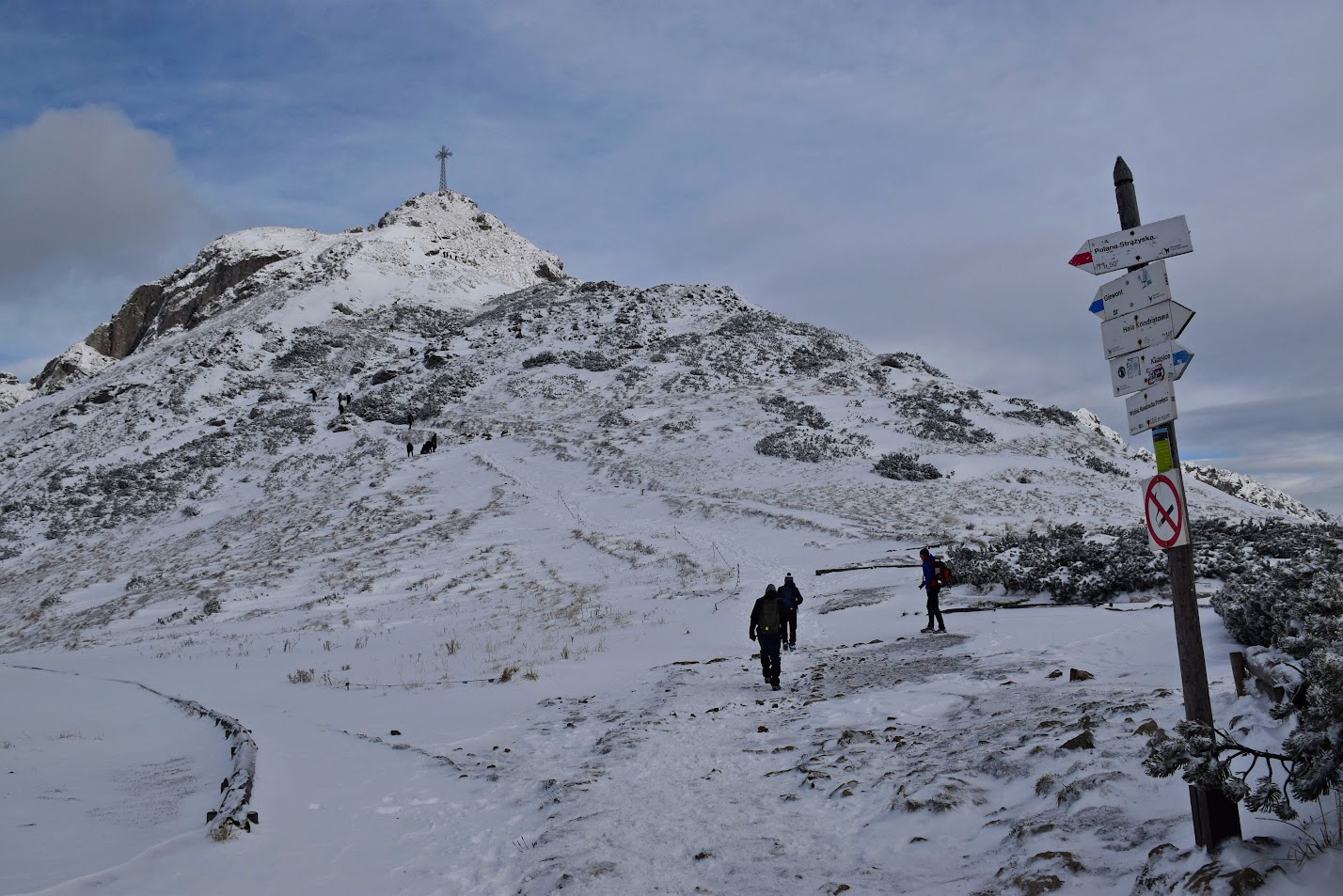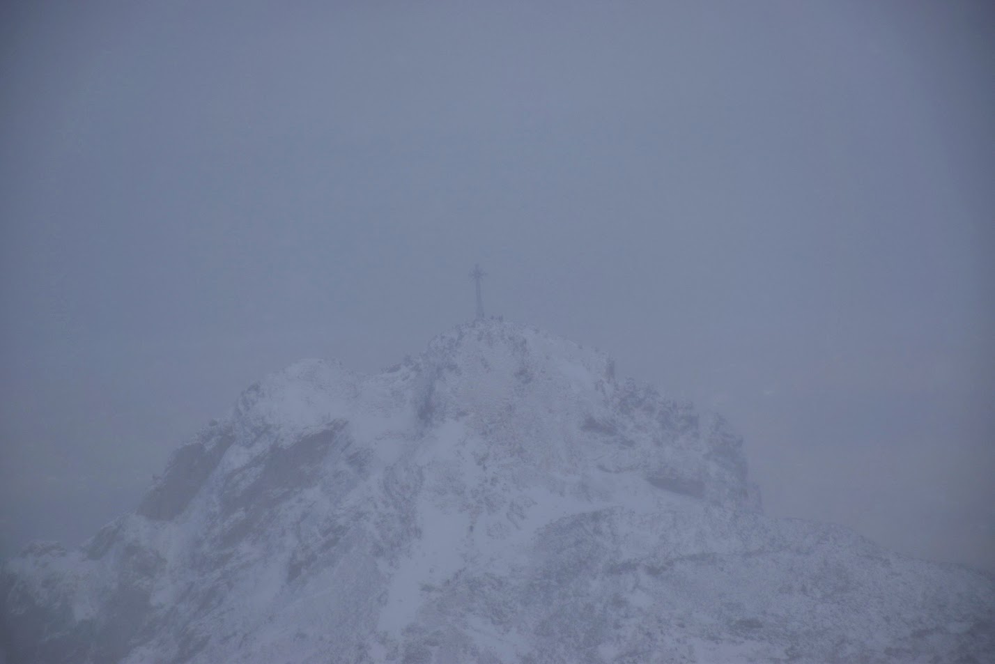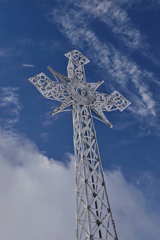 Bardzo rzadko zdarzają się takie pustki, że można mieć w kadrze cały krzyż tylko dla siebie. A ten jest potężny i imponujący! Wzniesiony przez pielgrzymów w 1901 roku, liczy 15 metrów, składa się z 400 żelaznych elementów i waży 1819 kilogramów. Maria Pawlikowska- Jasnorzewska pisała o nim w swoim wierszu „Krzyż na Giewoncie”: „Trzęsą nim fujawice przez stycznie i marce, a wśród żelaznych wiązań diabeł sprawia harce…”