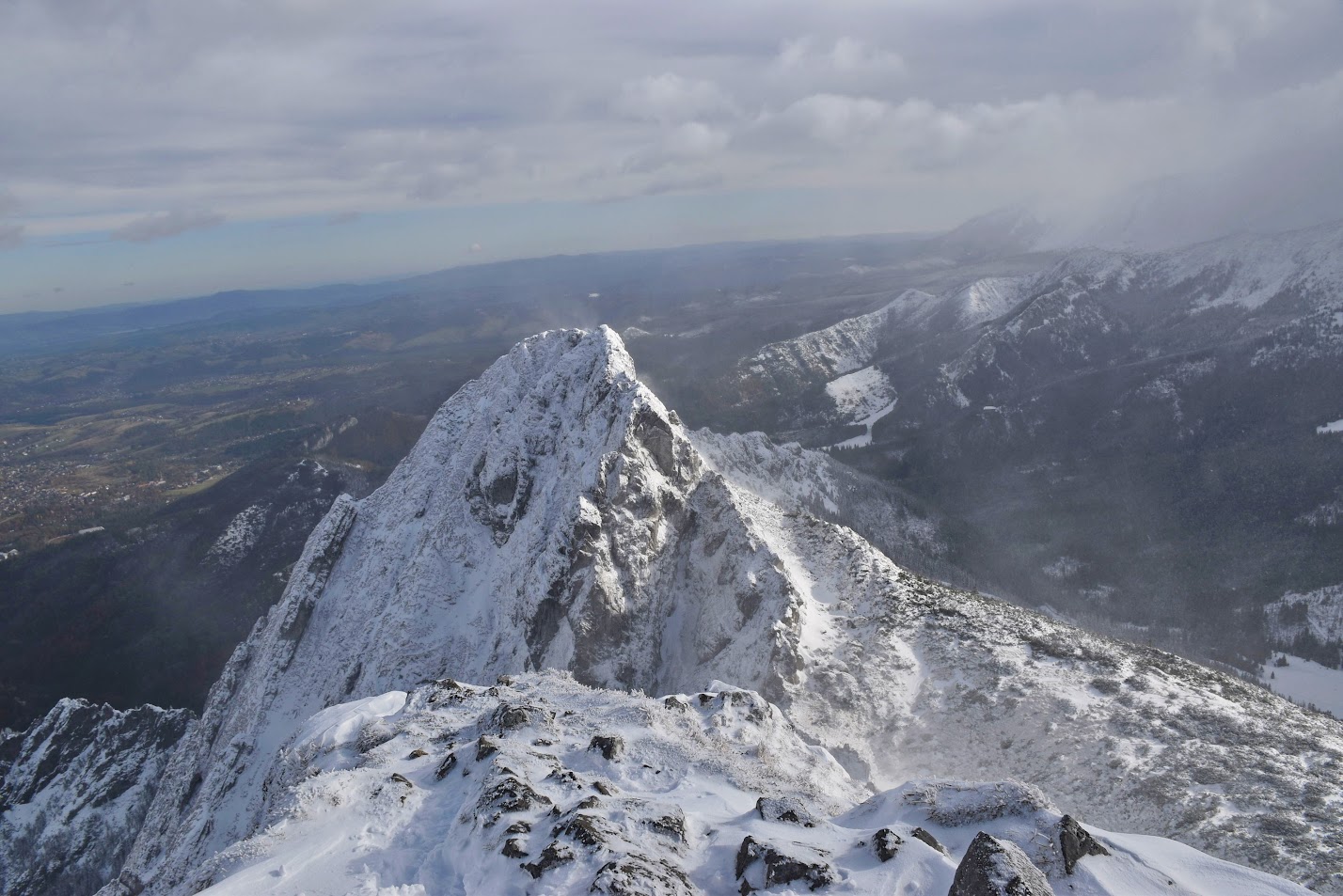 Robimy tylko kilka szybkich zdjęć. Na dłuższe sesje i podziwianie widoków nie mamy ochoty. Pogoda jest bardzo nieprzewidywalna i w każdej chwili może się znacznie pogorszyć. Widoki z Giewontu:
