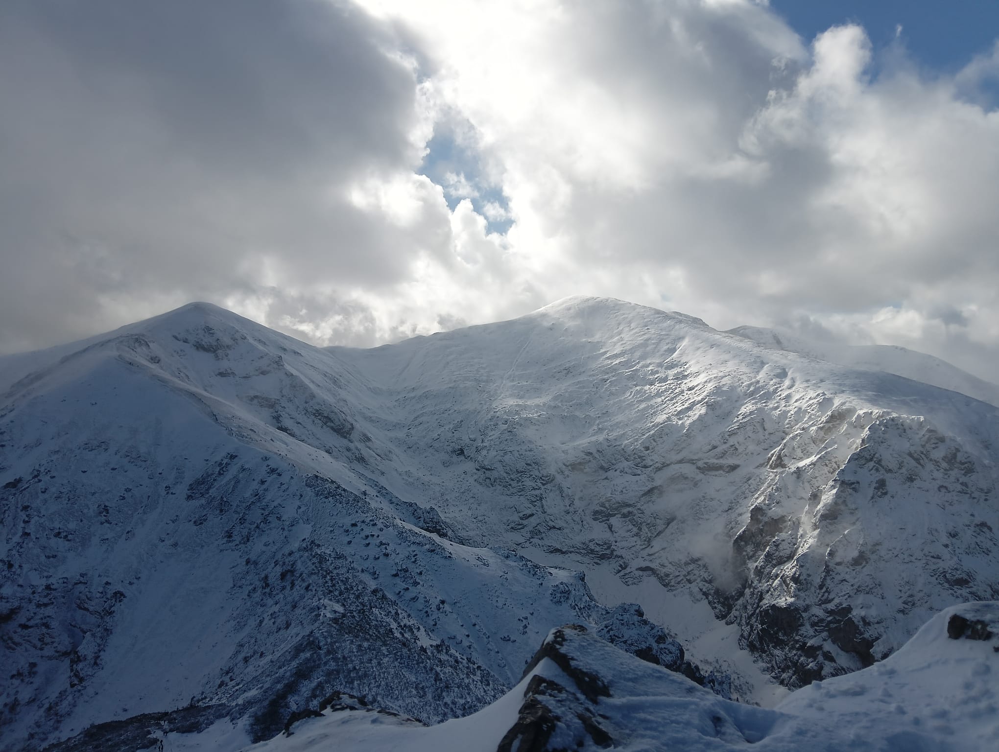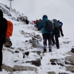 Schodzący w kierunku Hali Kondratowej zdecydowanie odradzają wejście. Warunki na łańcuchach były bardzo złe. Zimny i porywisty wiatr zawiewał tak mocno, że ciężko było utrzymać równowagę. Nie wszystkich góra dzisiaj wpuściła, a jeden z kolegów, któremu się udało, czekał szczycie pół godziny, zanim był w stanie schodzić…