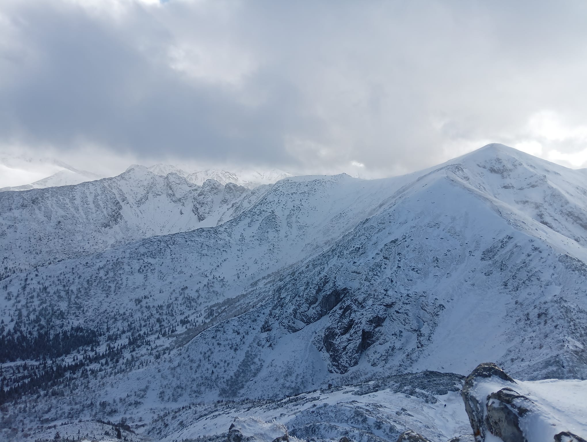 Postanawiamy podejść i zobaczyć co dalej, a w razie czego wycofać się. Mija kwadrans i jesteśmy na Wyżniej Kondrackiej Przełęczy. Warunki wciąż stabilne.