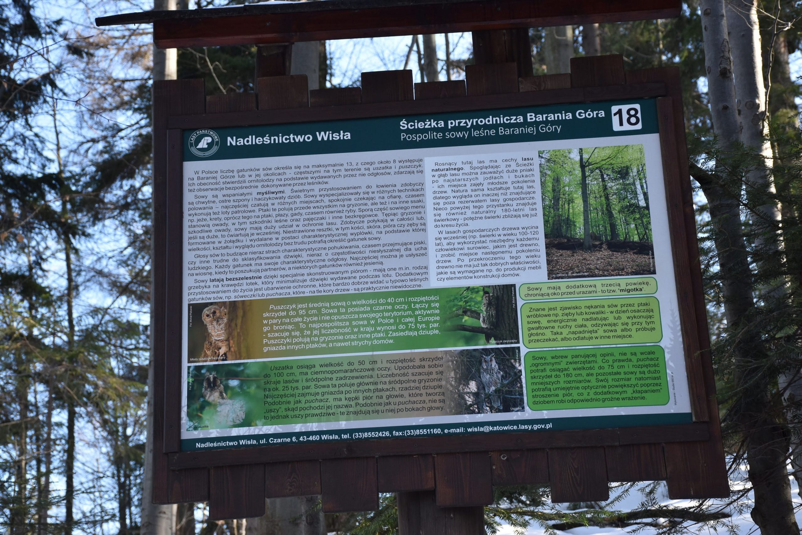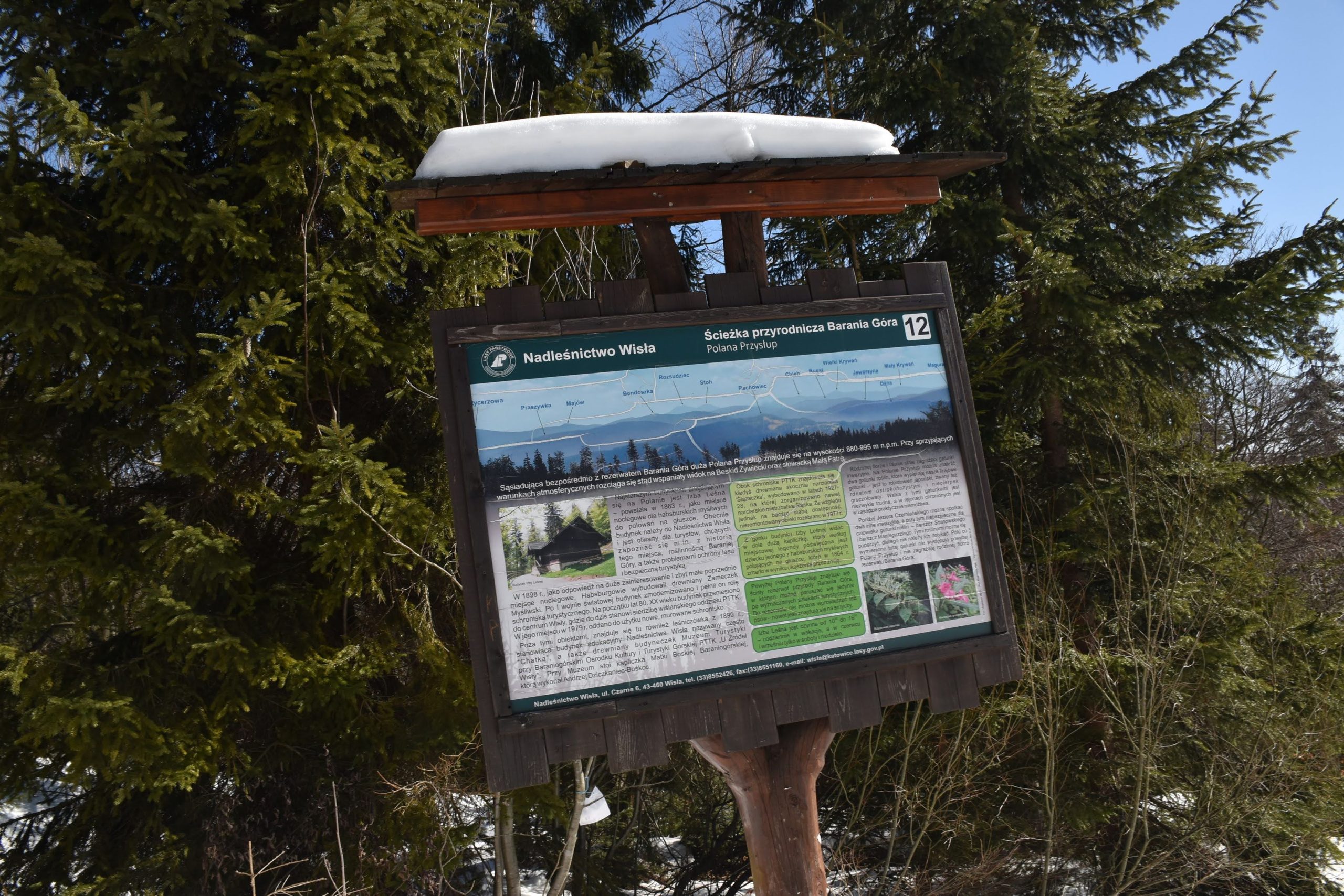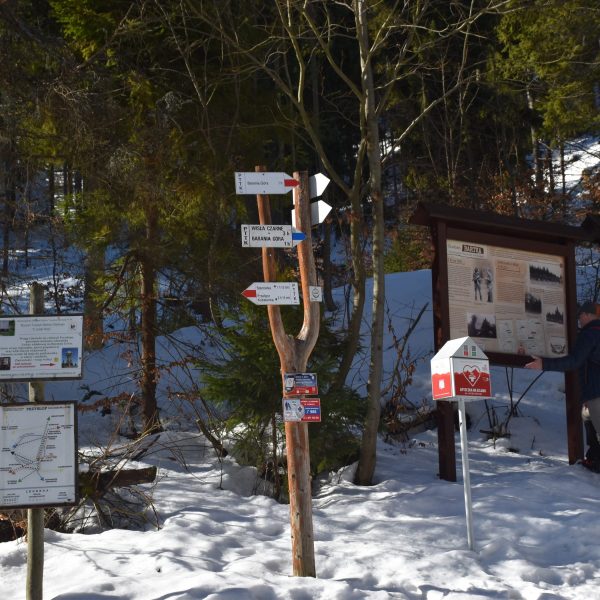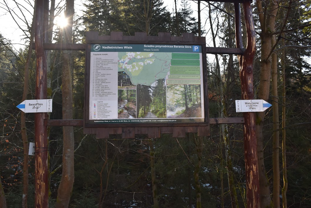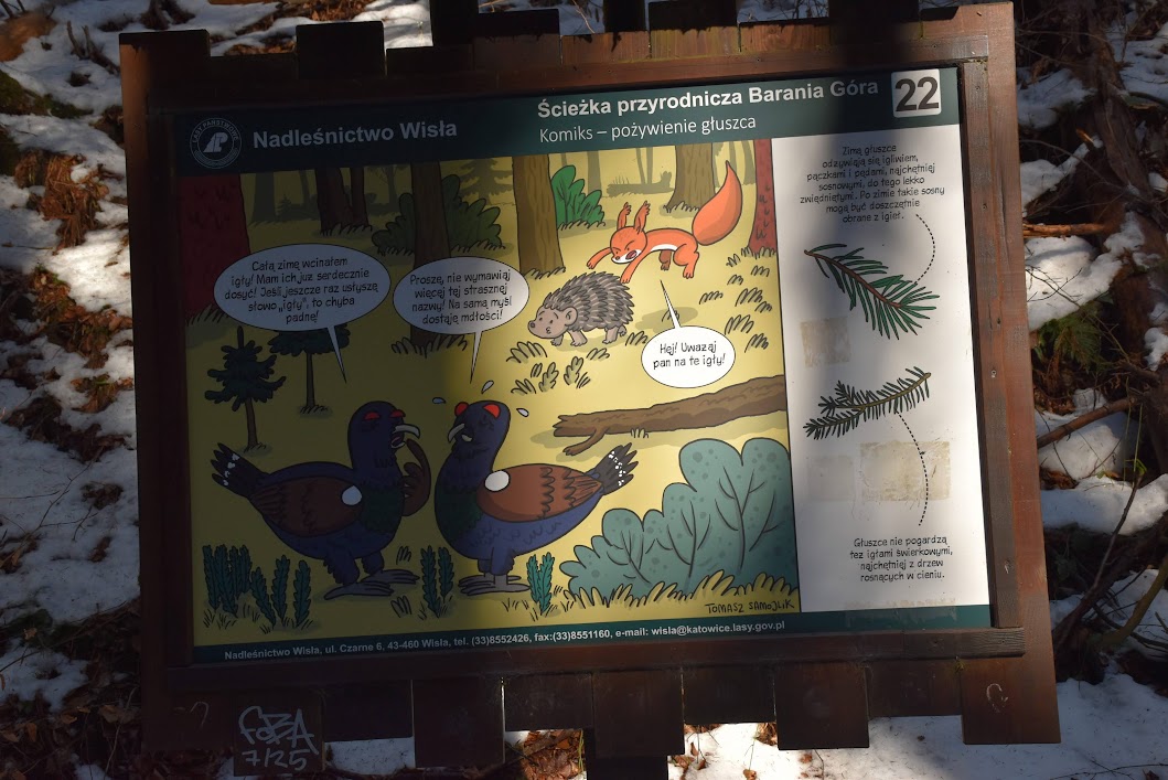 Nasz niebieski szlak pokrywa się ze Ścieżką dydaktyczno- przyrodniczą Barania Góra, prowadzącą przez kilkanaście przystanków edukacyjnych (warto zwrócić uwagę na ciekawe komiksy o głuszcach!)