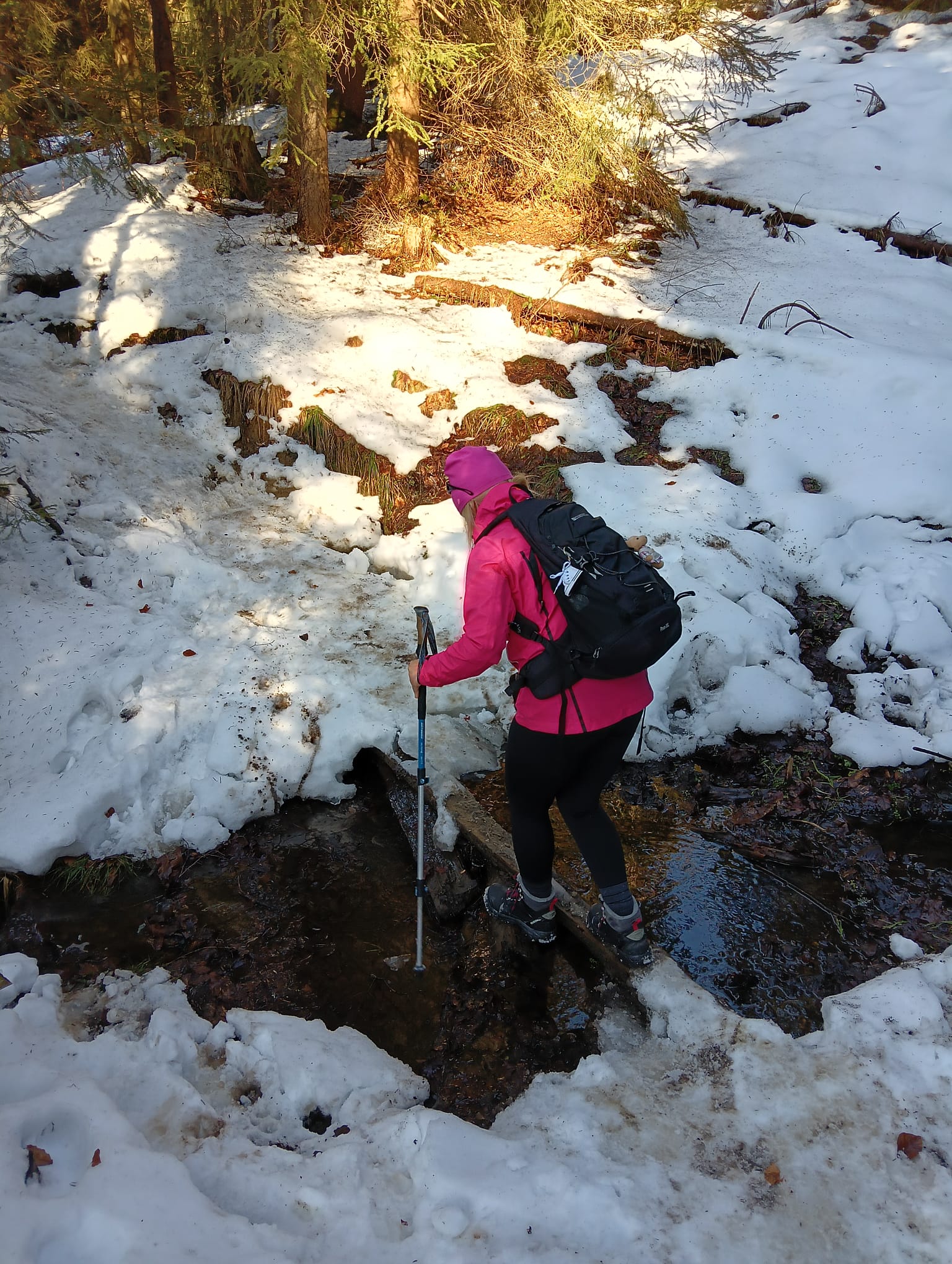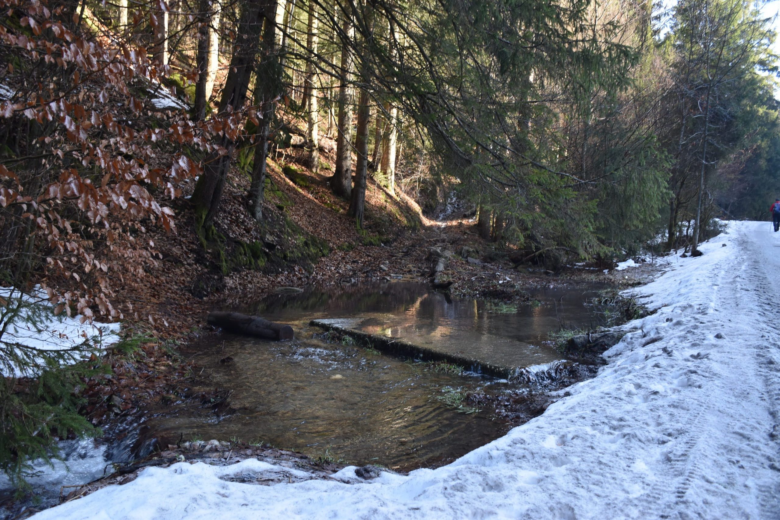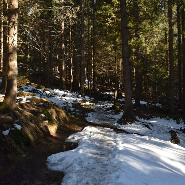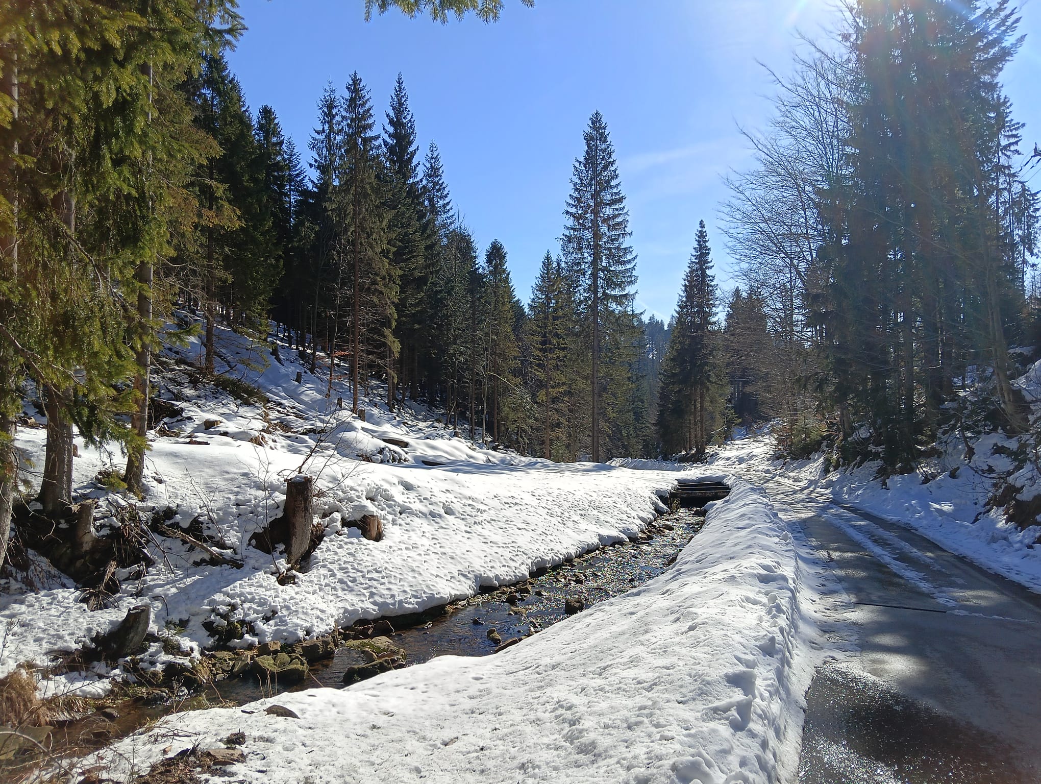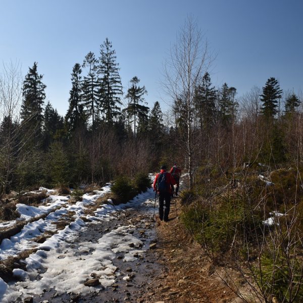 promienie popołudniowego słońca odbijają się urokliwie w wodach Czarnej Wisełki-drugiego źródłowego potoku Wisły. Dzień jest piękny, w powietrzu, a może bardziej w sercu, czuć już wiosnę i aż chce się zaśpiewać: „Idę w góry cieszyć się życiem”.