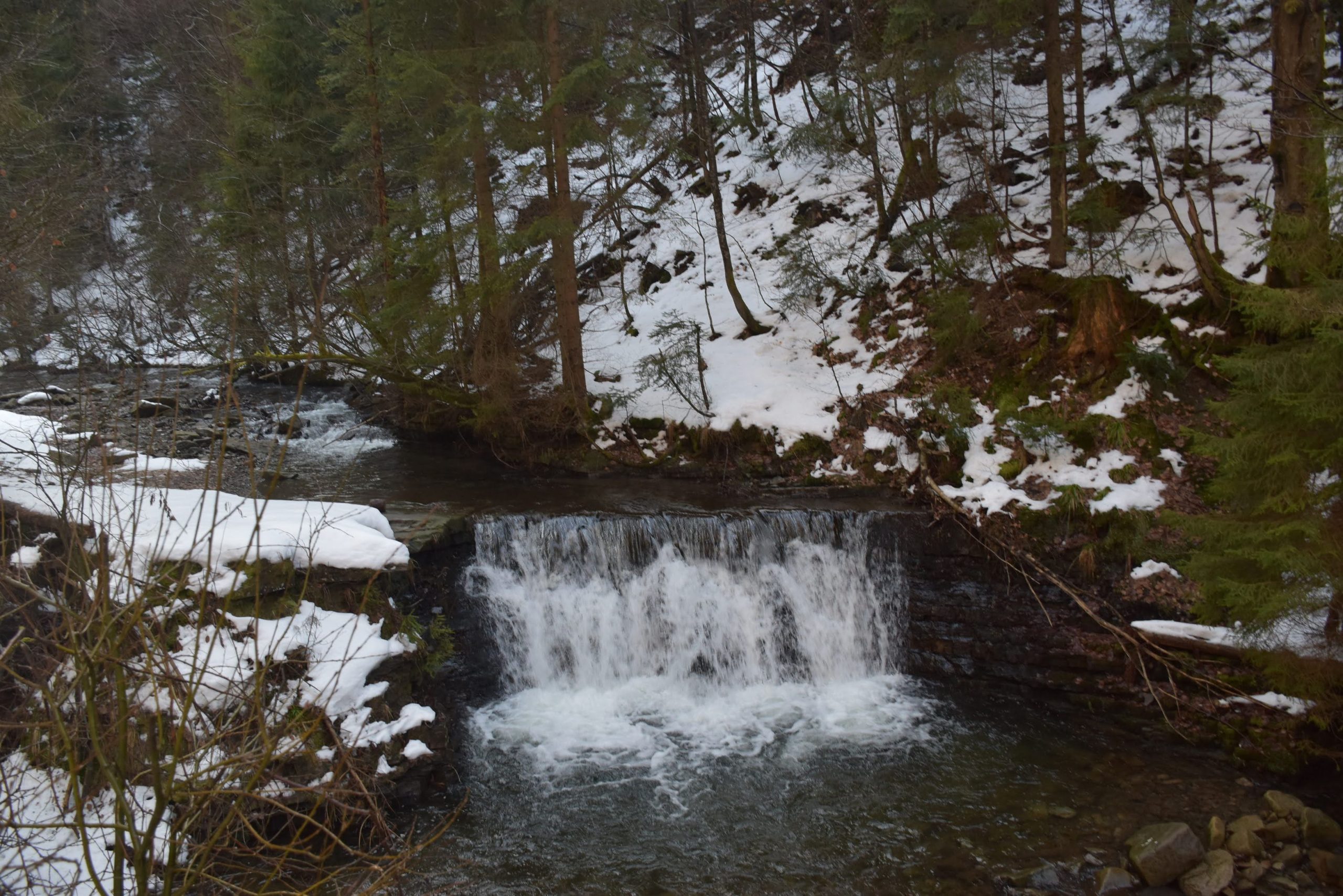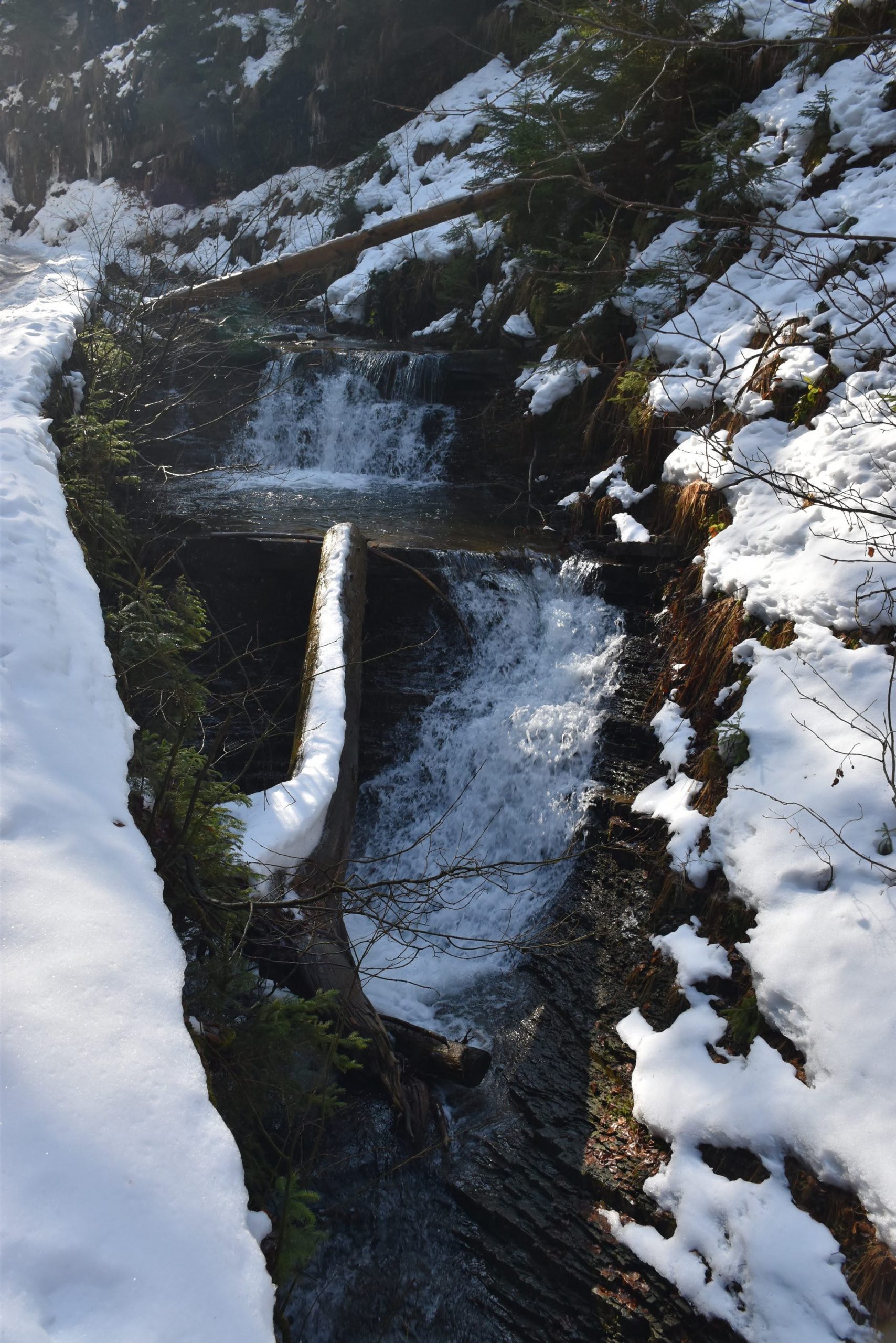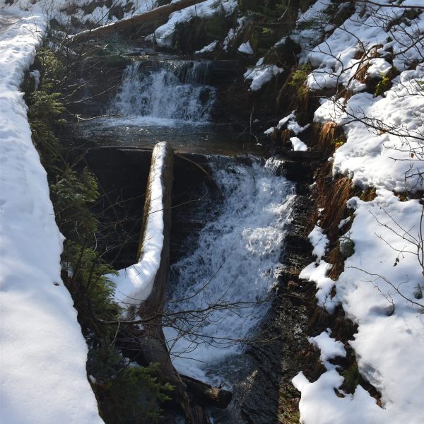 Na potoku pojawiają się pierwsze kaskady, wkrótce będzie jeszcze efektowniej. Spienione wody wydają się białe- stąd nazwa Biała Wisełka.
