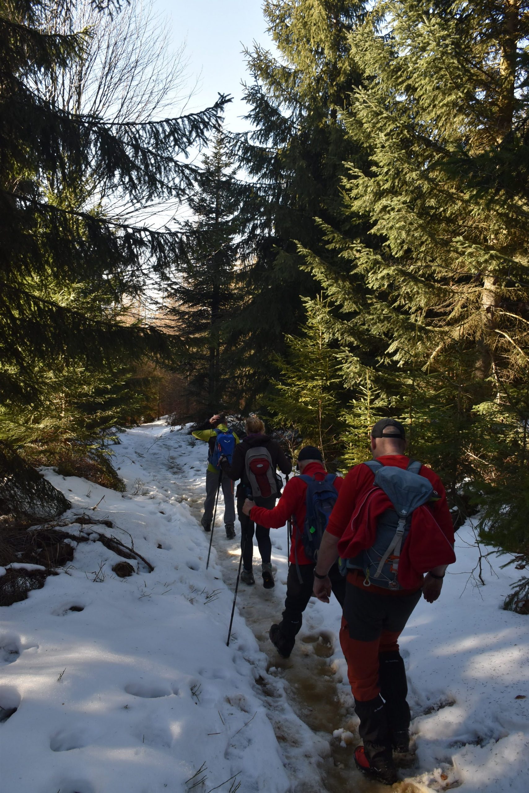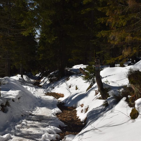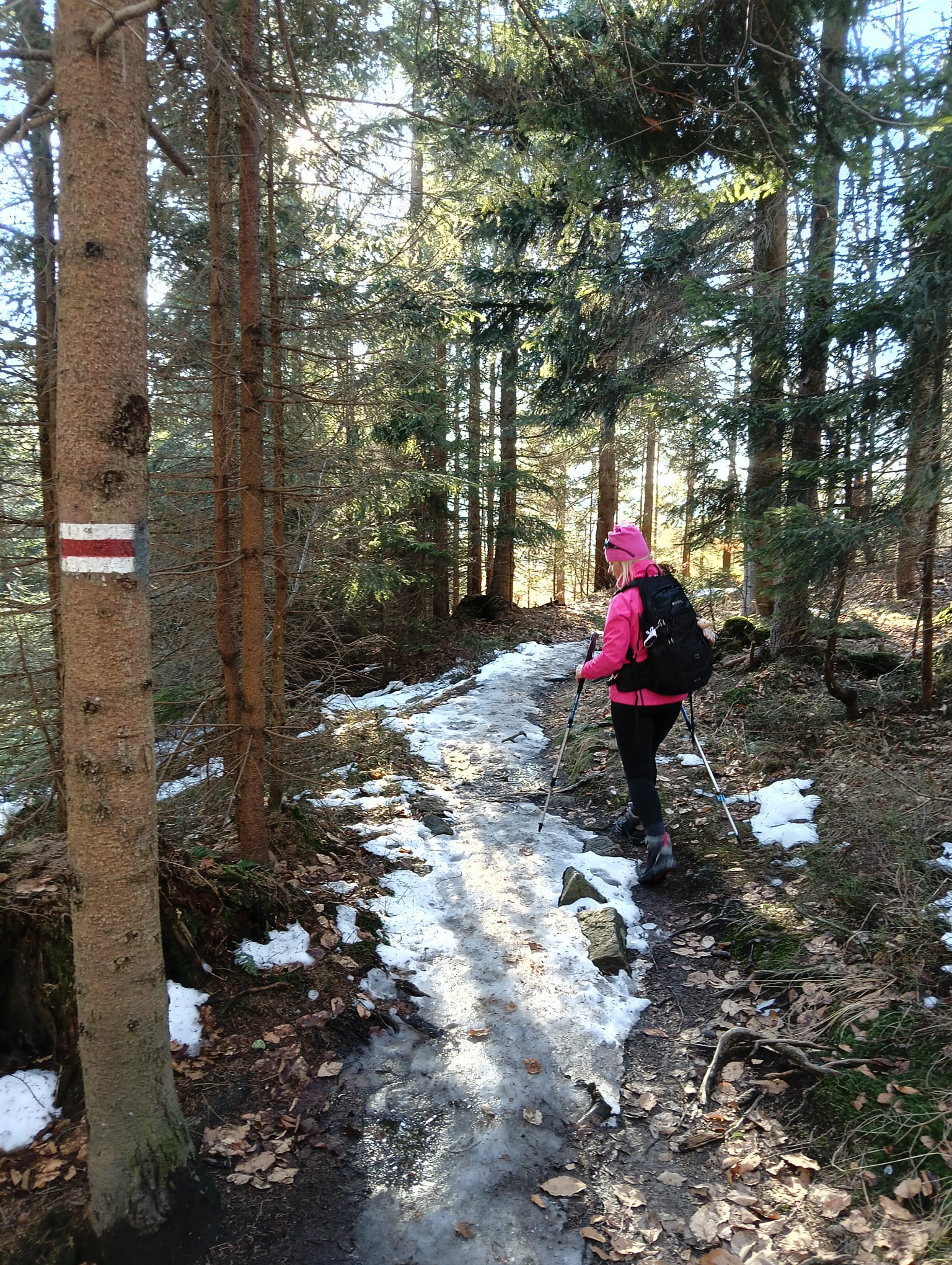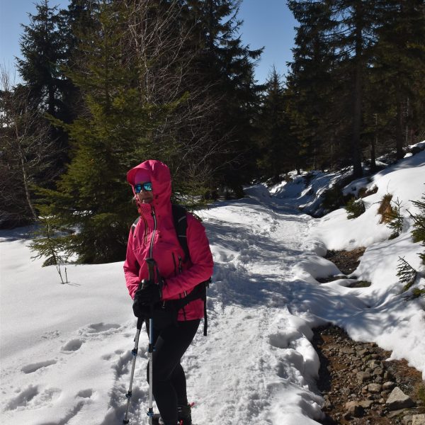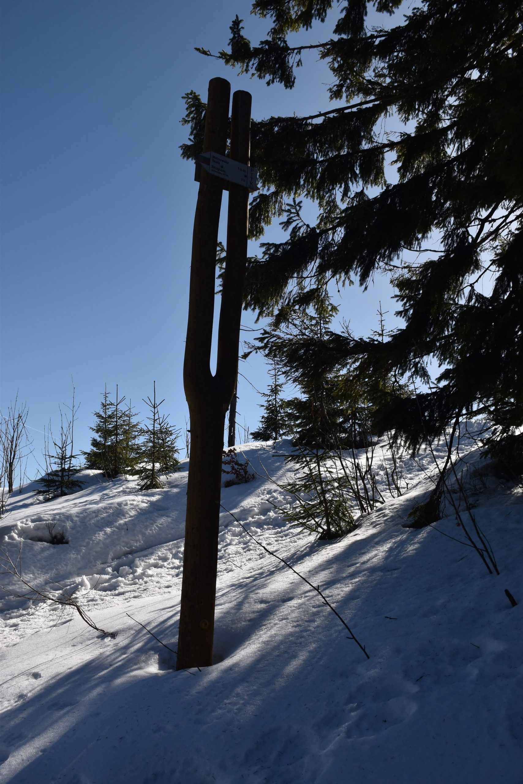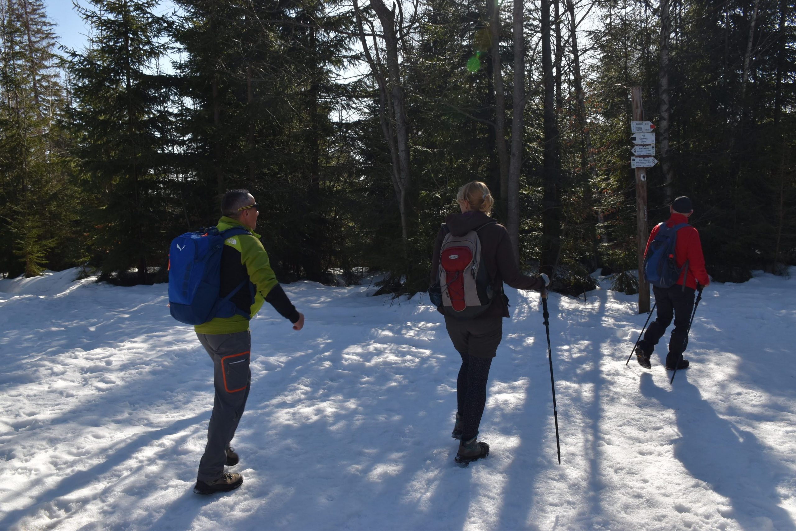 Idziemy ponad godzinę i do celu zostały niecałe dwie, ale na mapach i tabliczkach z oznaczeniami podawane są letnie czasy przejścia. W zimowych warunkach może być dłużej.