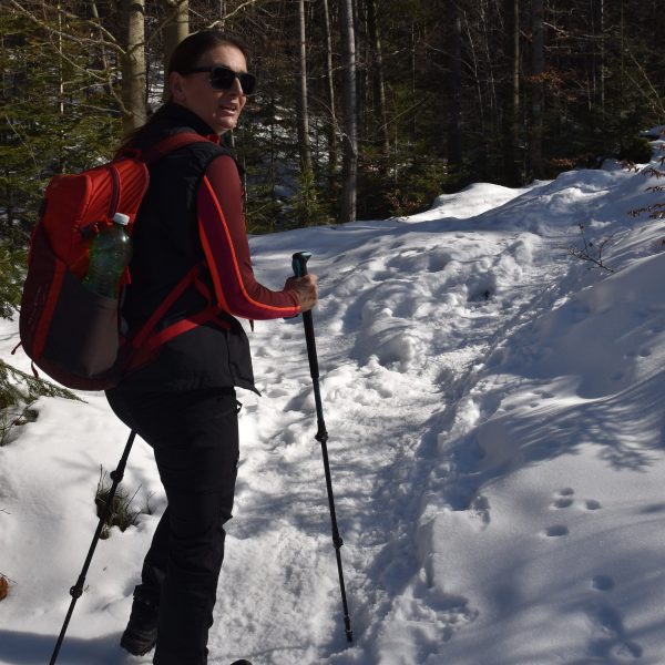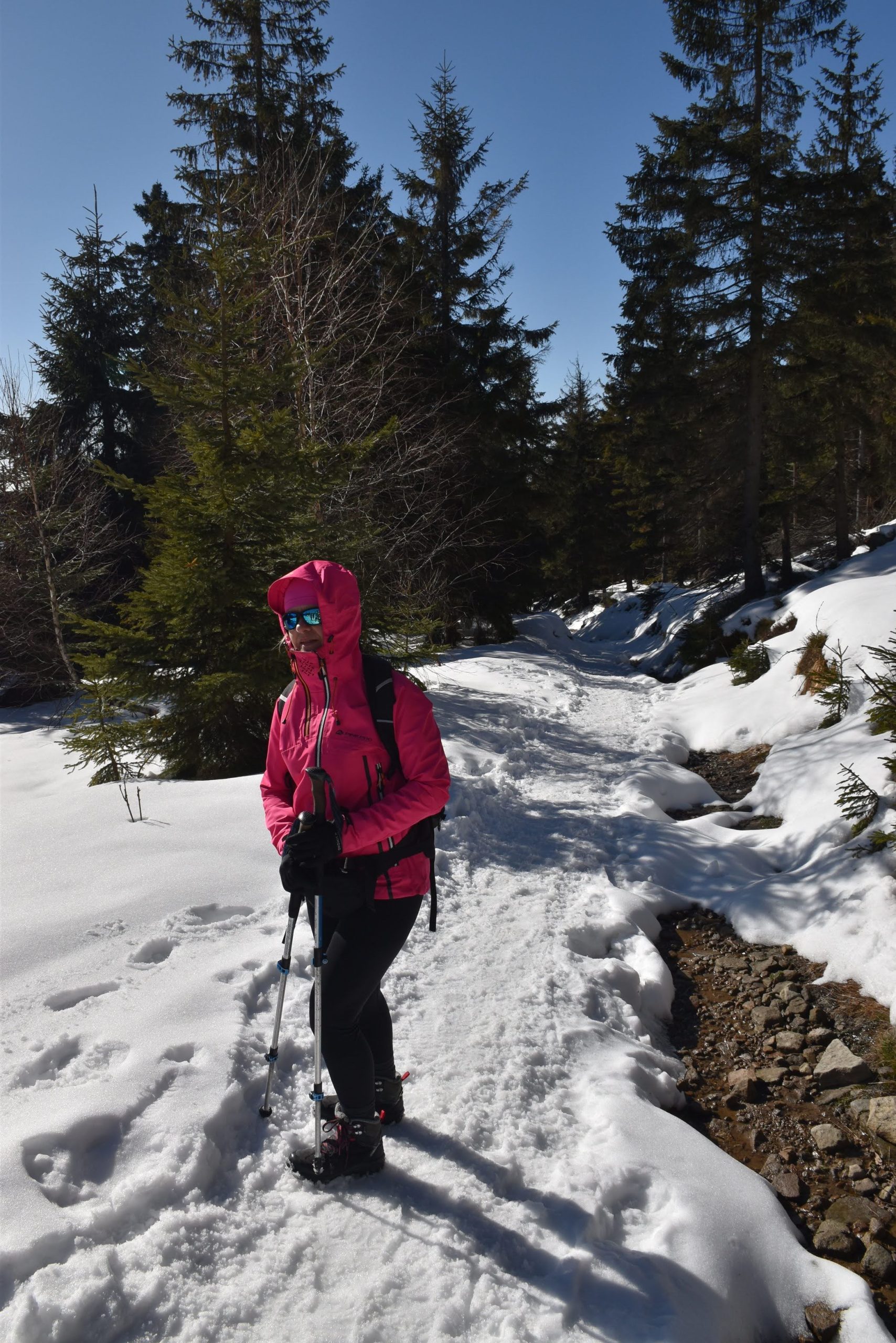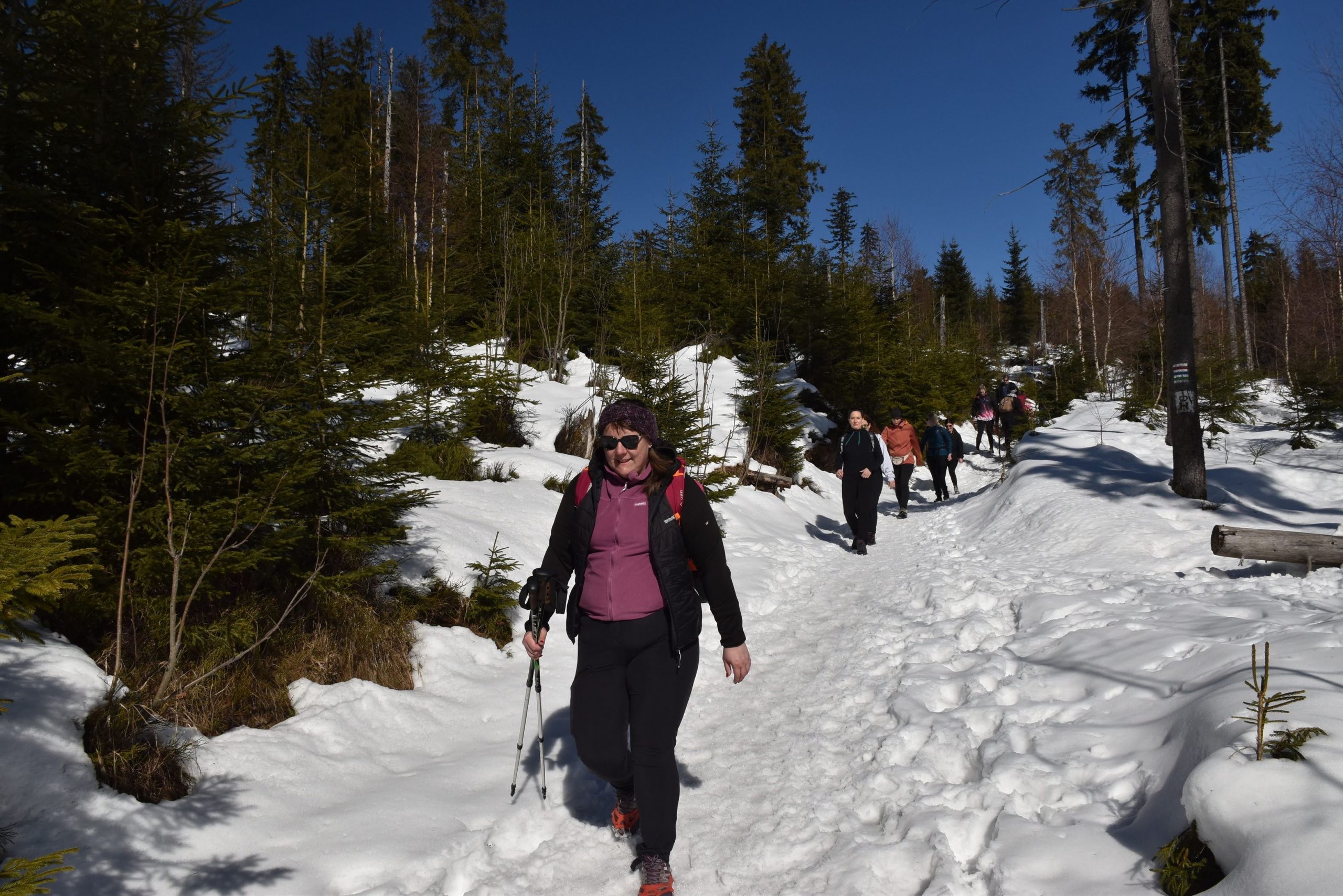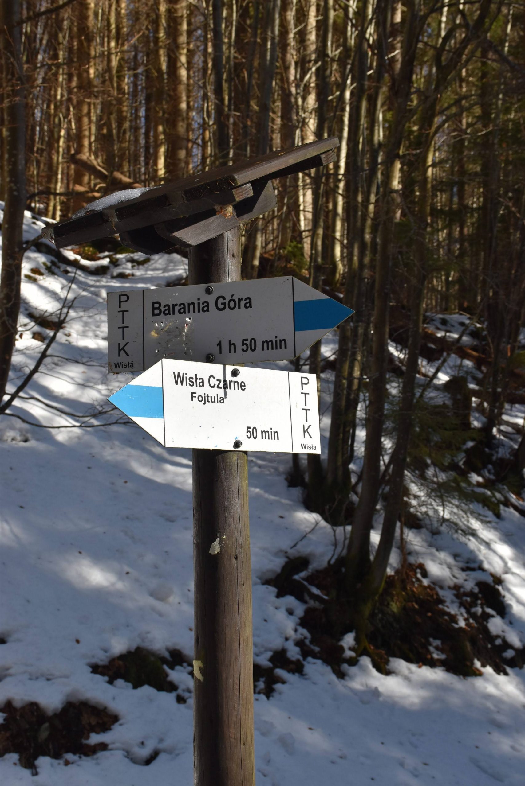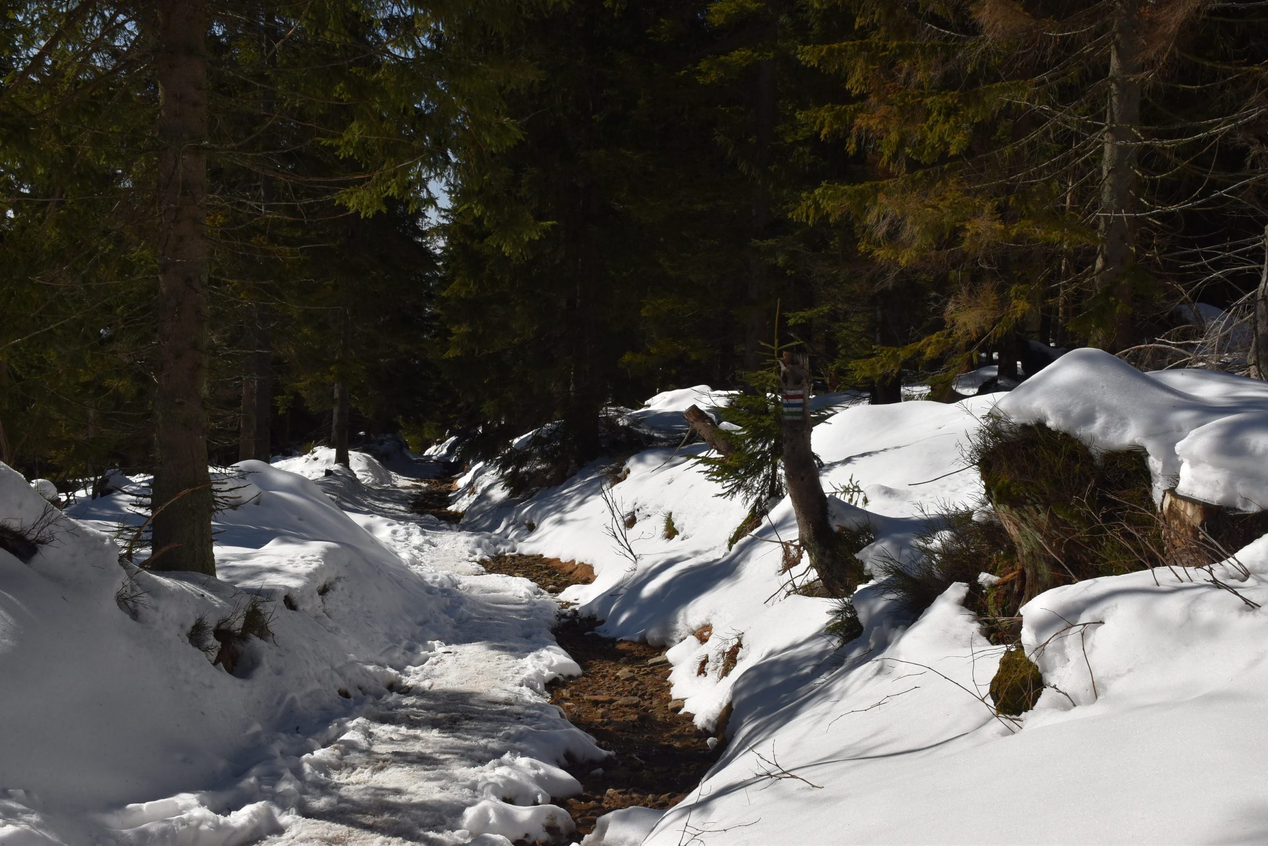 Idziemy ponad godzinę i do celu zostały niecałe dwie, ale na mapach i tabliczkach z oznaczeniami podawane są letnie czasy przejścia. W zimowych warunkach może być dłużej.
