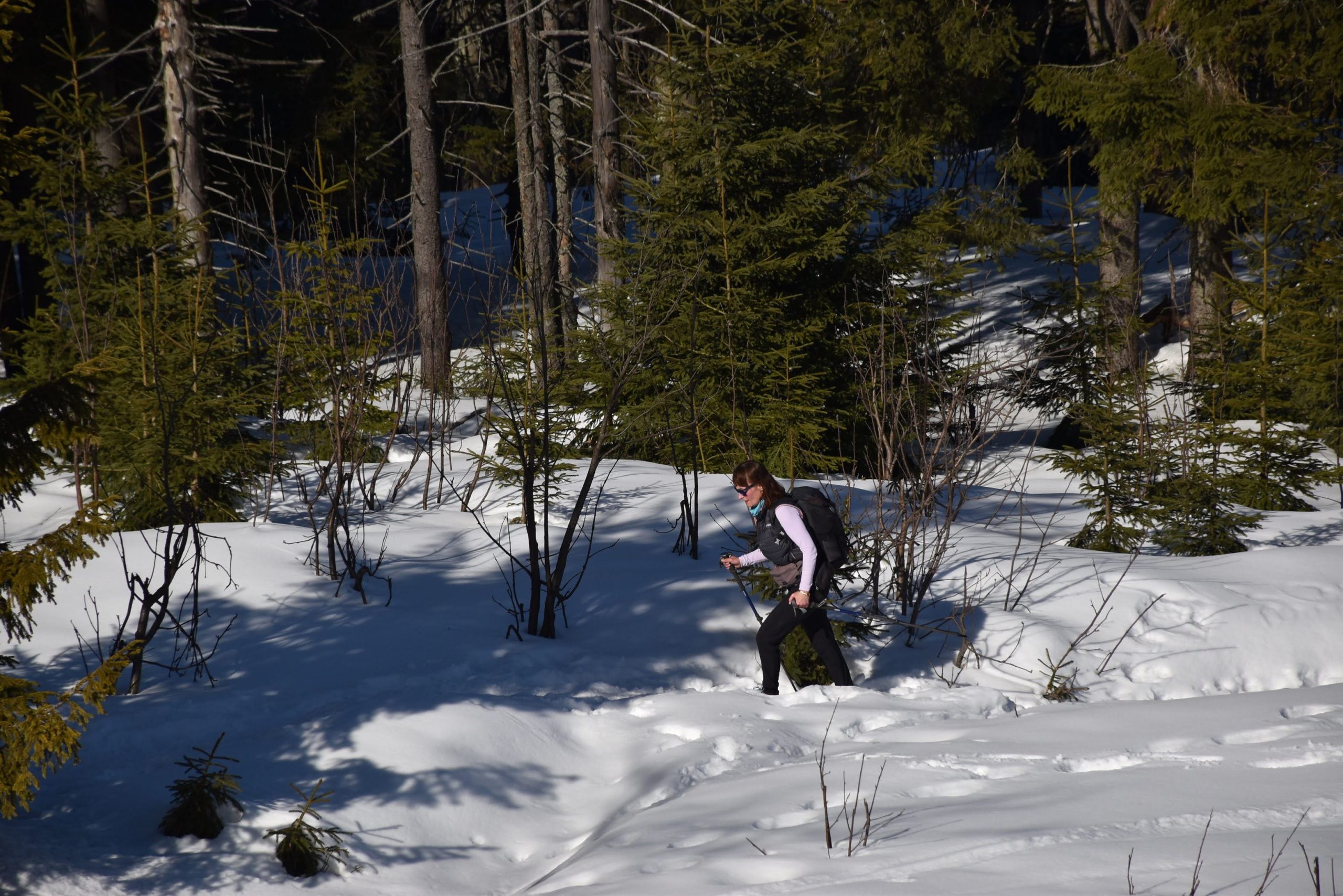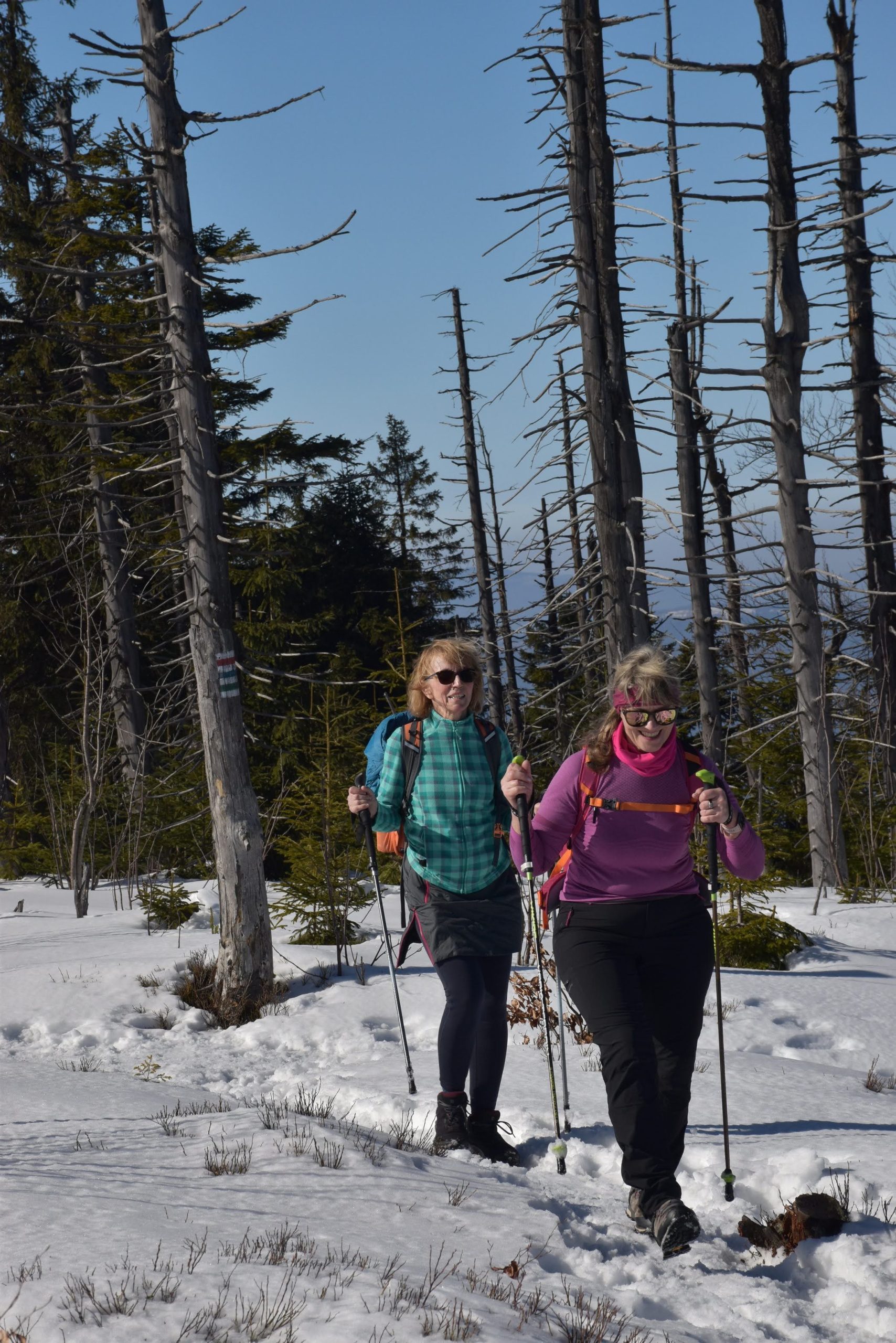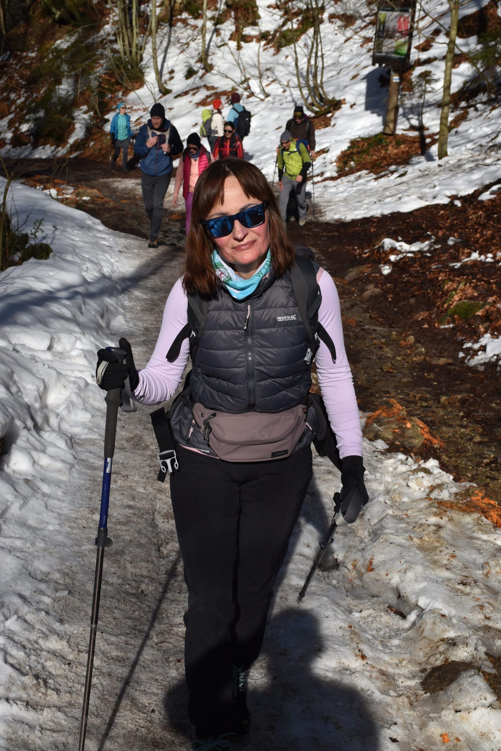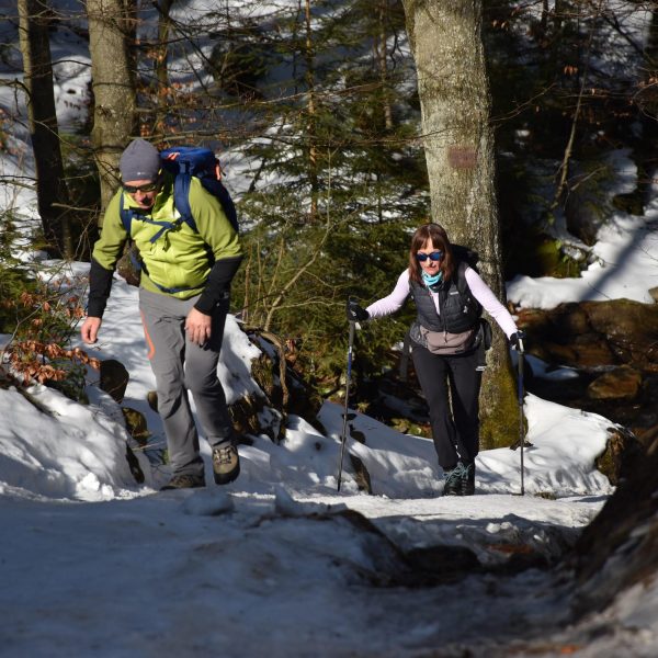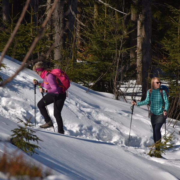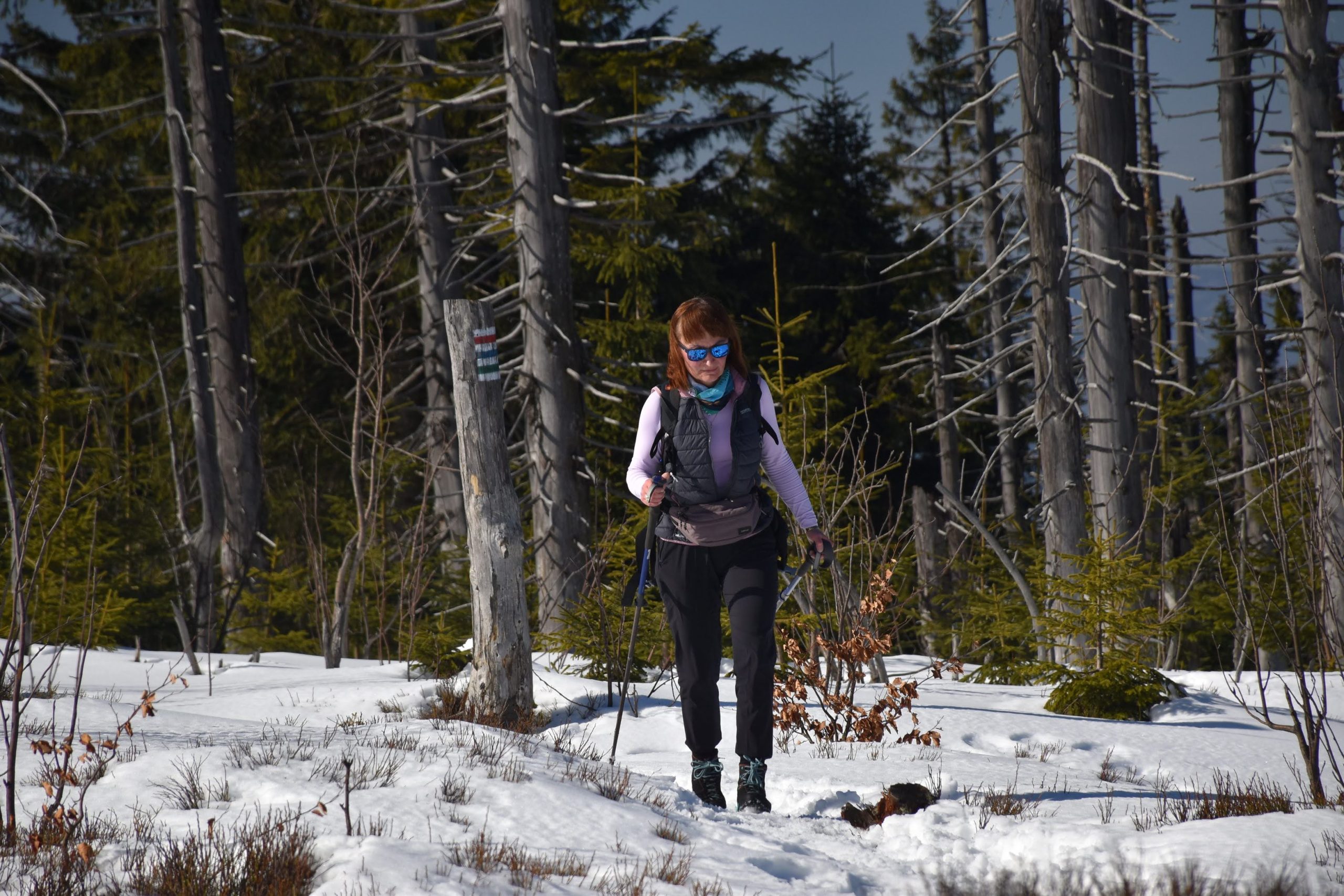 Idziemy ponad godzinę i do celu zostały niecałe dwie, ale na mapach i tabliczkach z oznaczeniami podawane są letnie czasy przejścia. W zimowych warunkach może być dłużej.