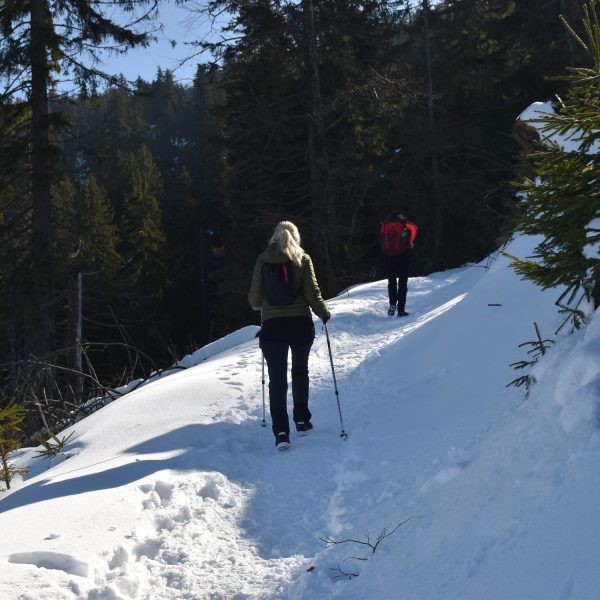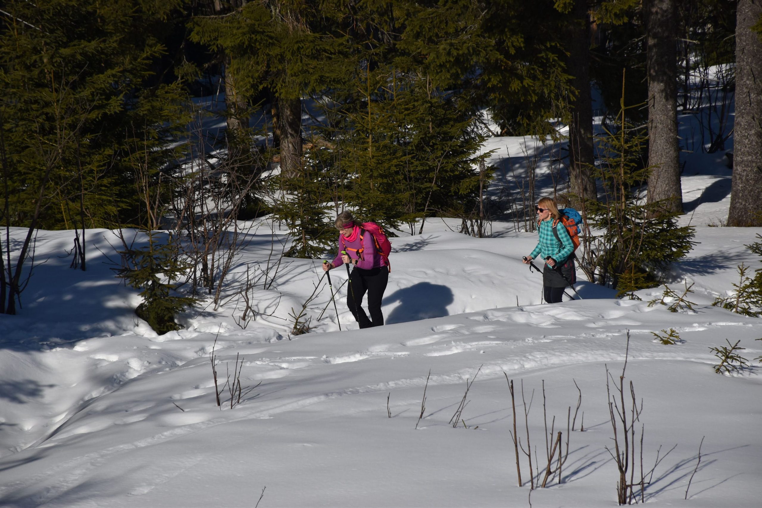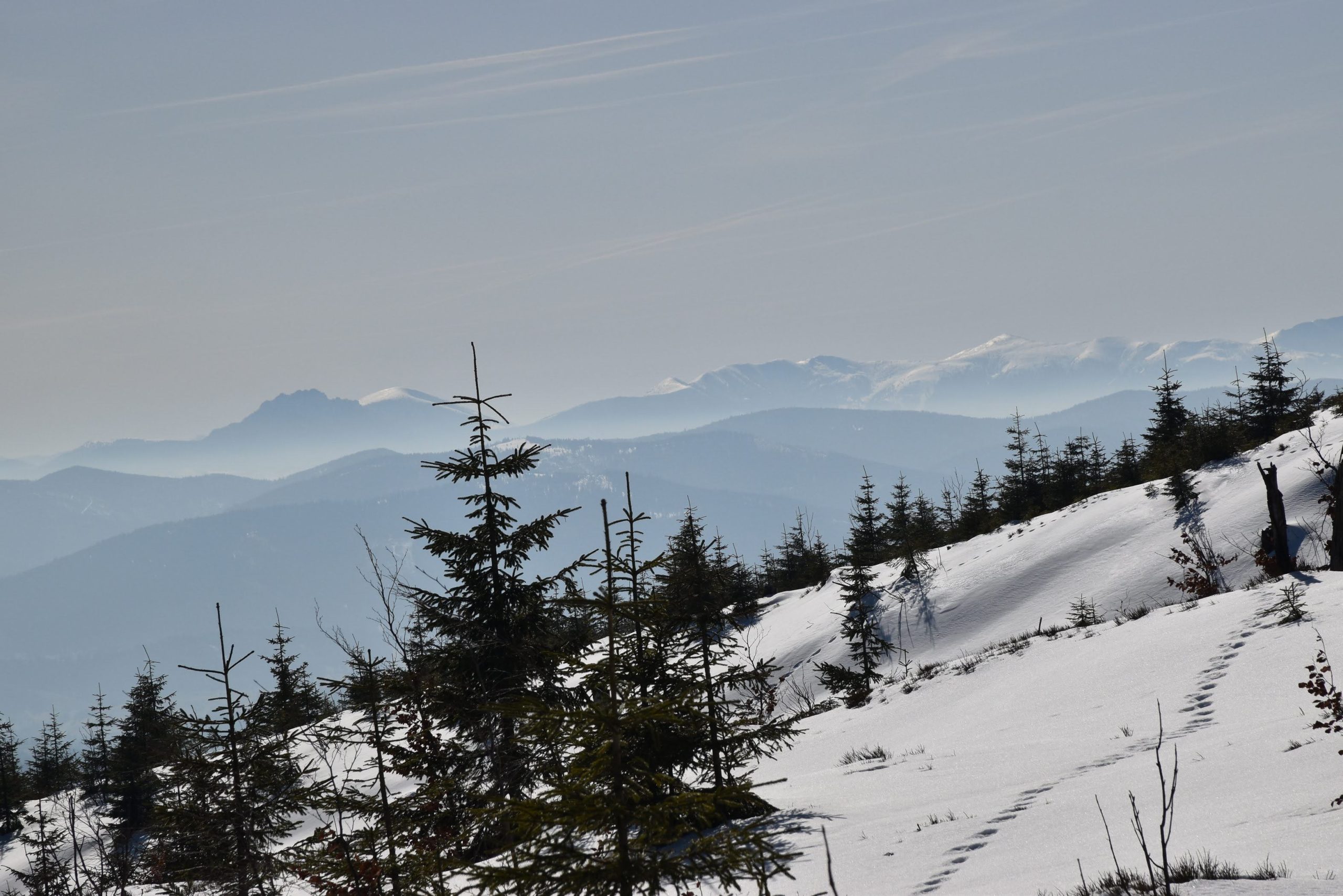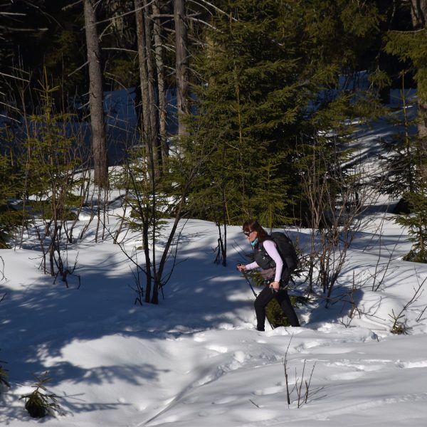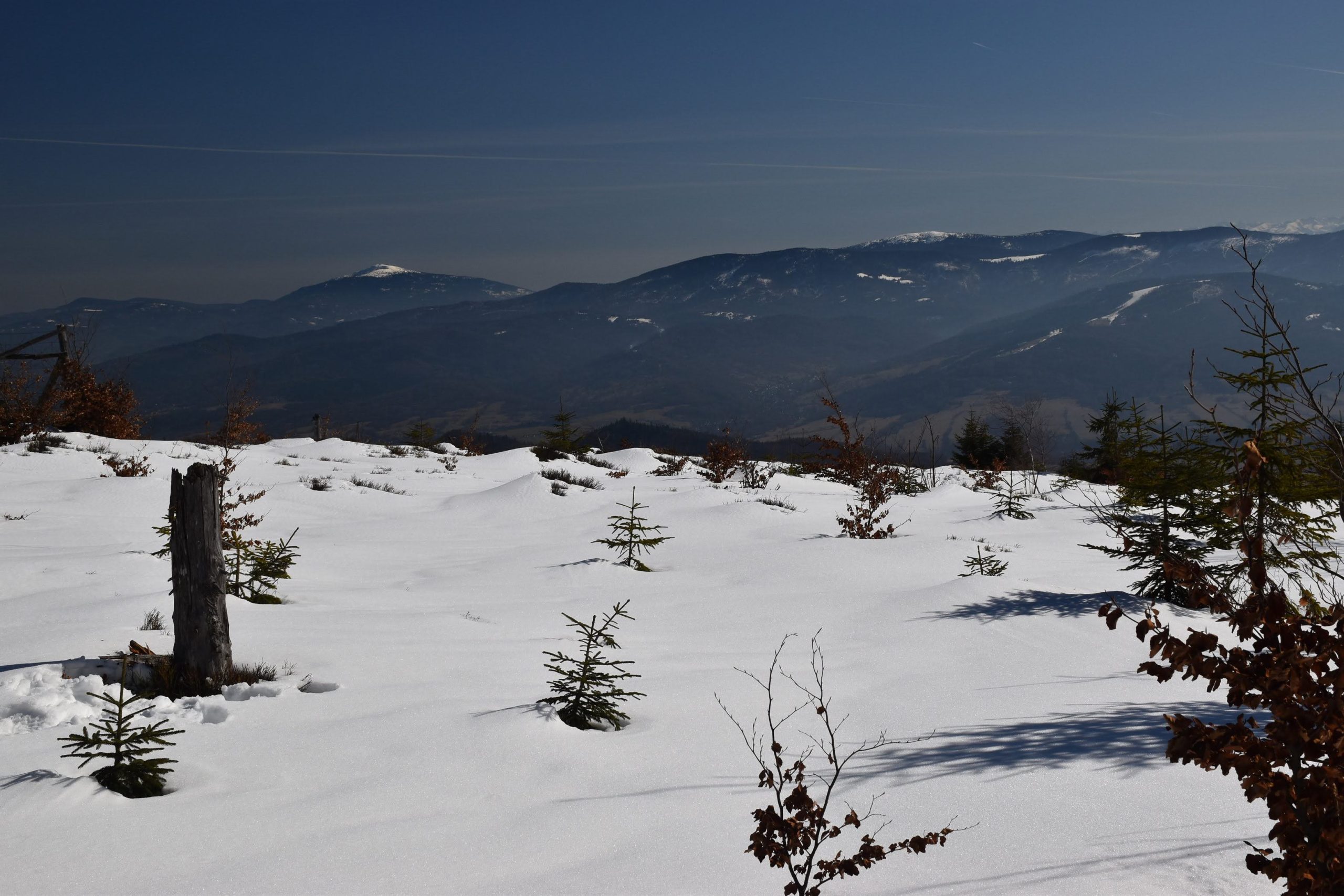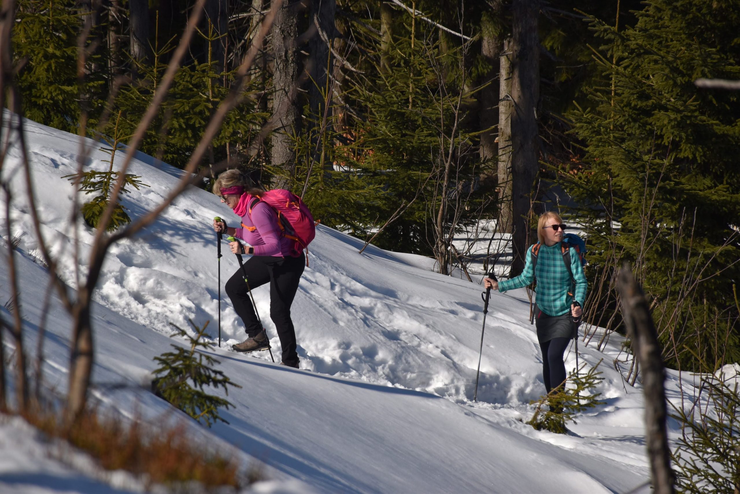 Idziemy ponad godzinę i do celu zostały niecałe dwie, ale na mapach i tabliczkach z oznaczeniami podawane są letnie czasy przejścia. W zimowych warunkach może być dłużej.