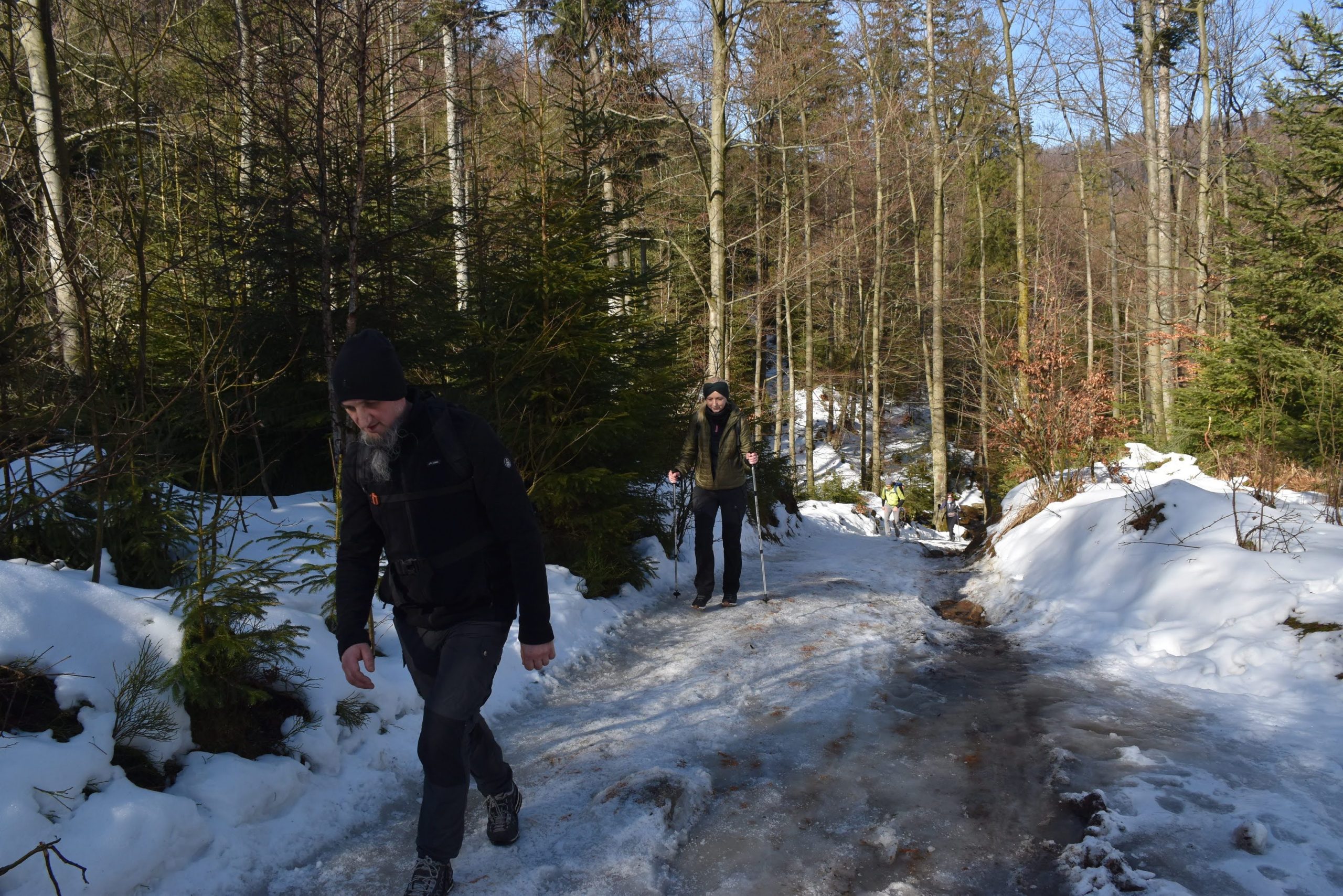 Przewyższenie jest niewielkie, ale trzeba uważać na oblodzenia. O tej porze roku lepiej nie zapominać o raczkach.