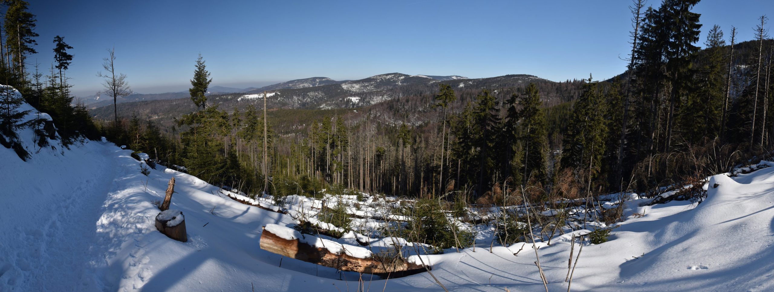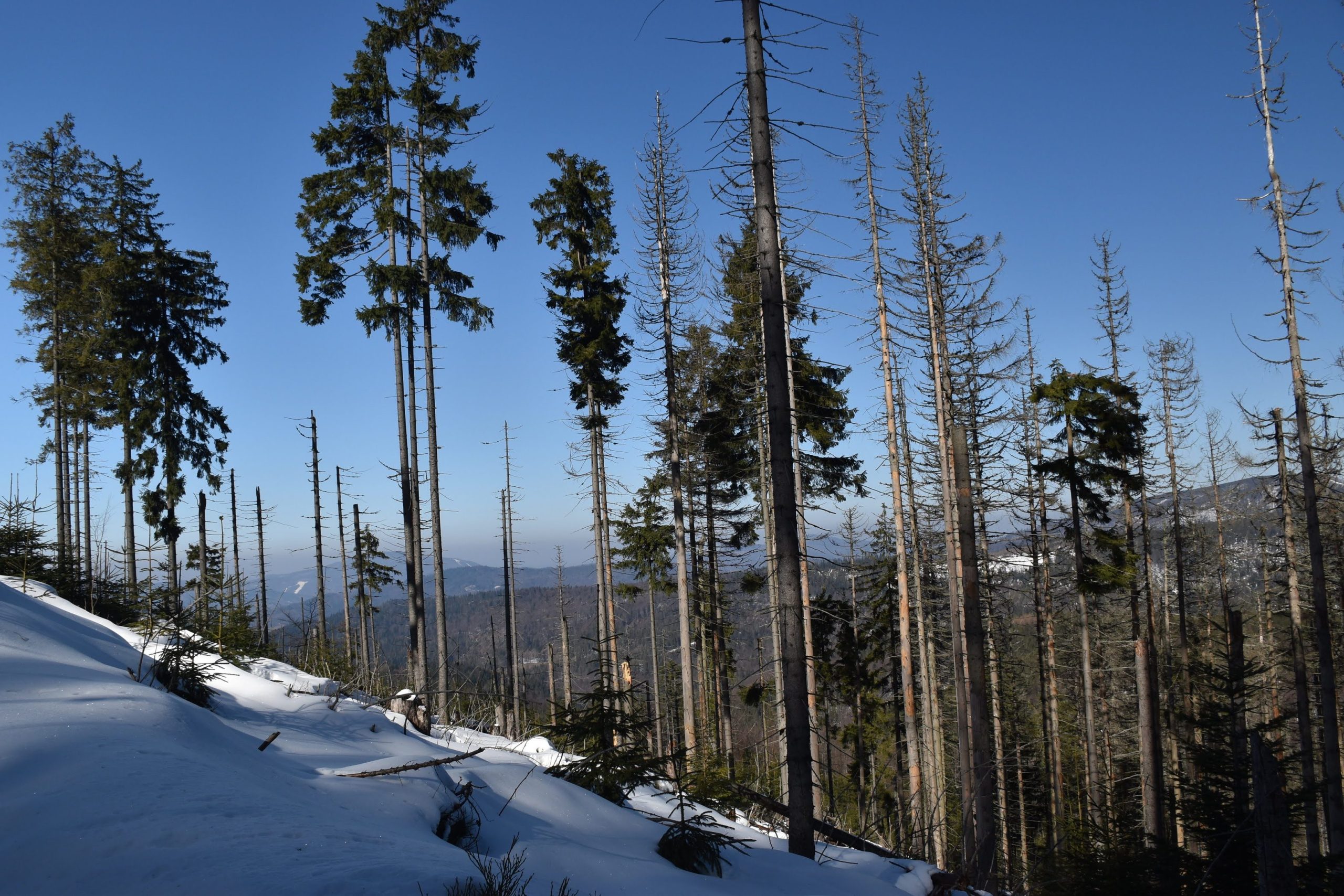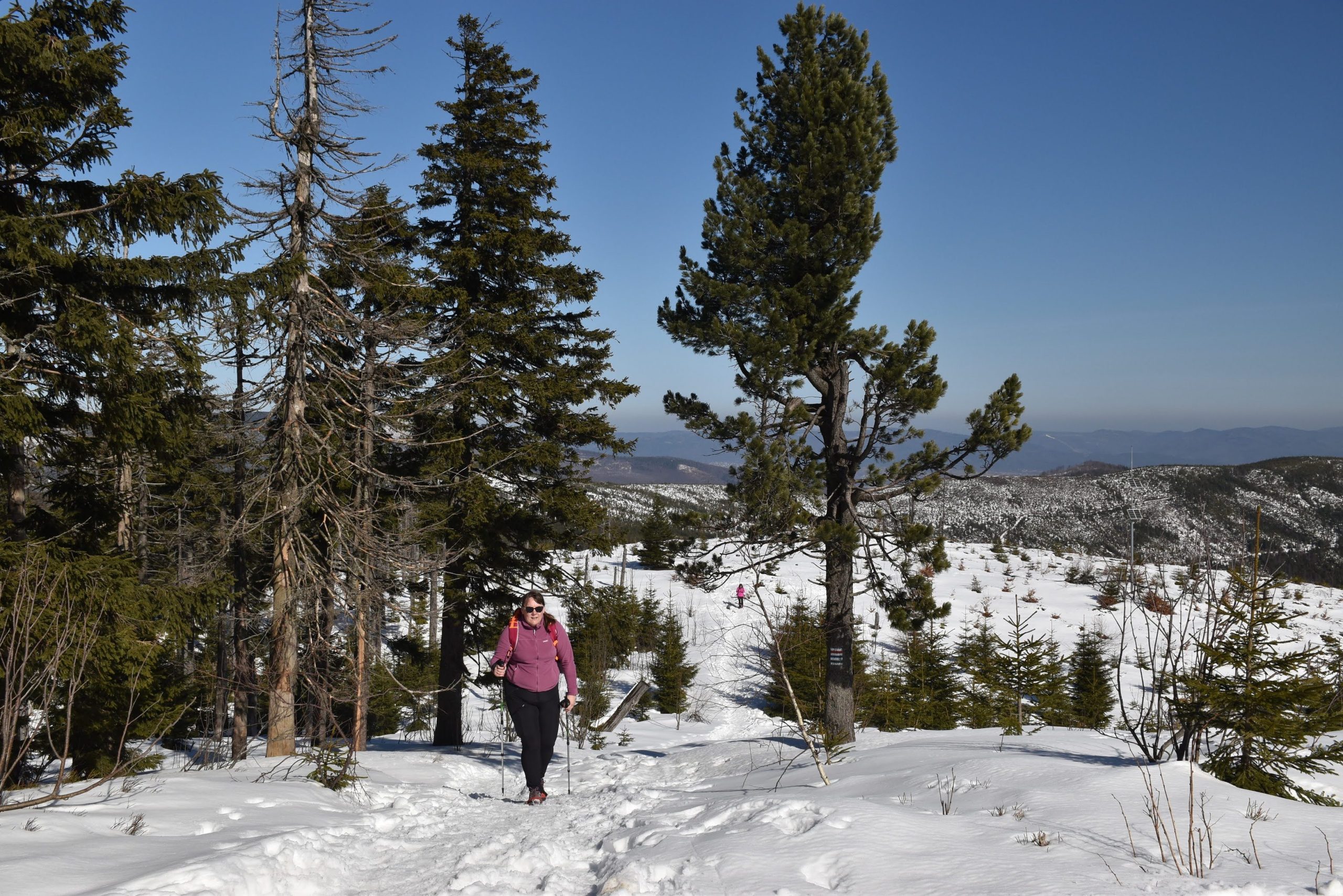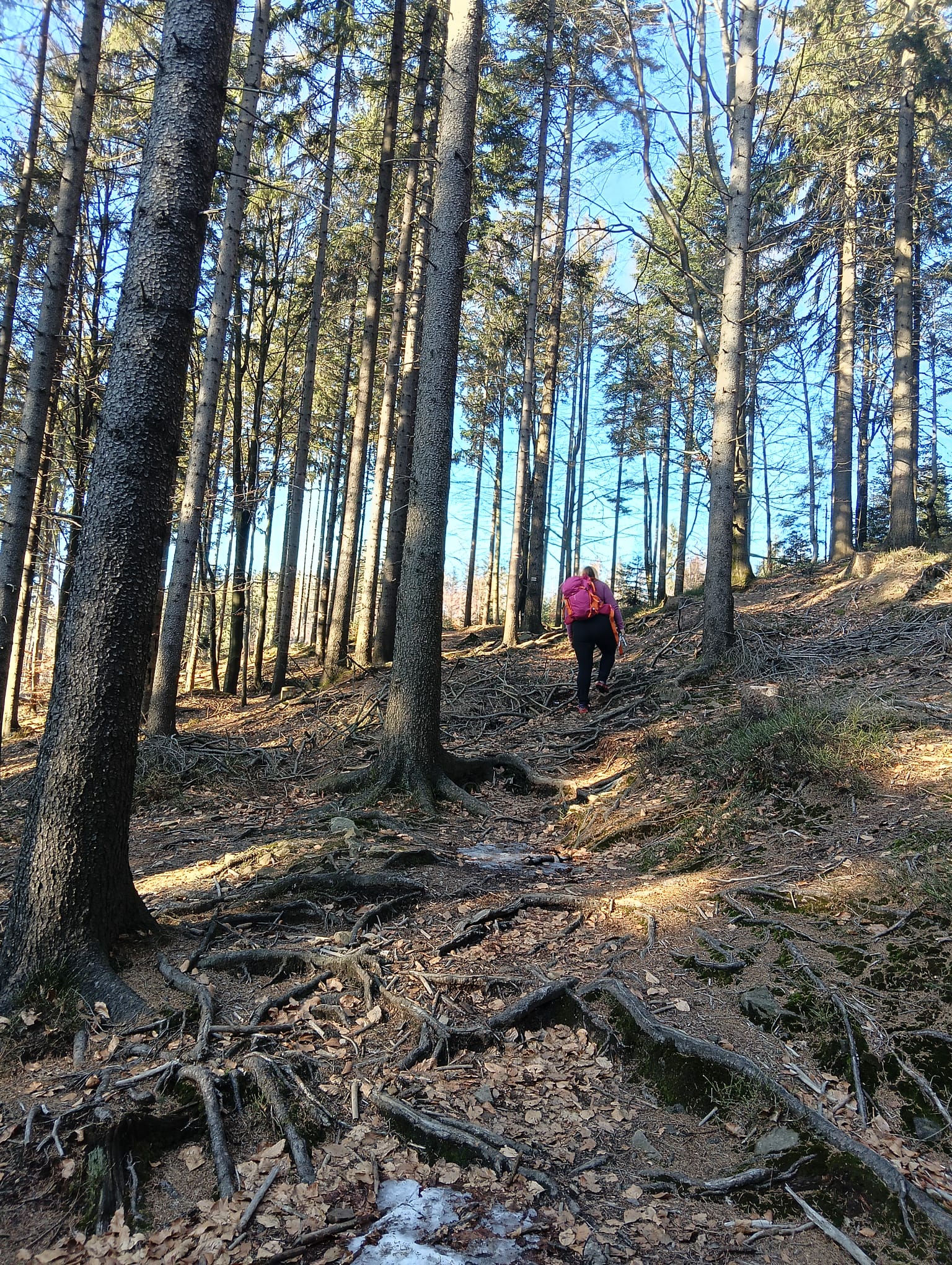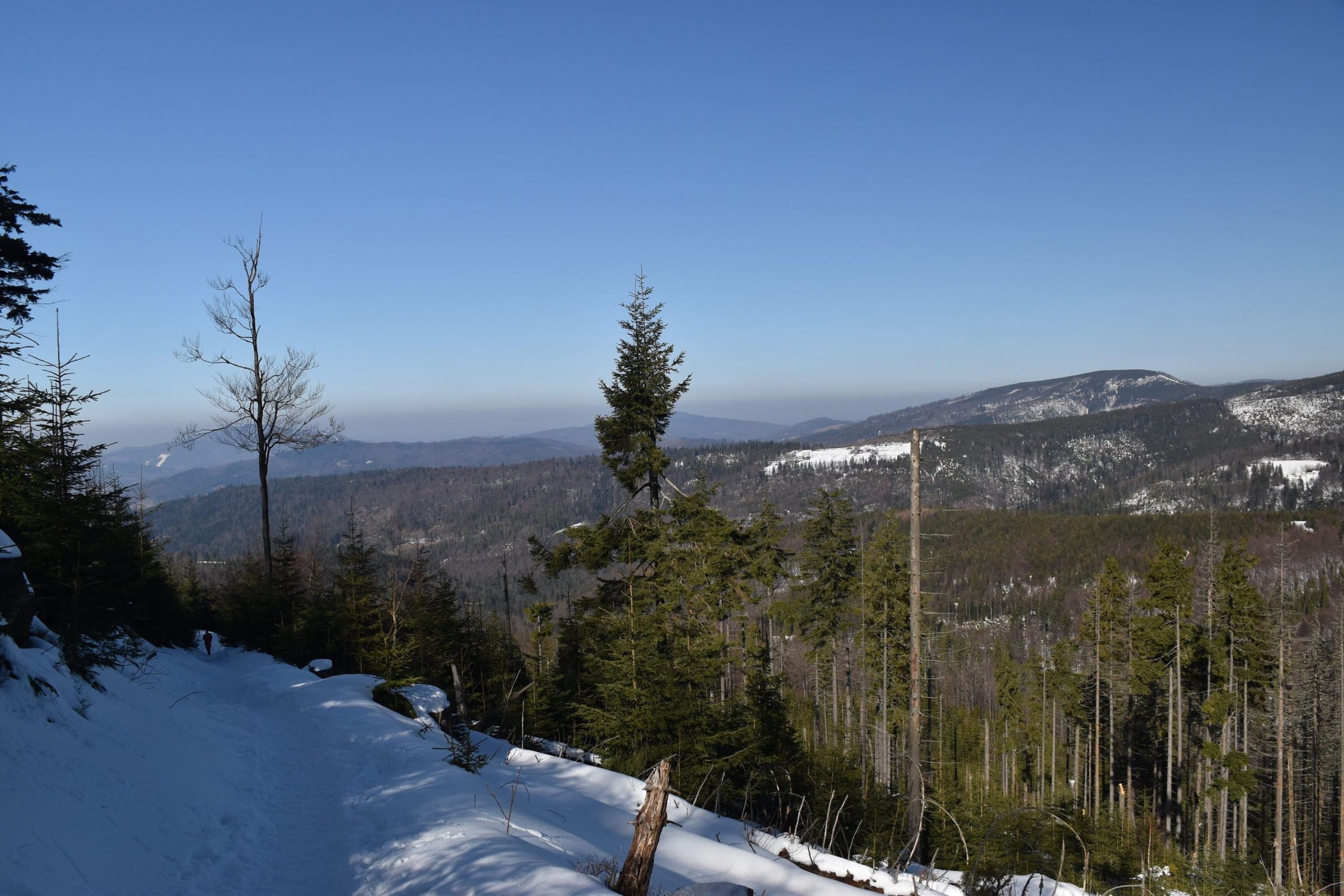 Coraz bardziej przerzedzony las pozwala na podziwianie widoków,