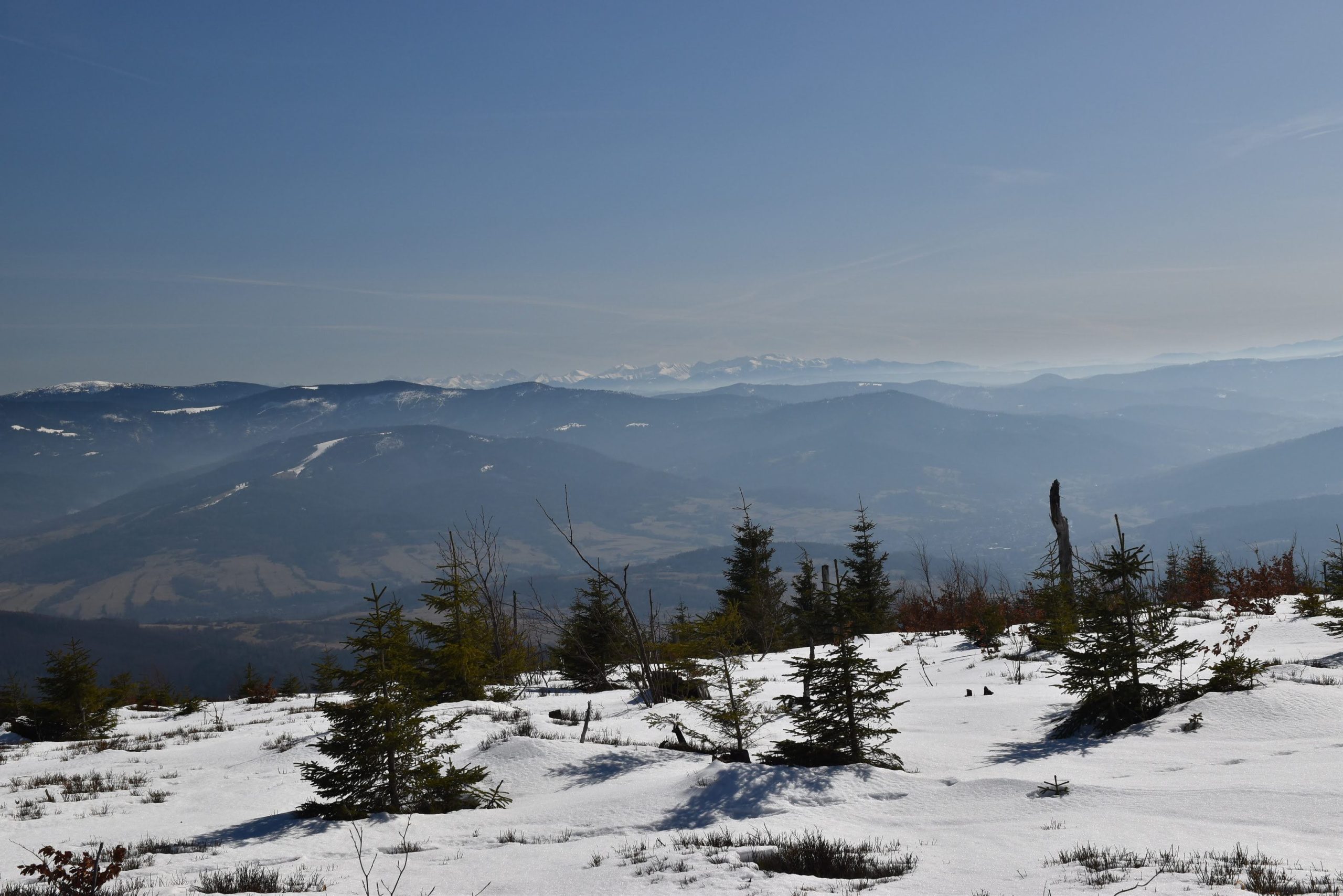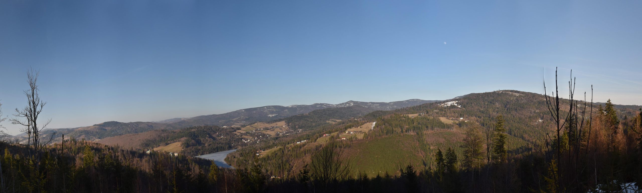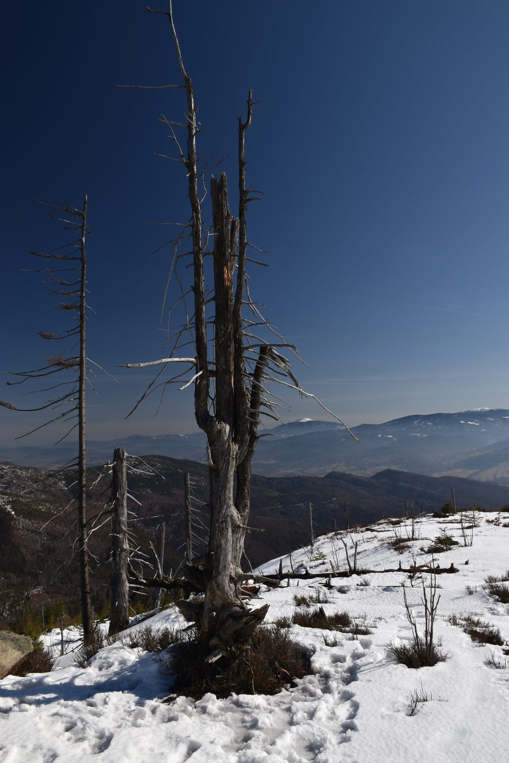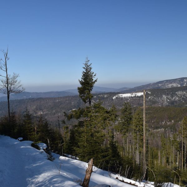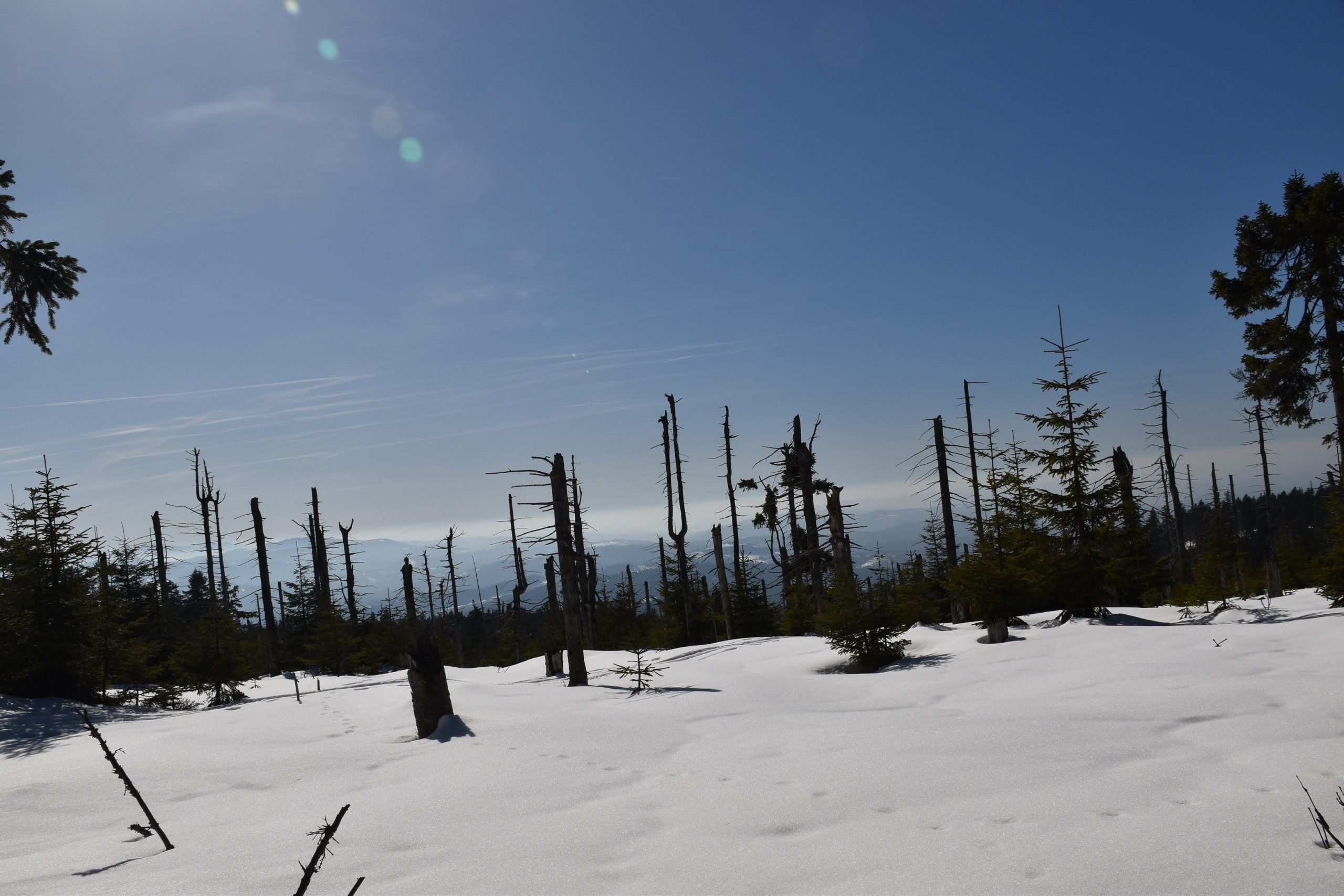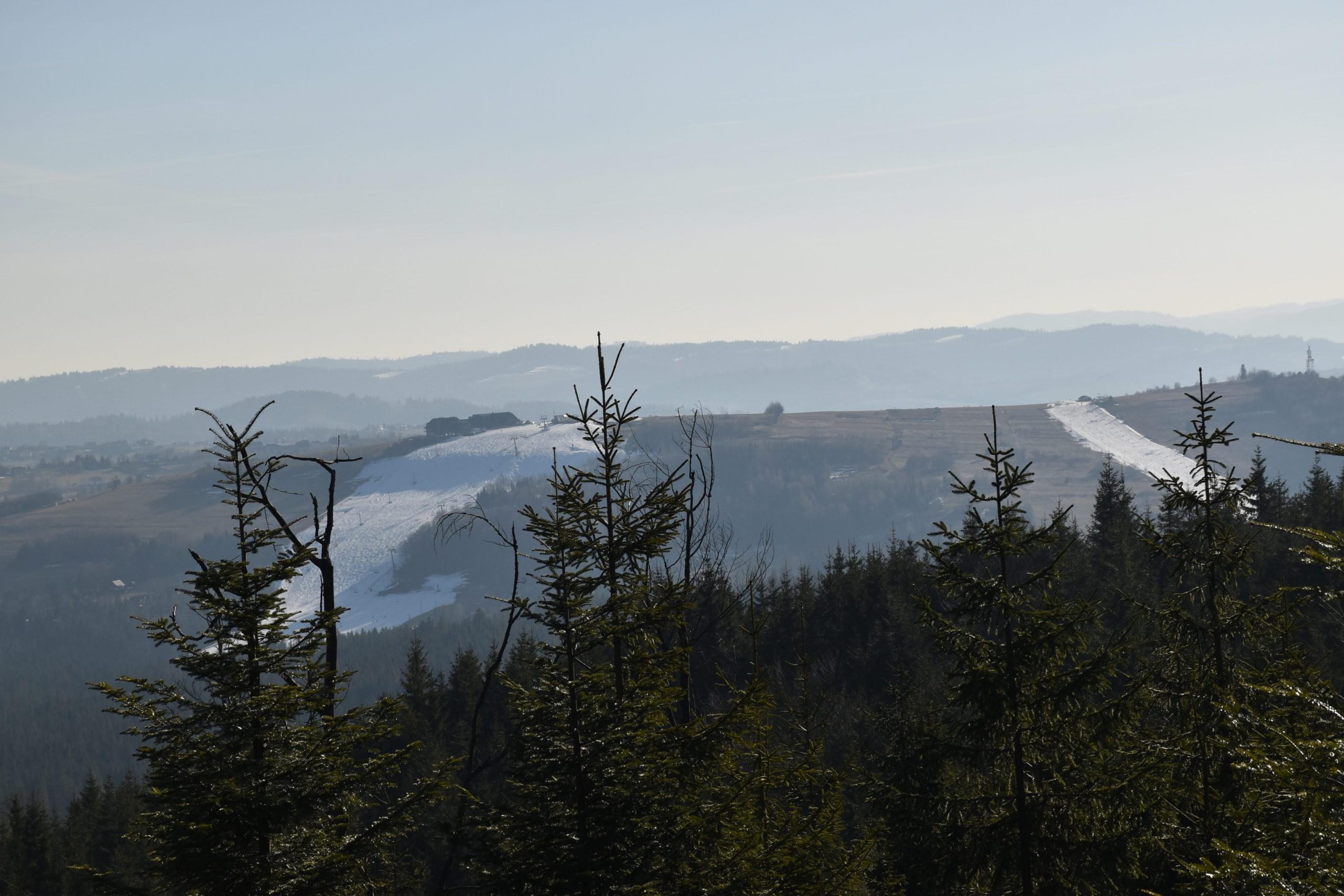 Coraz bardziej przerzedzony las pozwala na podziwianie widoków,