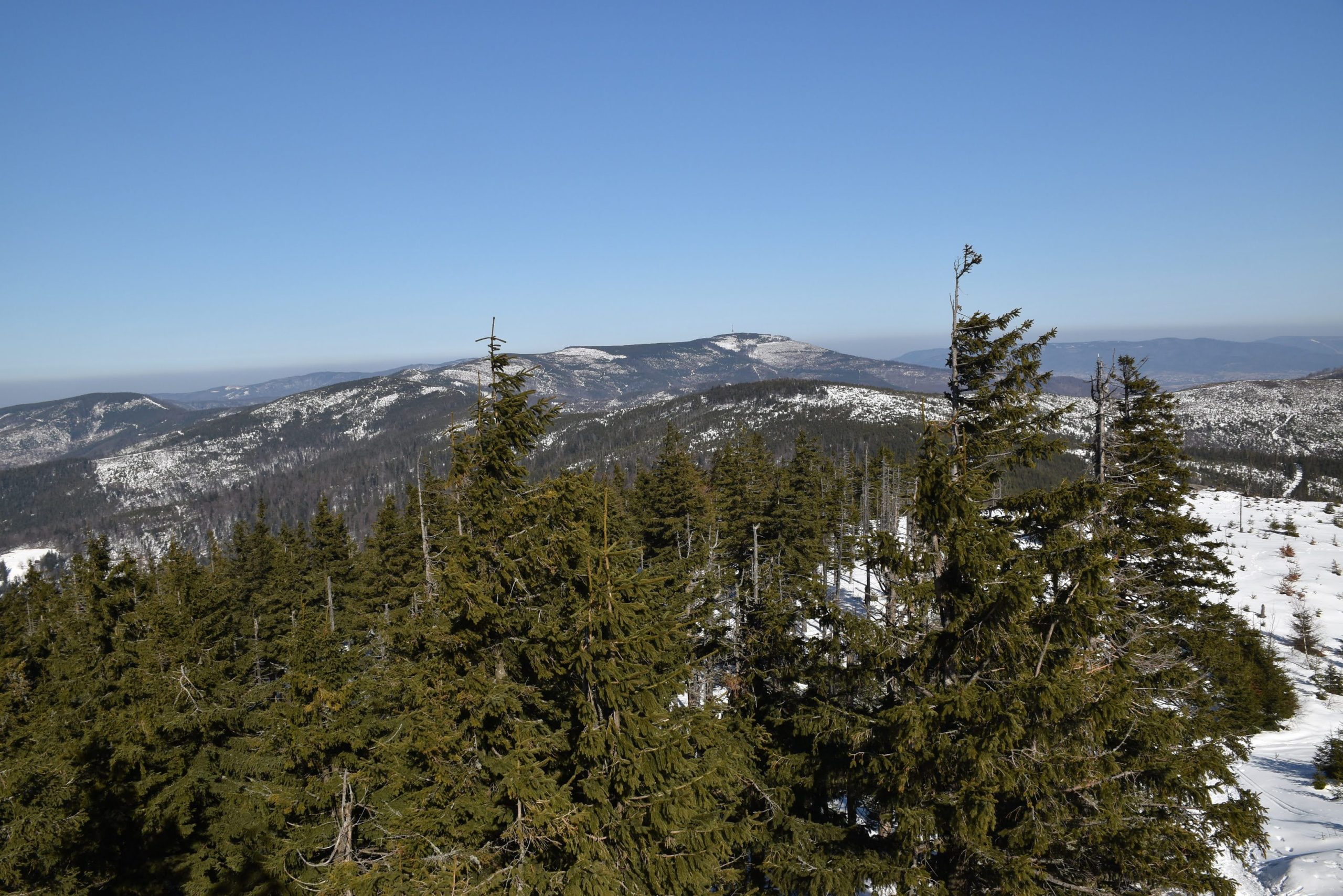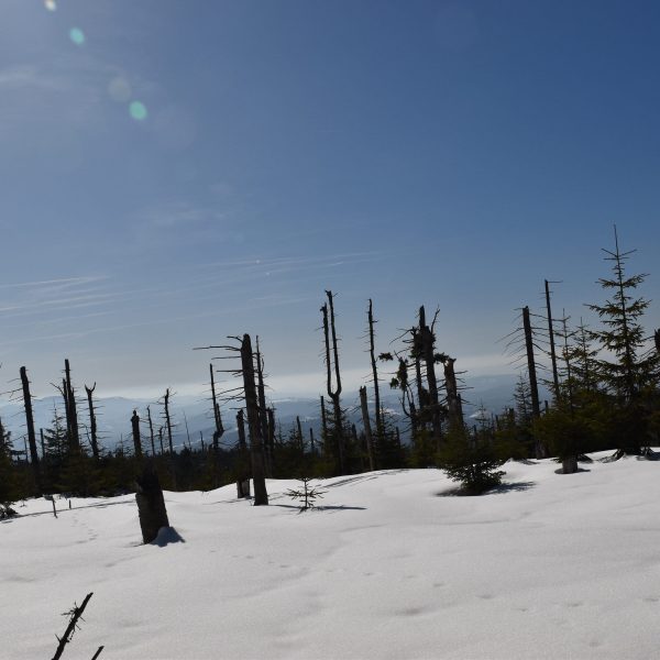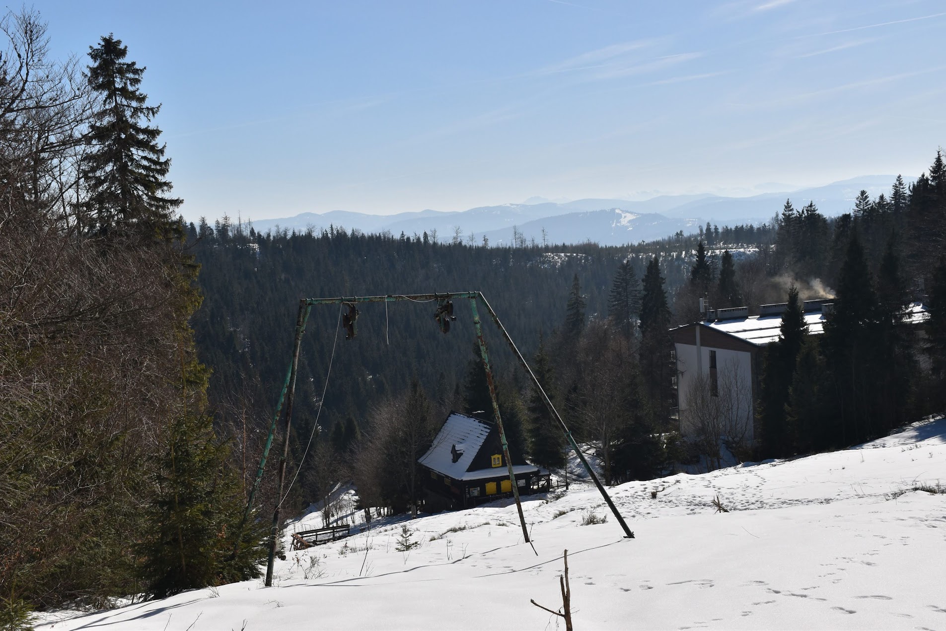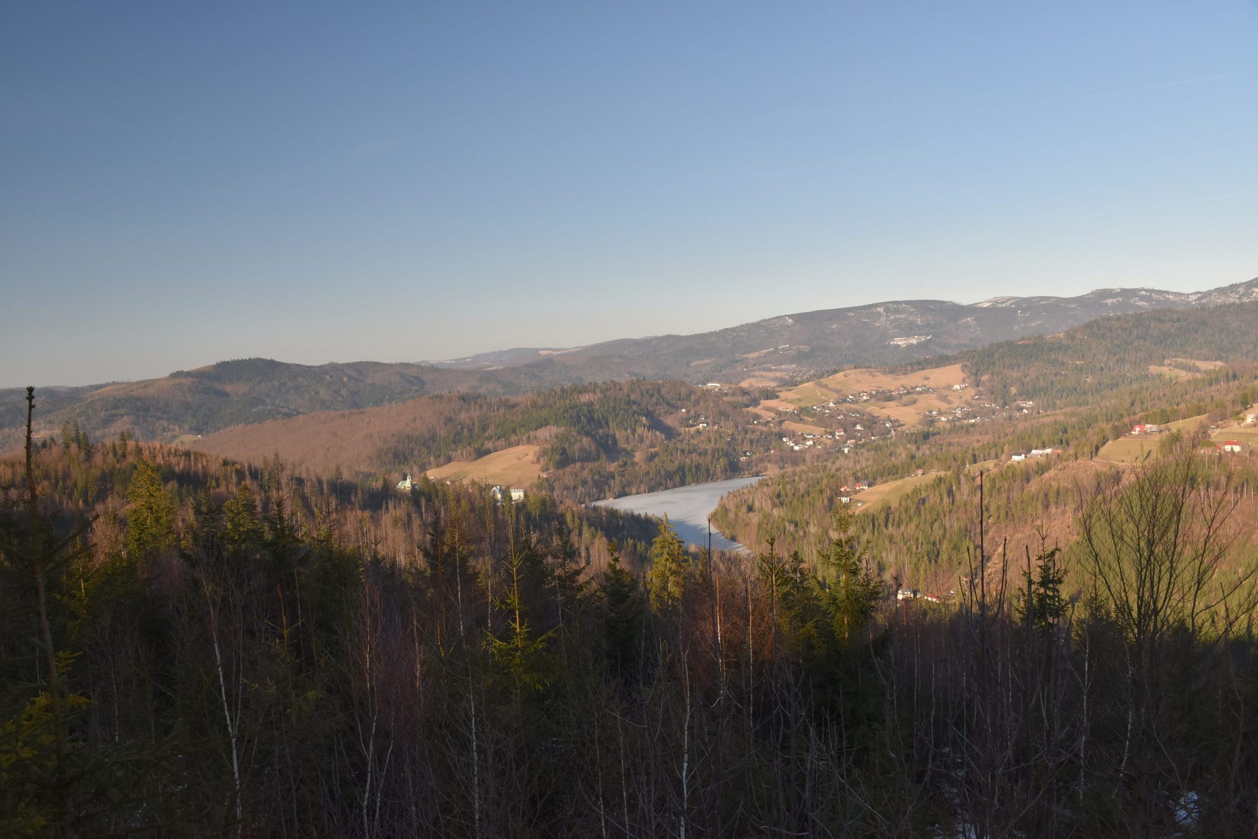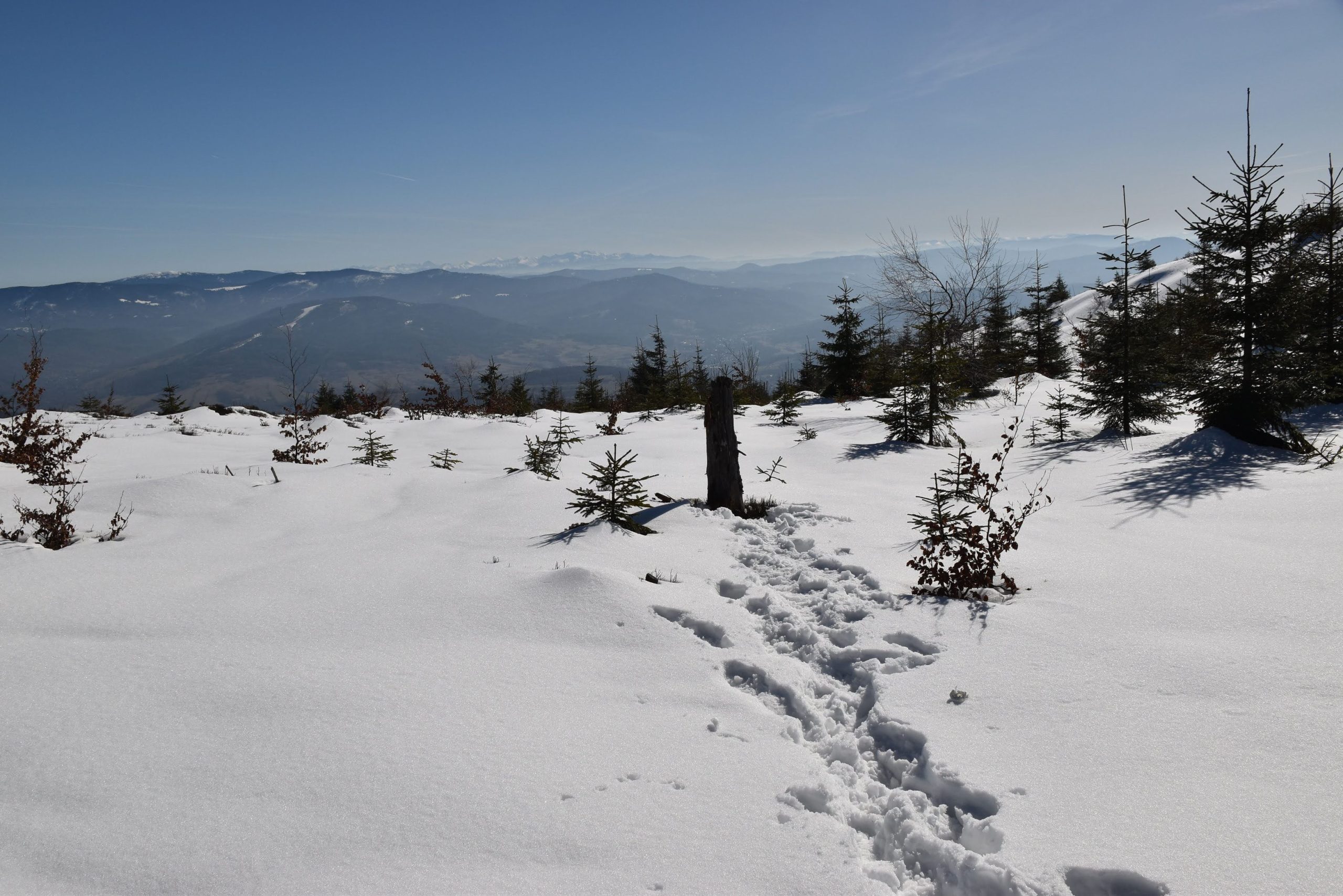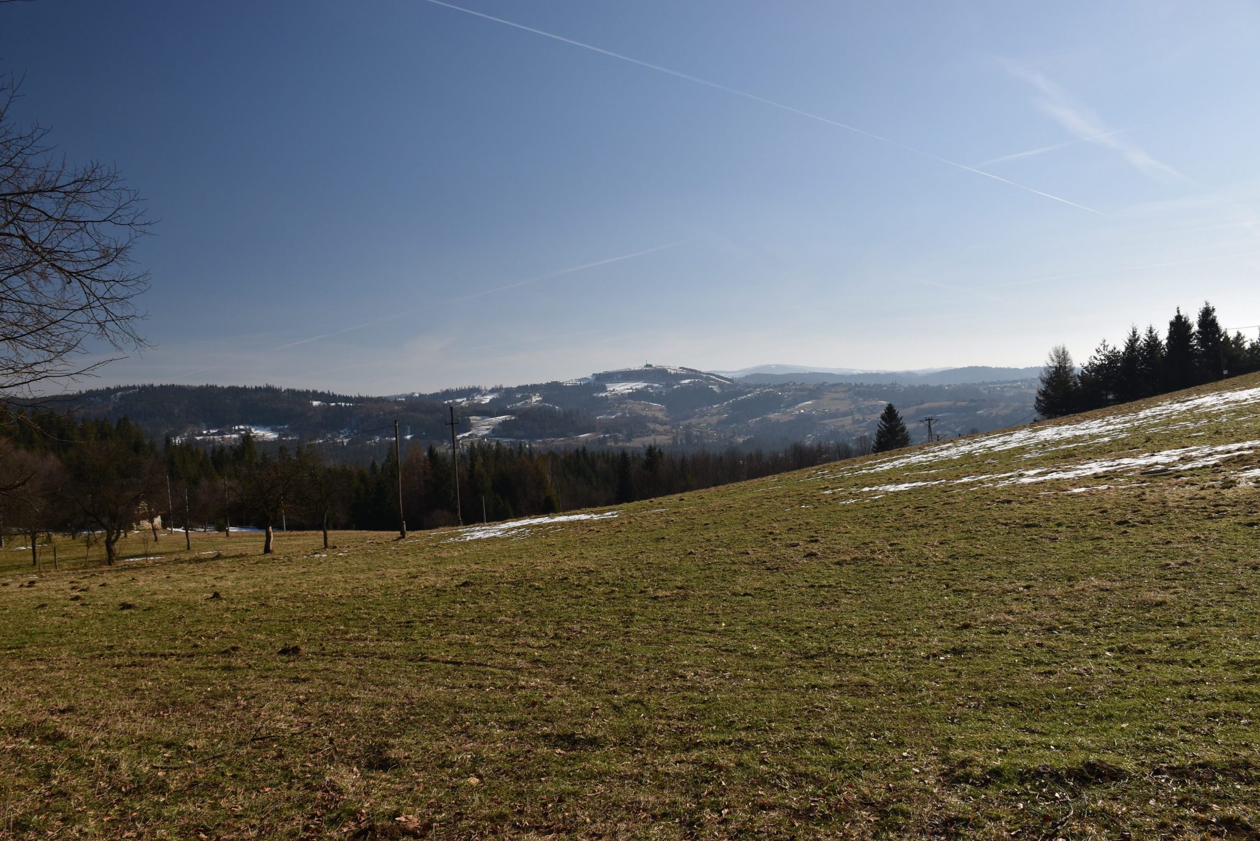 Coraz bardziej przerzedzony las pozwala na podziwianie widoków,
