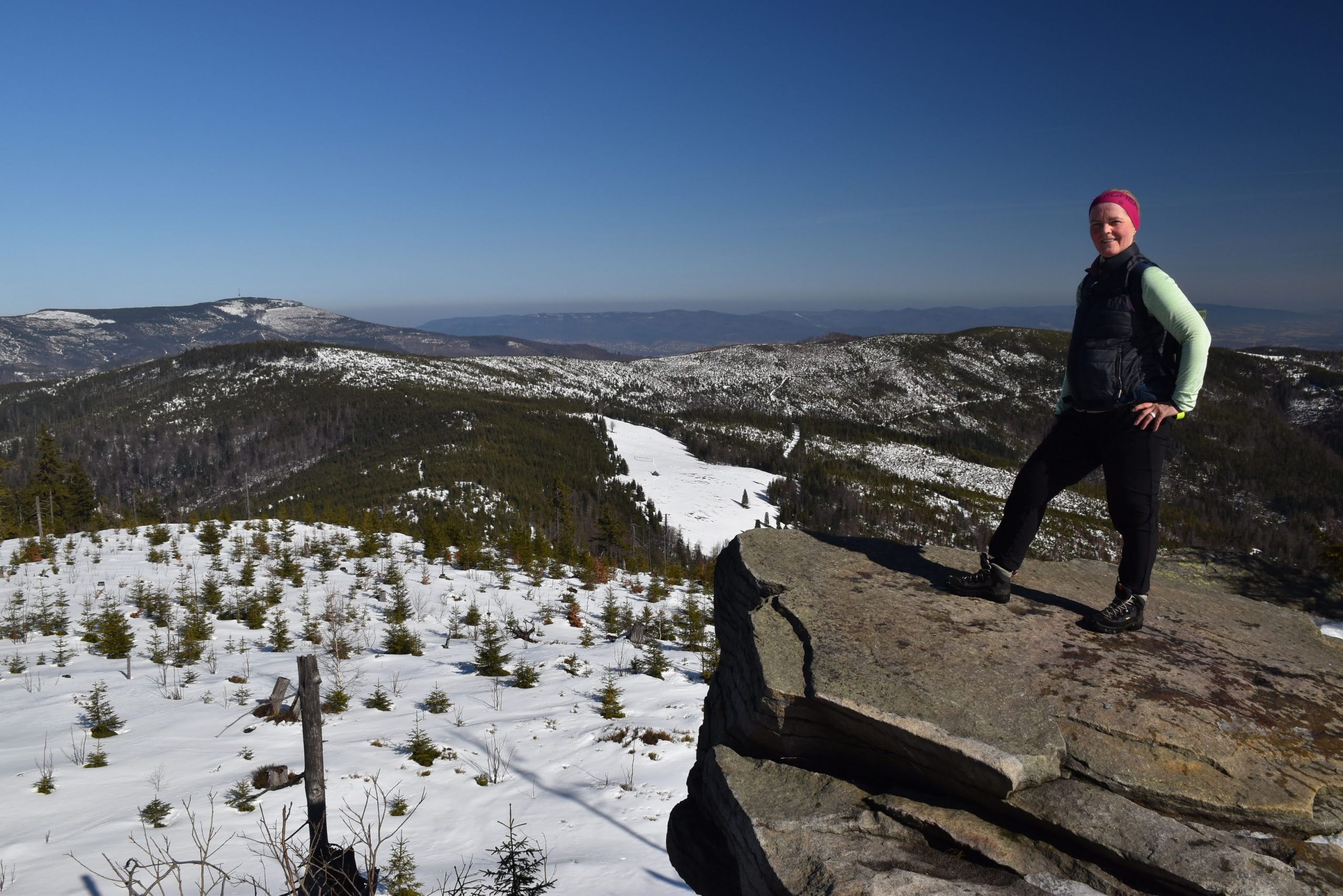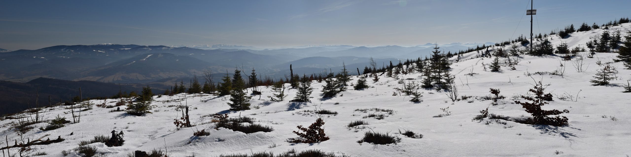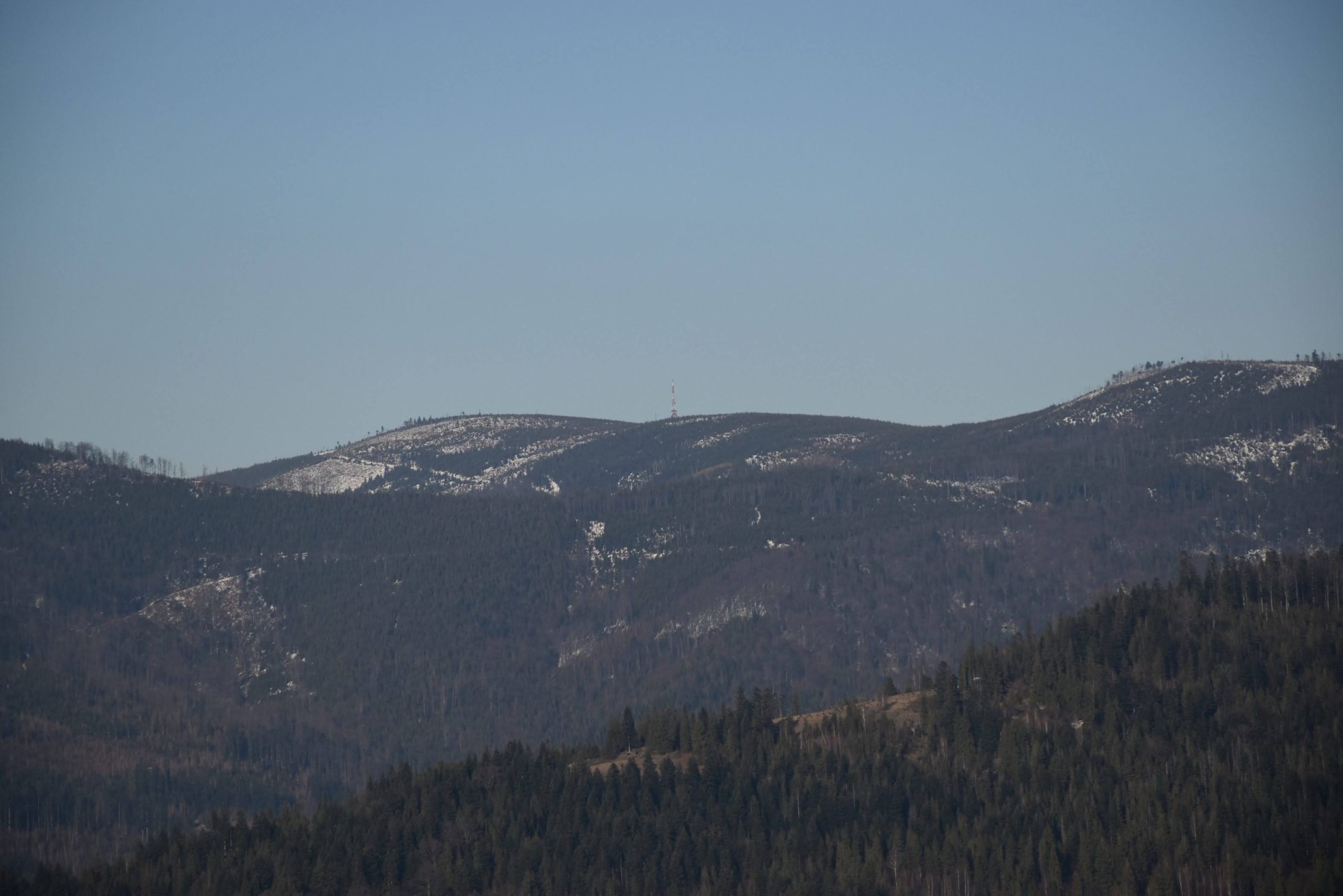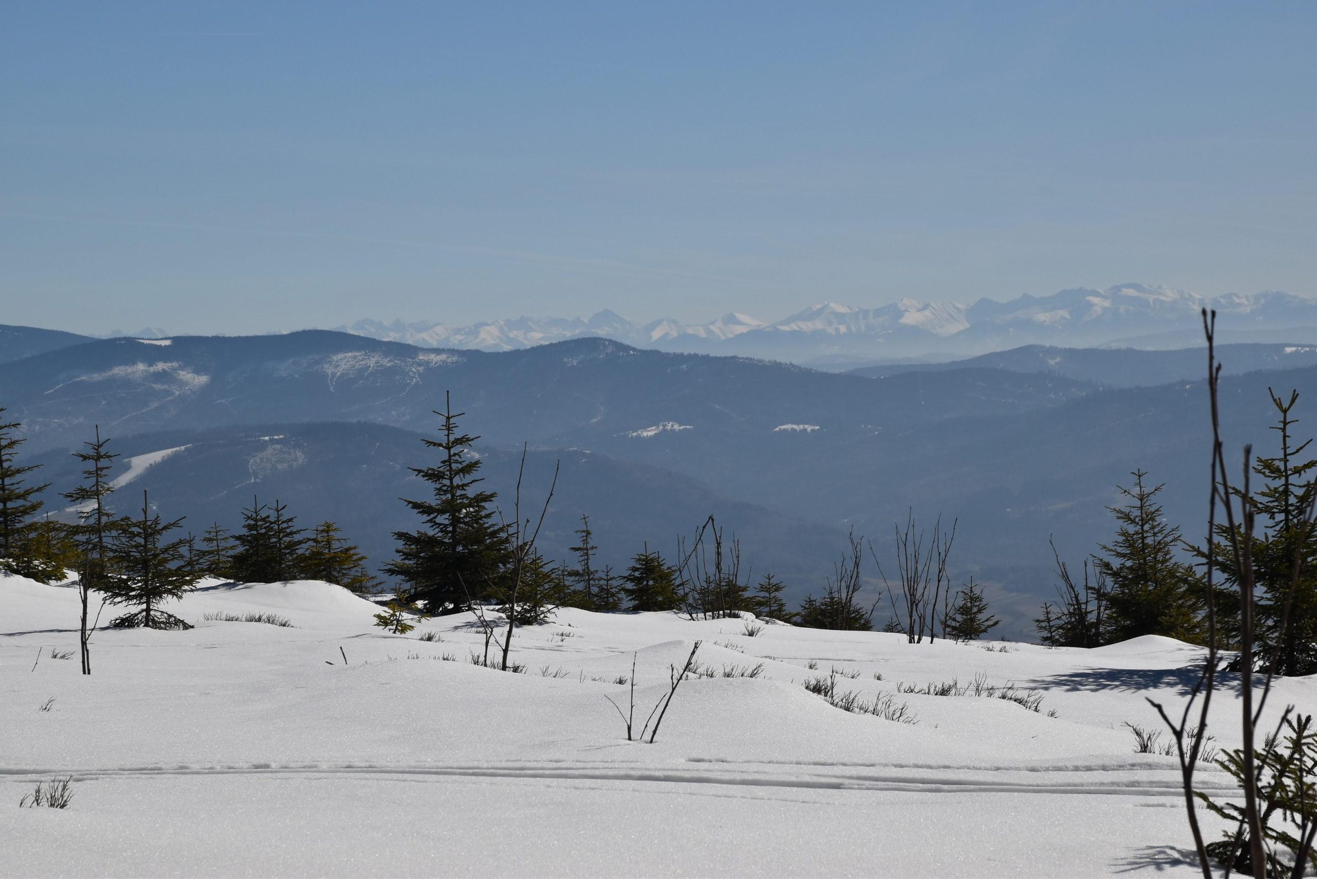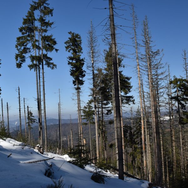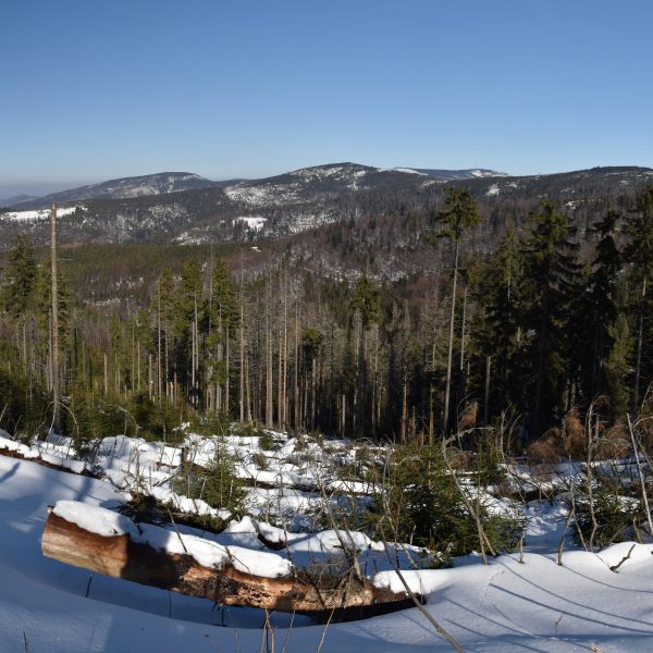 Coraz bardziej przerzedzony las pozwala na podziwianie widoków,