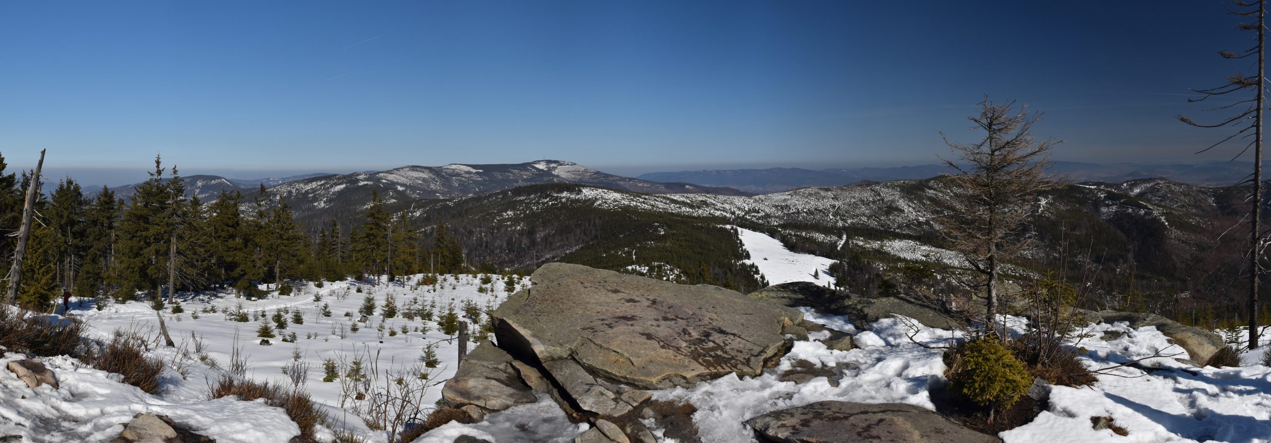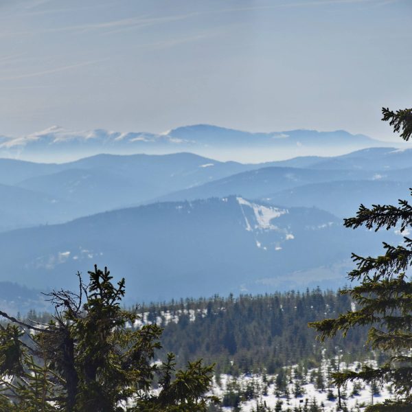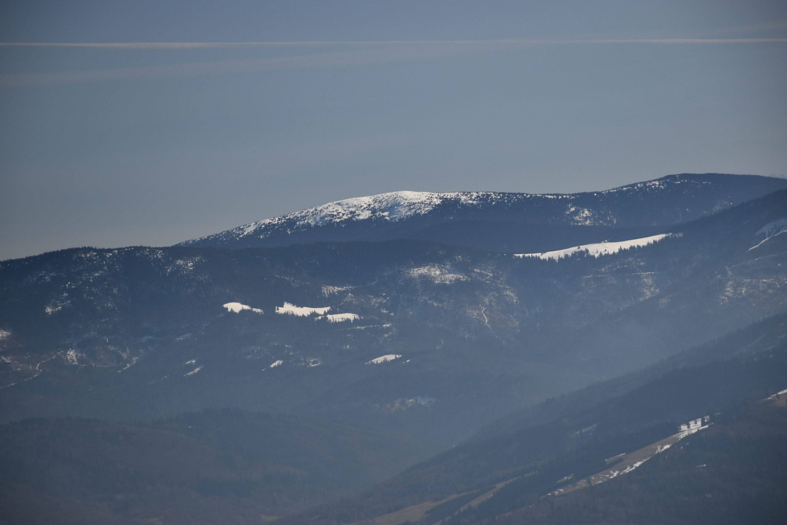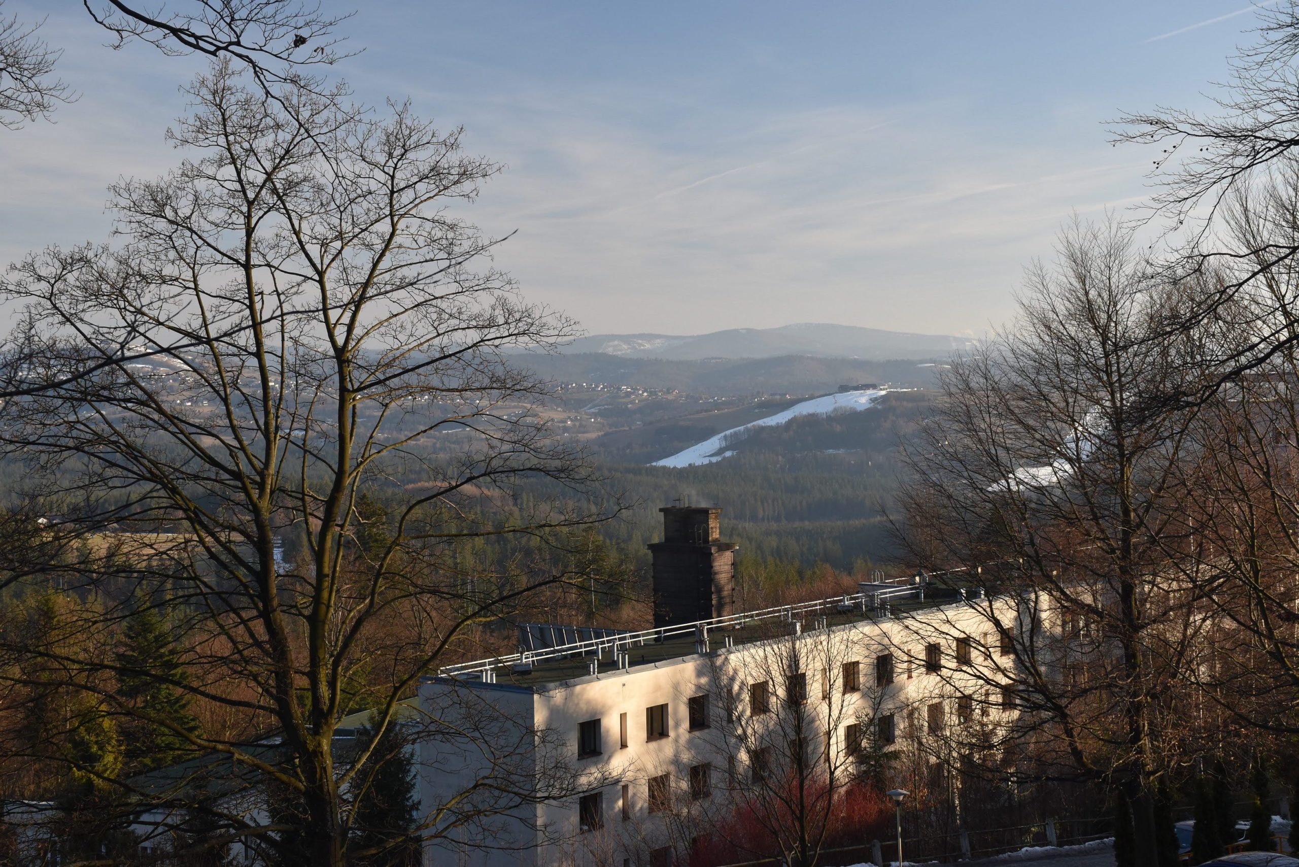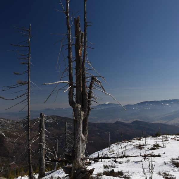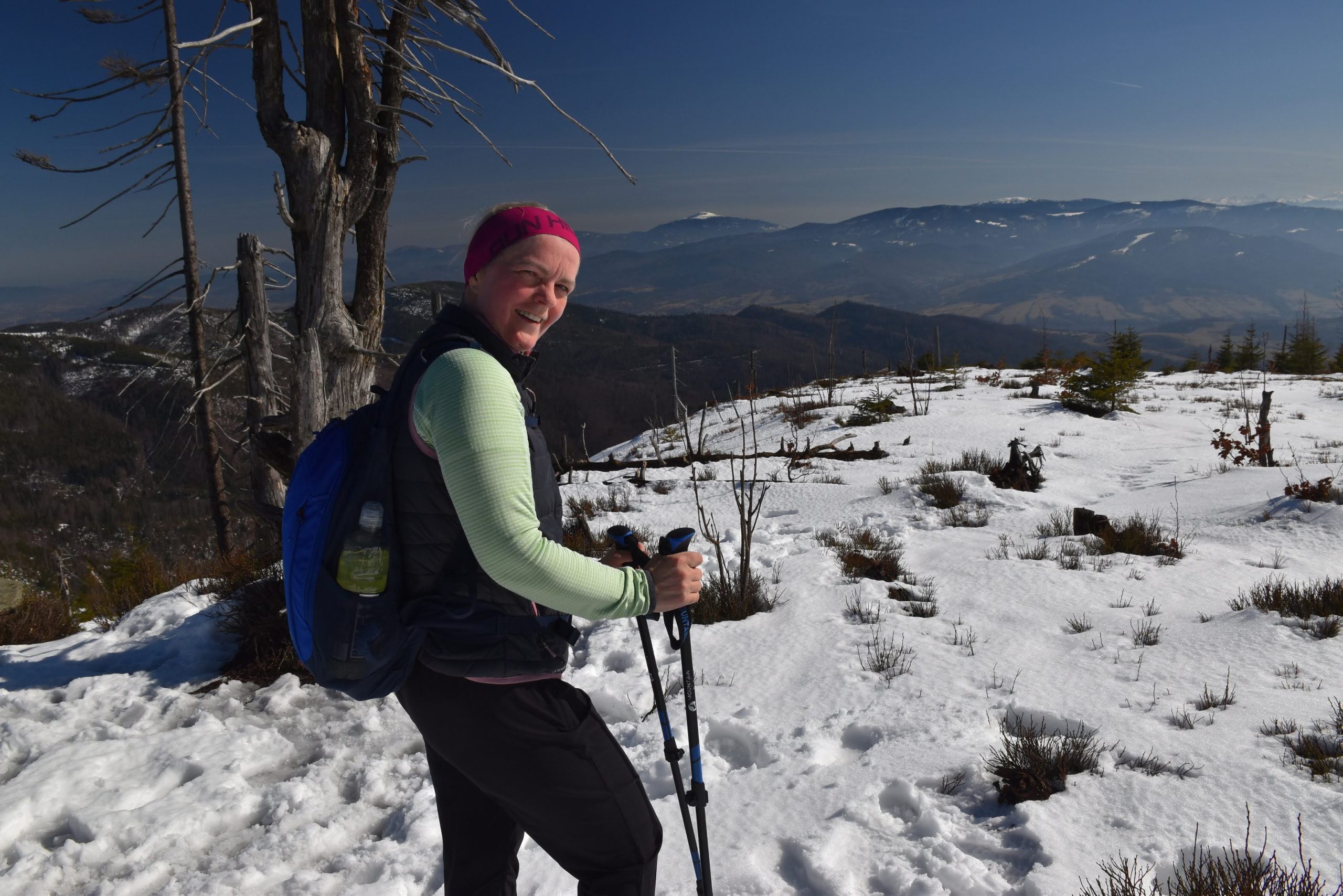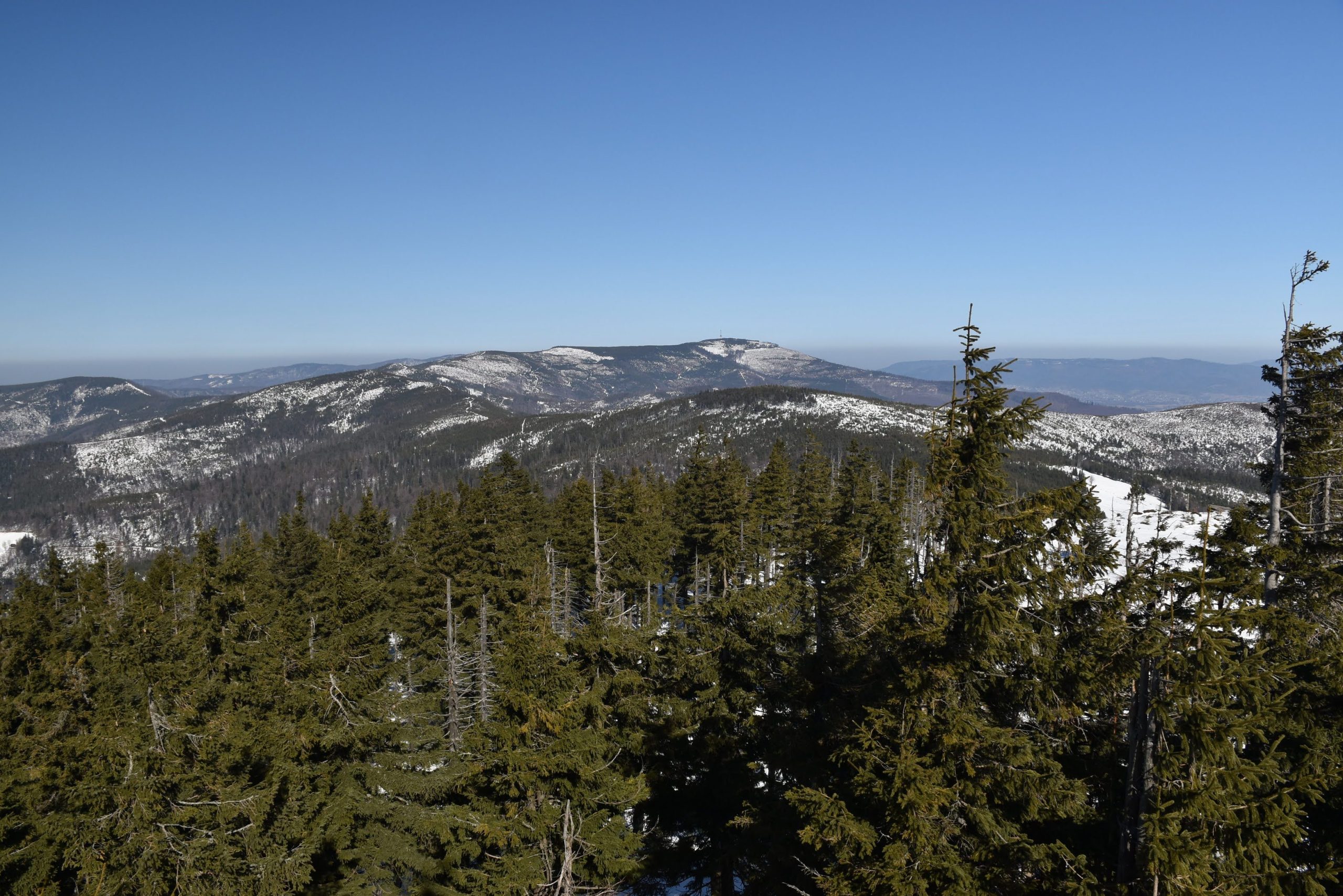Coraz bardziej przerzedzony las pozwala na podziwianie widoków,