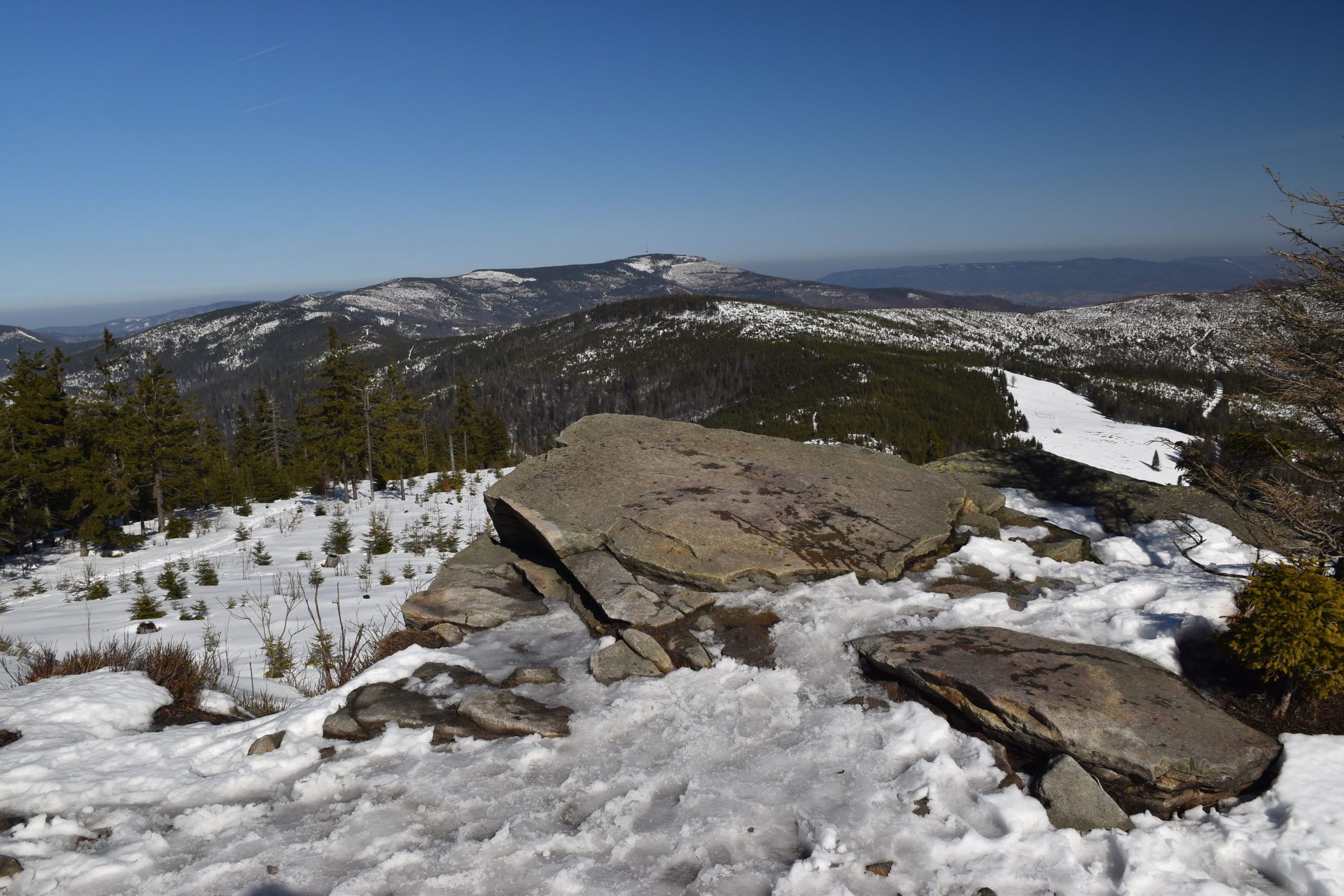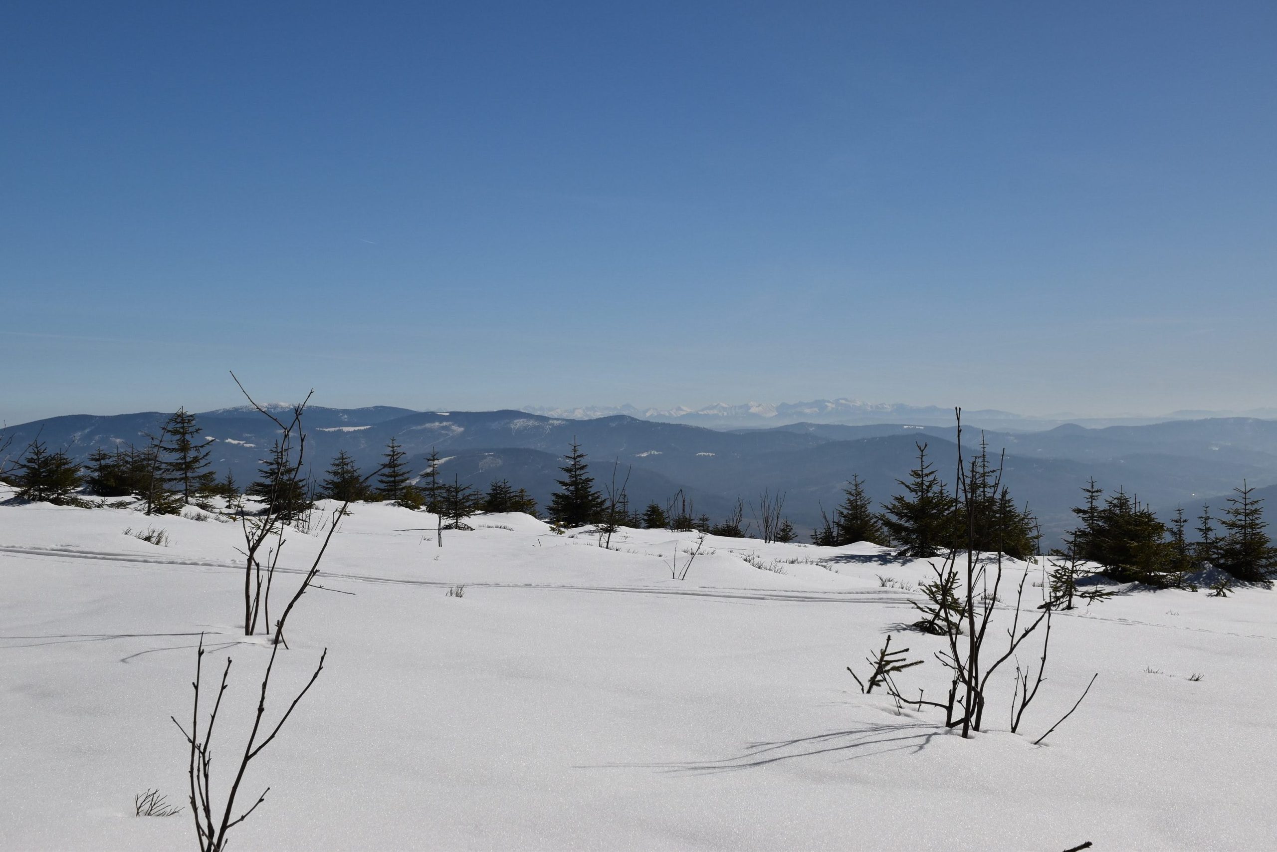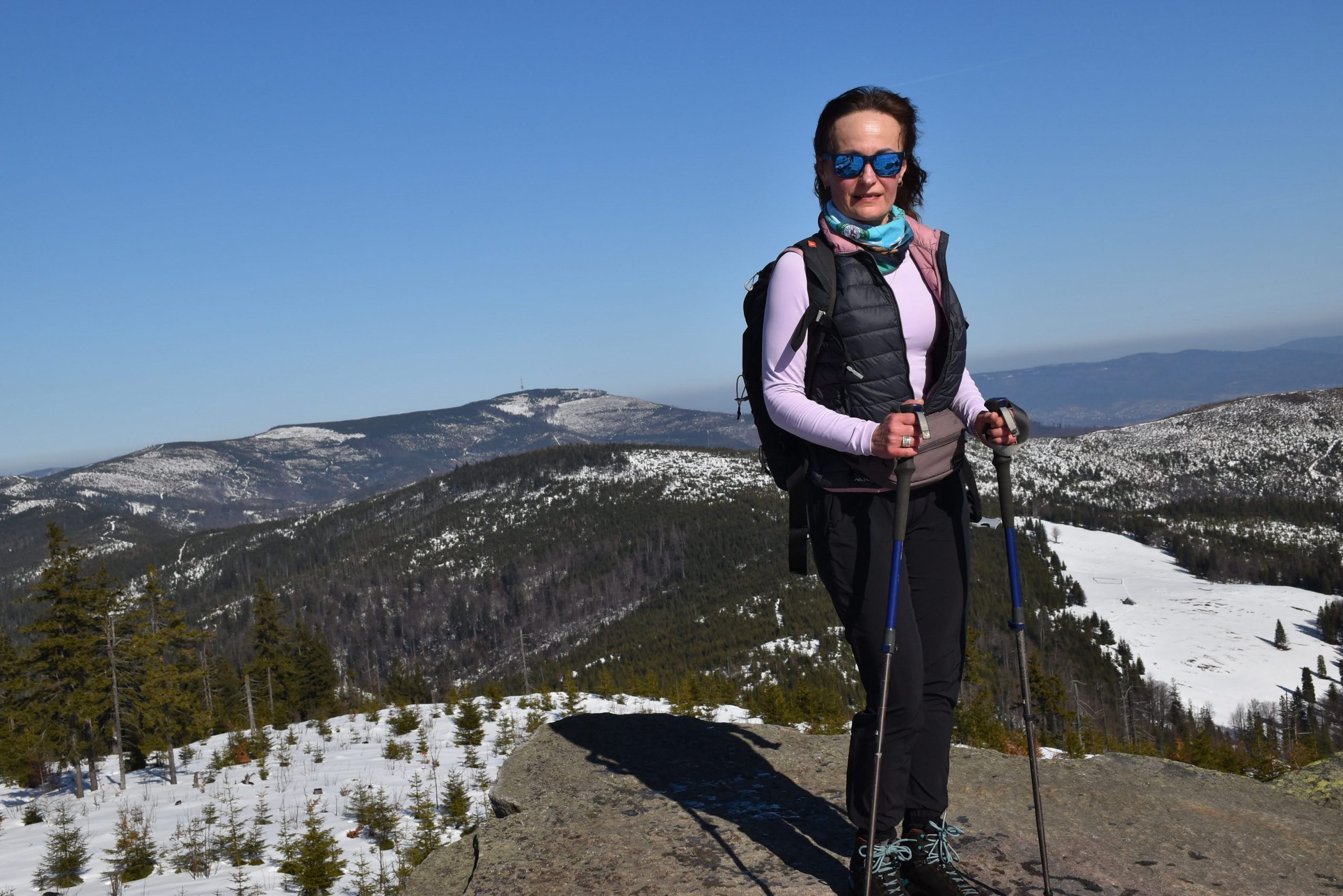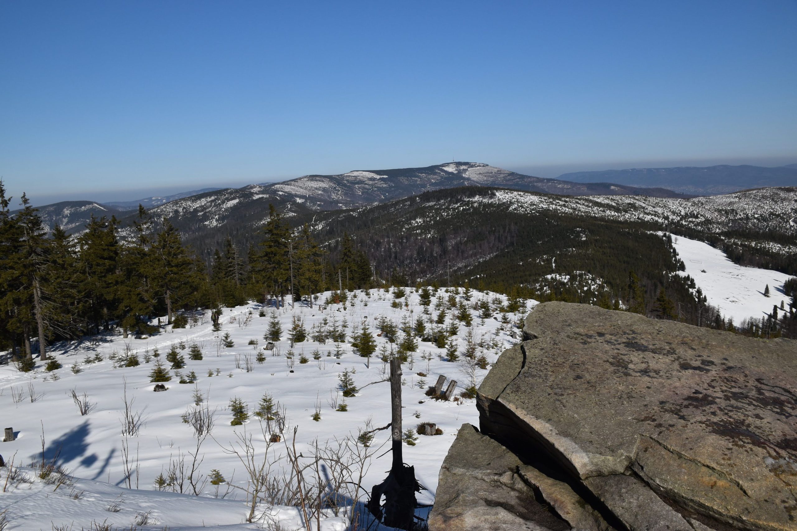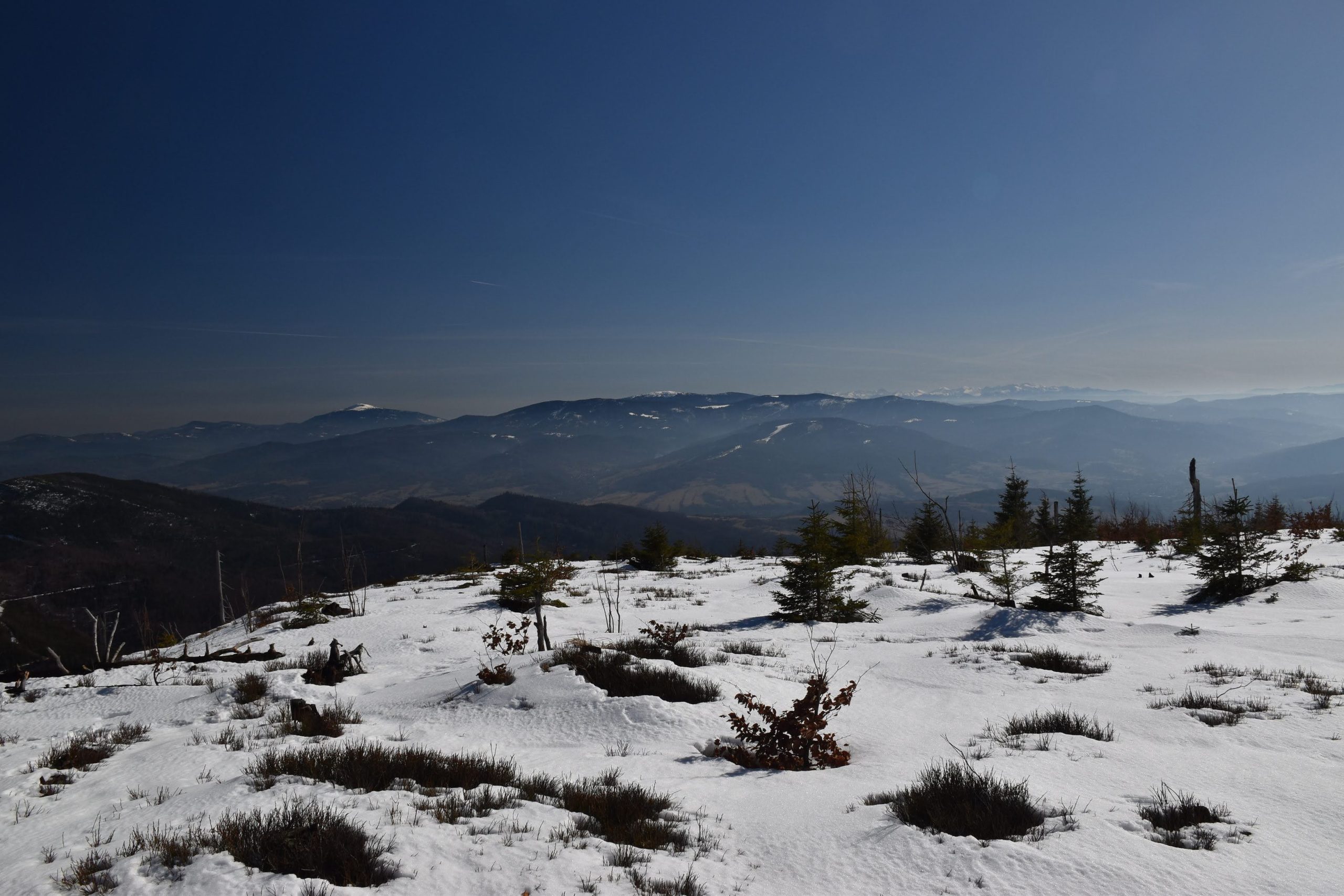 Coraz bardziej przerzedzony las pozwala na podziwianie widoków,