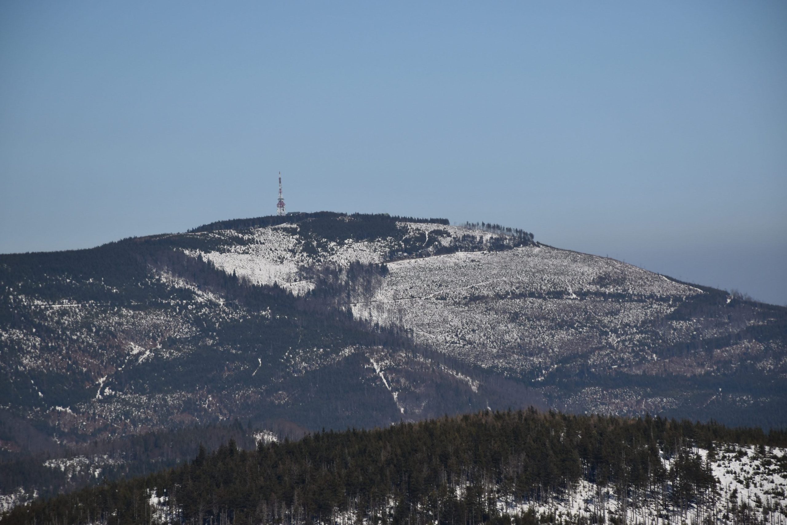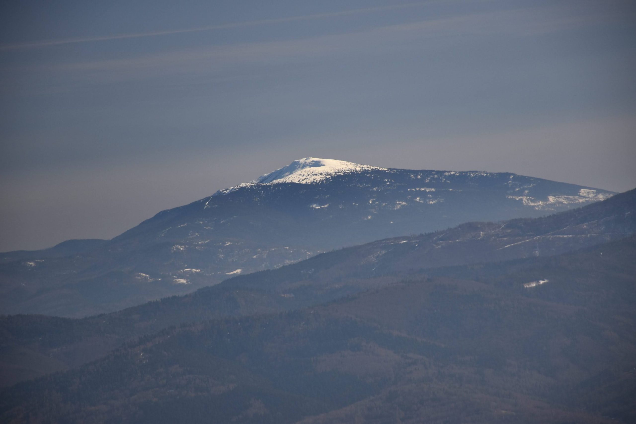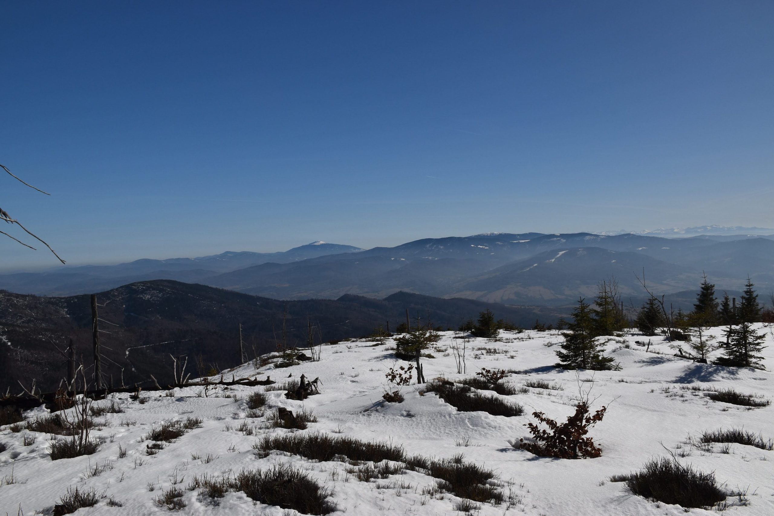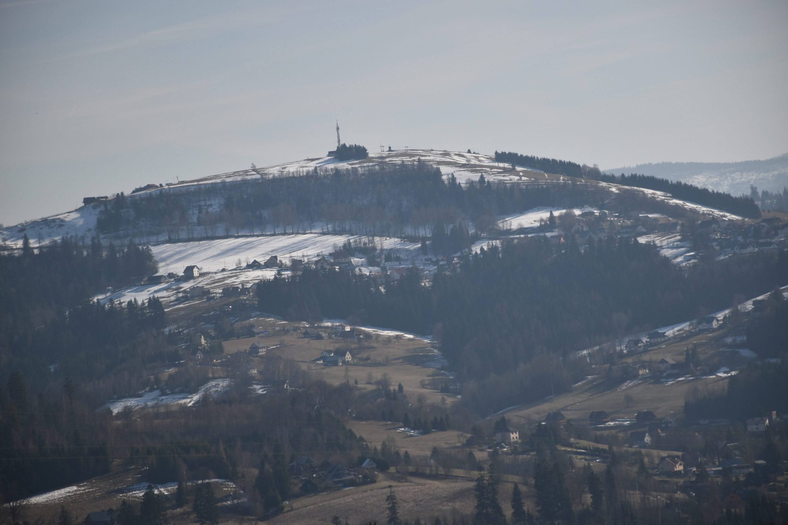 widać też wyraźnie, że wierzchołek Baraniej Góry ma kopulastą formę i stanowi rozległy płaskowyż.