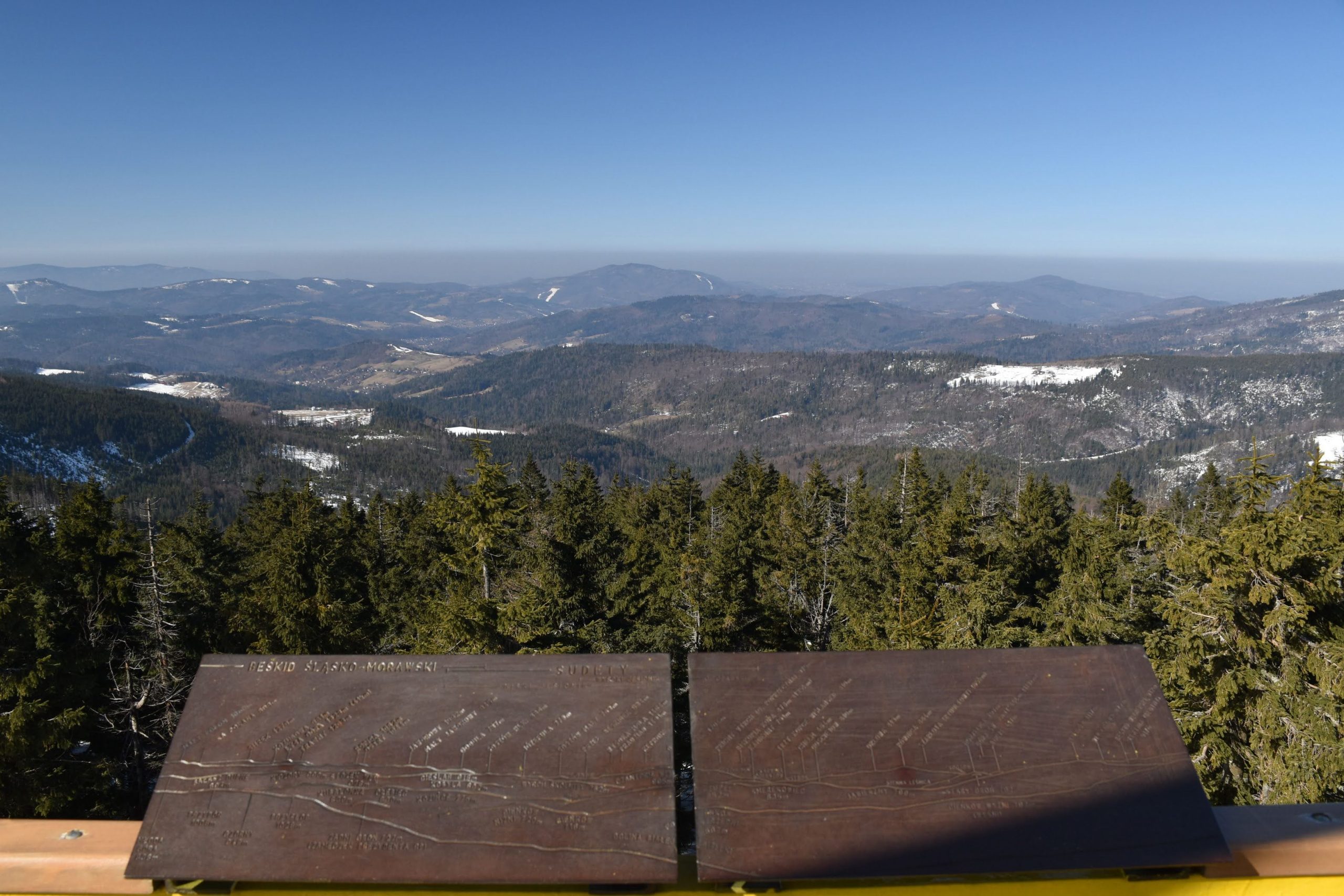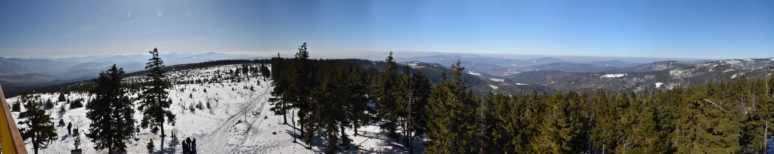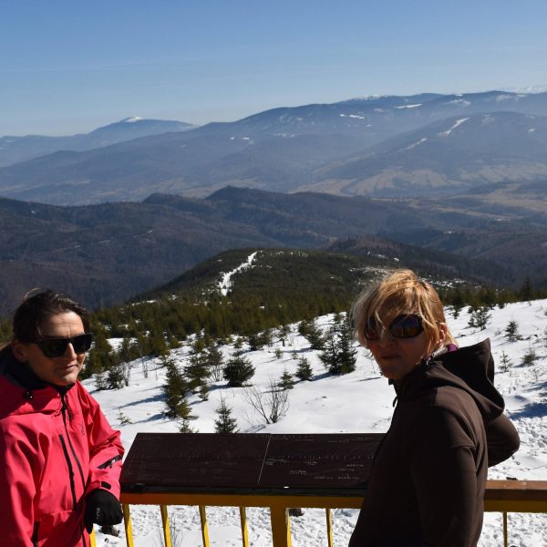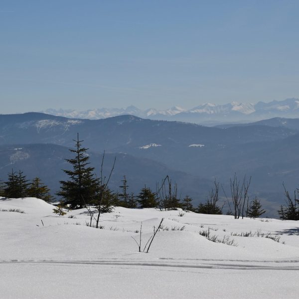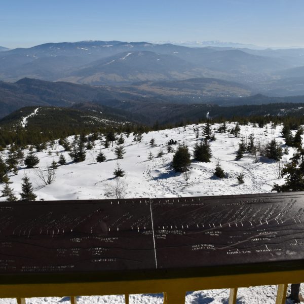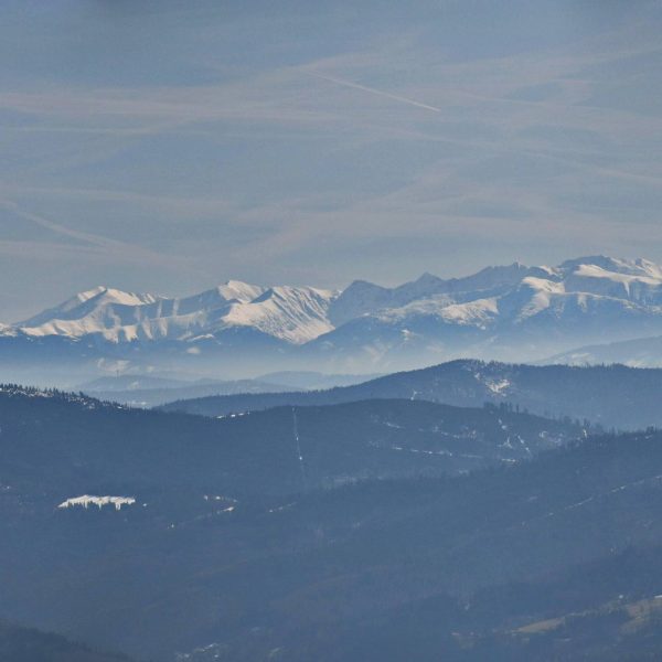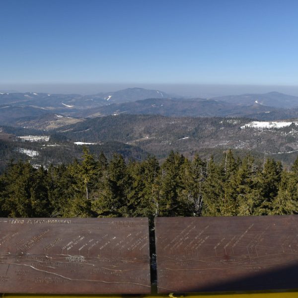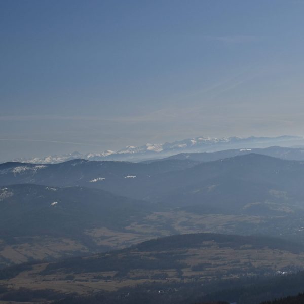Z platformy roztacza się spektakularna panorama na pobliskie pasma Beskidów, Tatry, Małą Fatrę, a nawet Sudety,