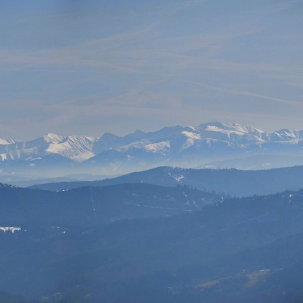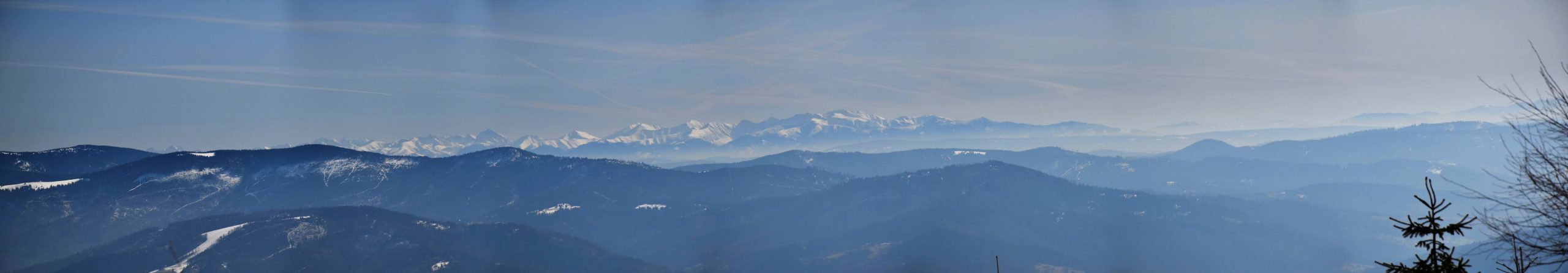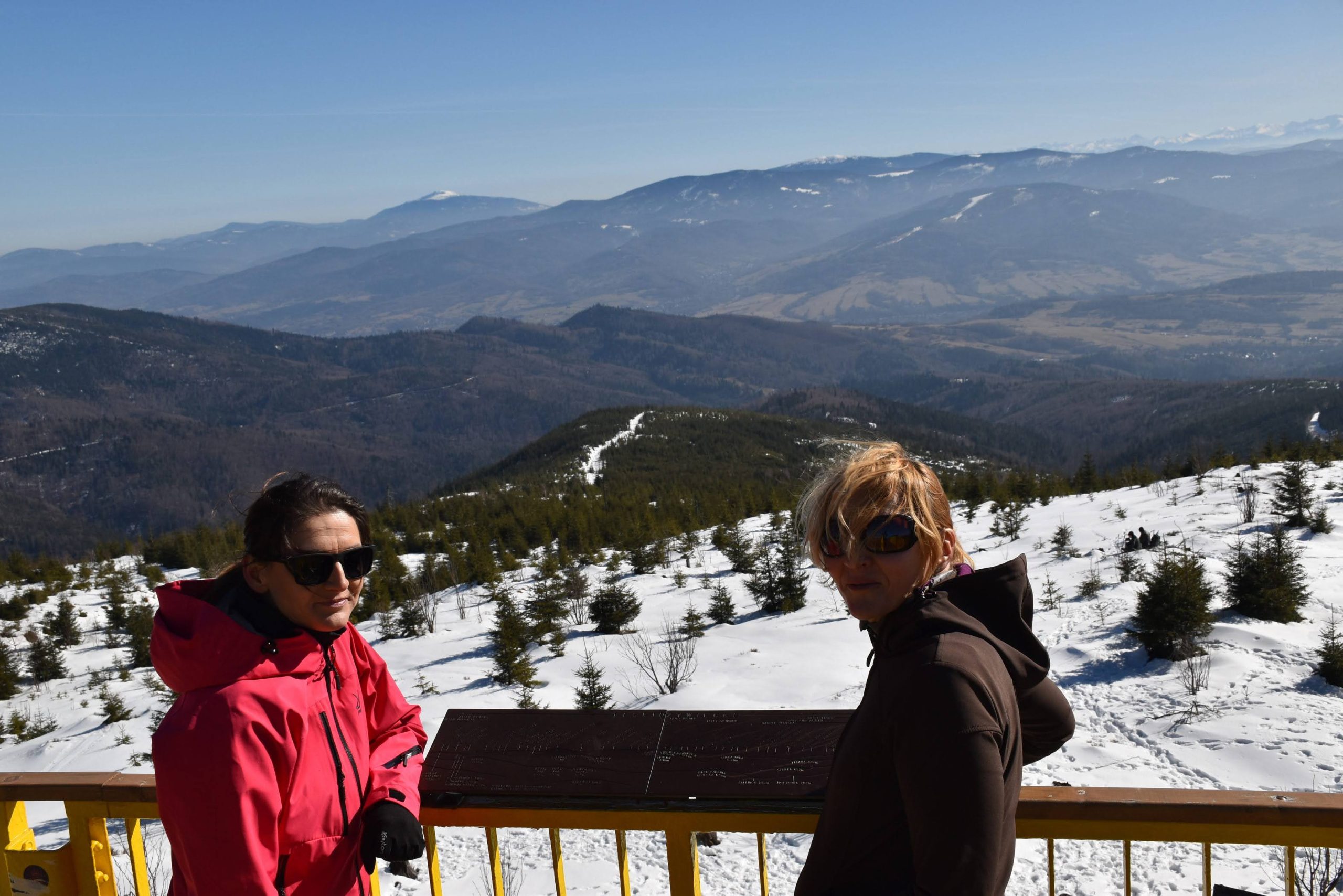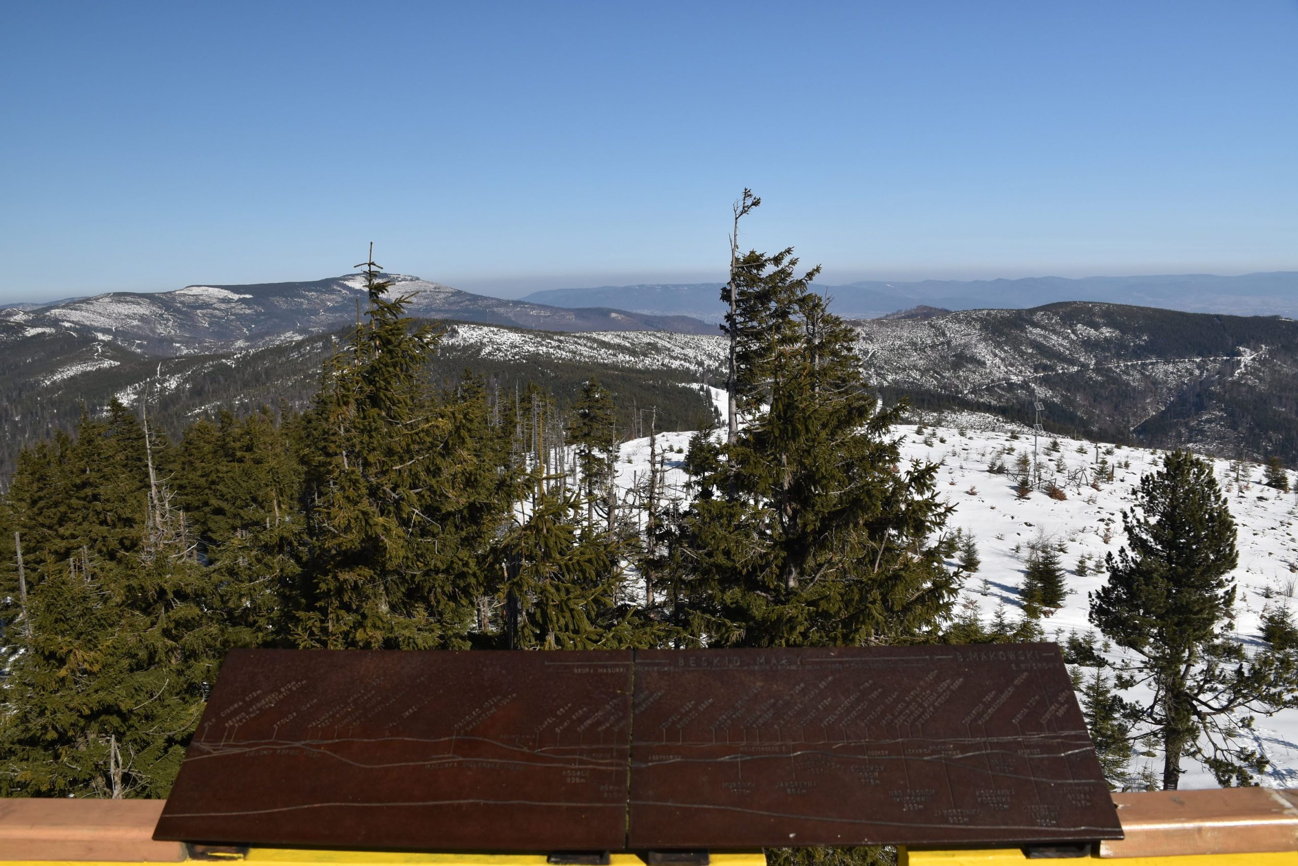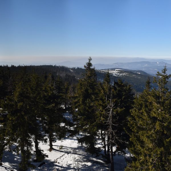 Z platformy roztacza się spektakularna panorama na pobliskie pasma Beskidów, Tatry, Małą Fatrę, a nawet Sudety,