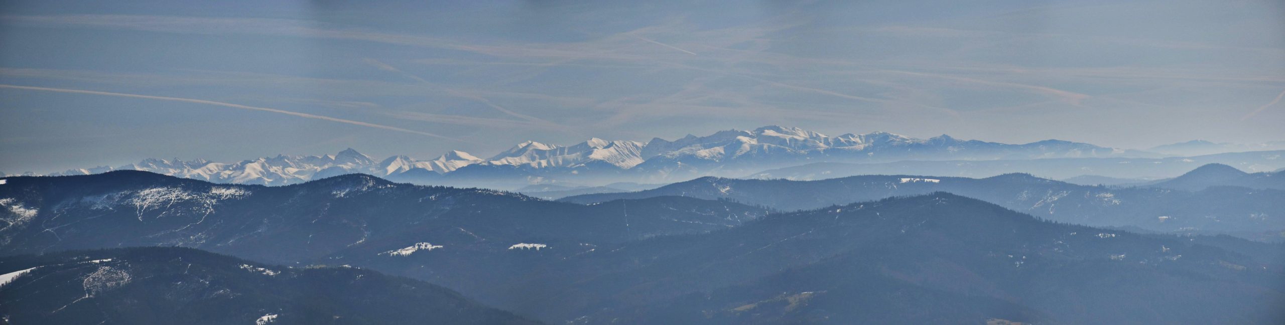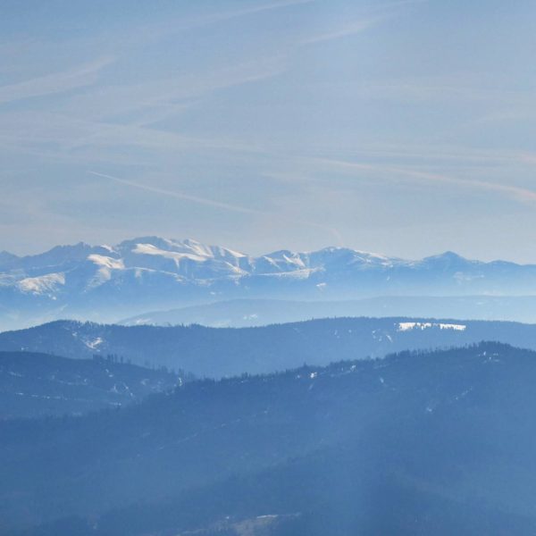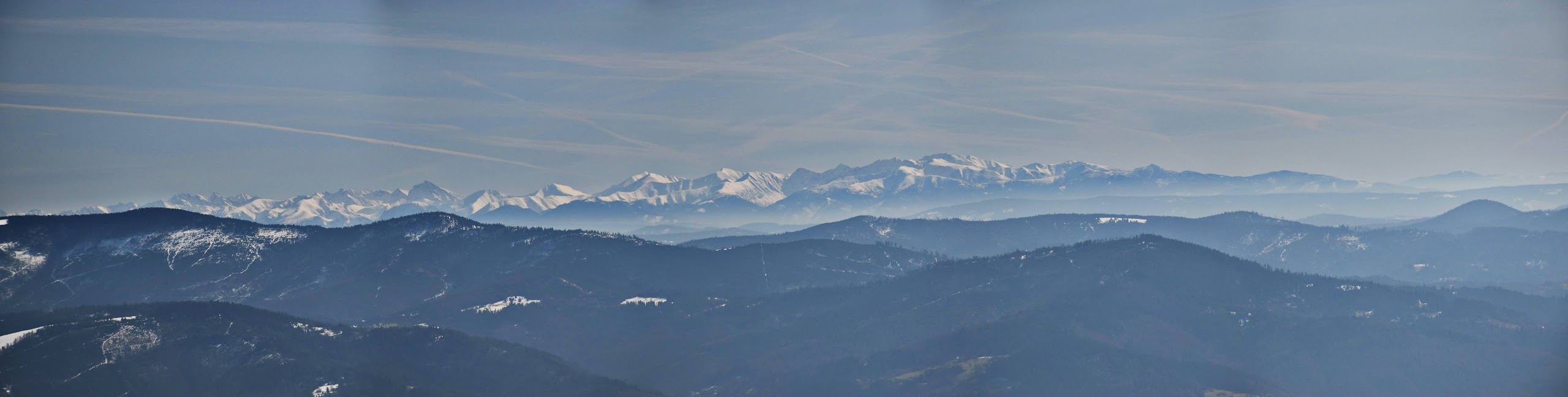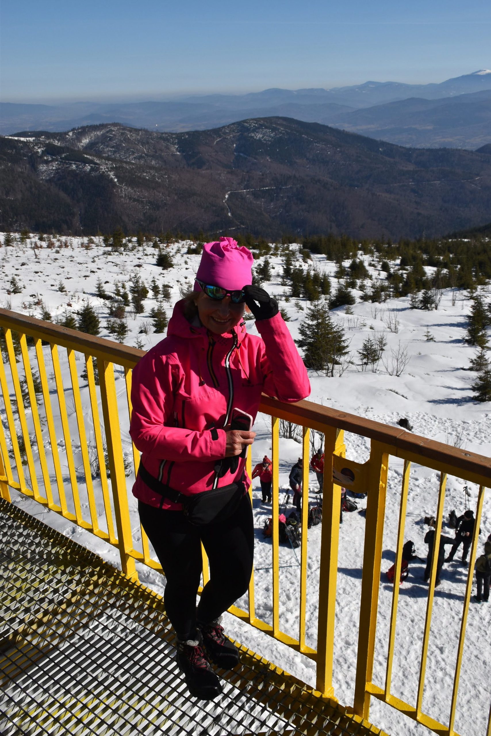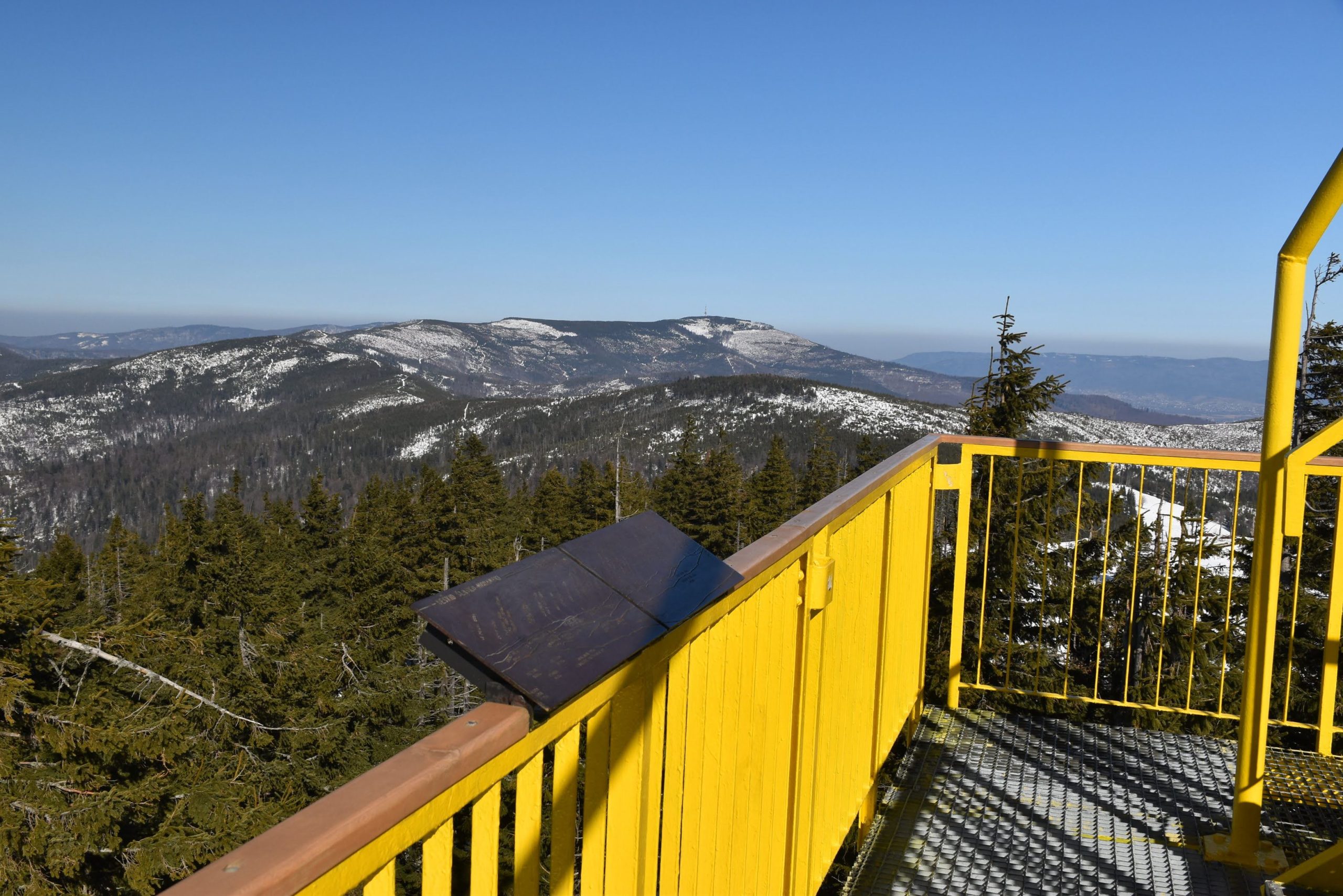 Z platformy roztacza się spektakularna panorama na pobliskie pasma Beskidów, Tatry, Małą Fatrę, a nawet Sudety,