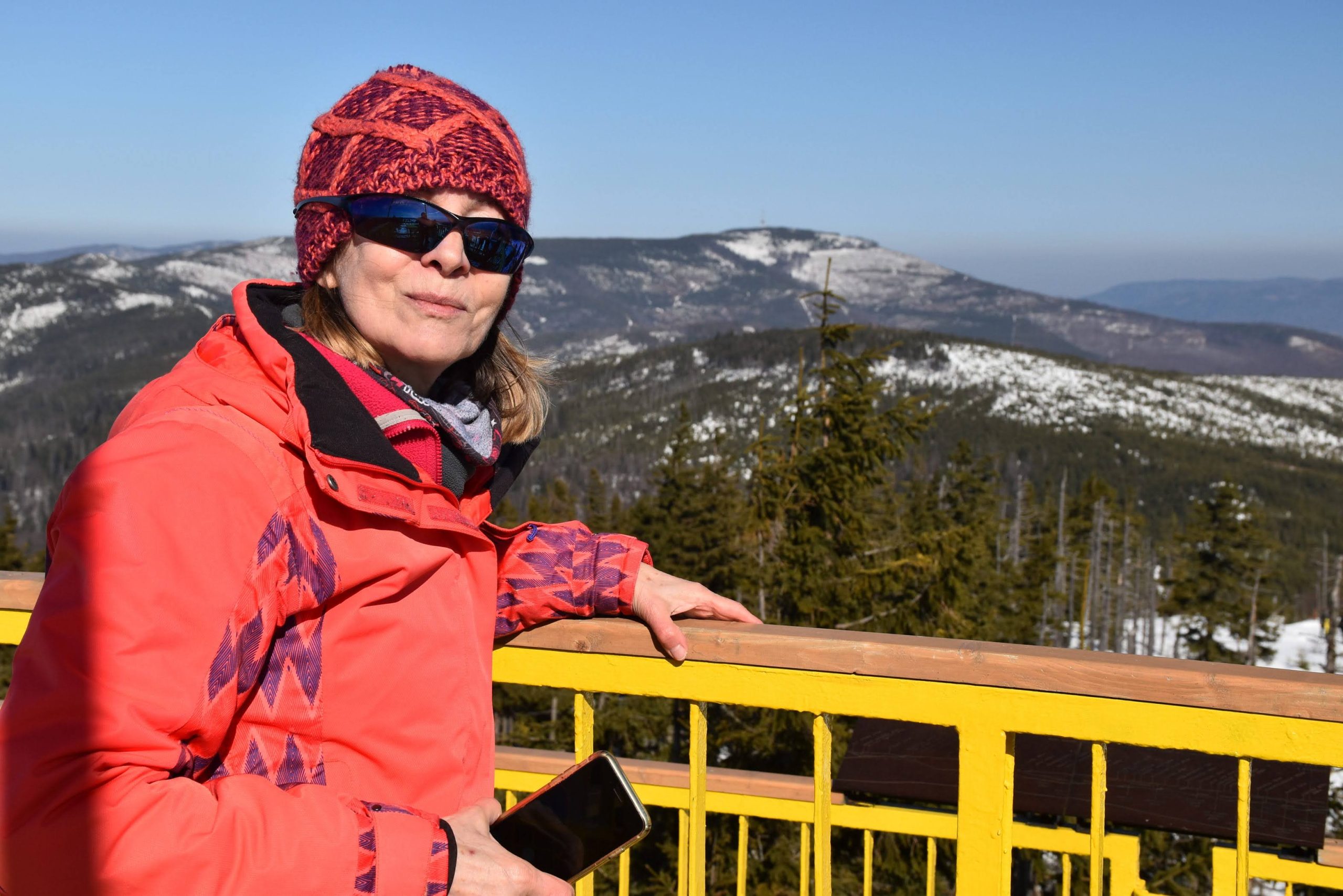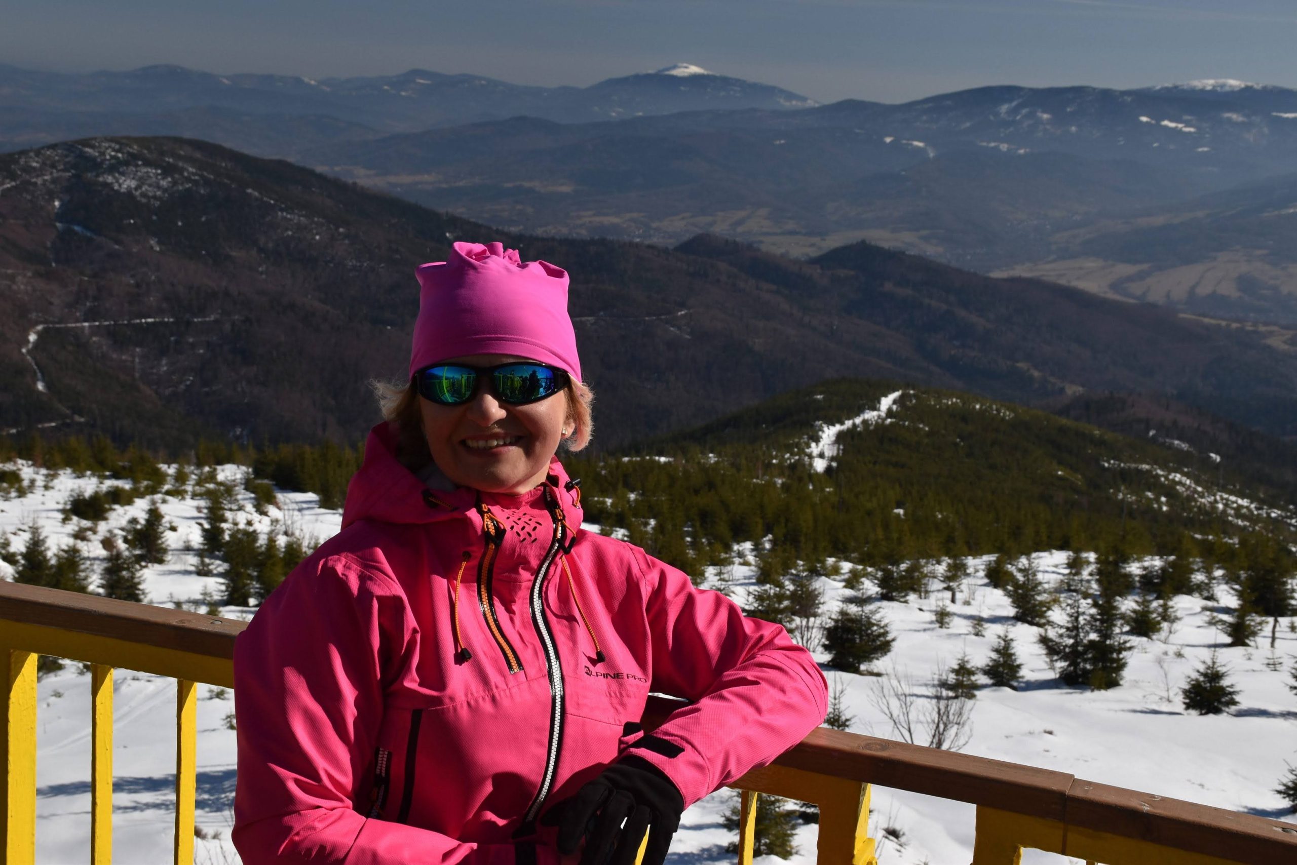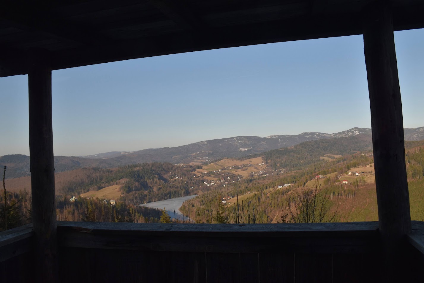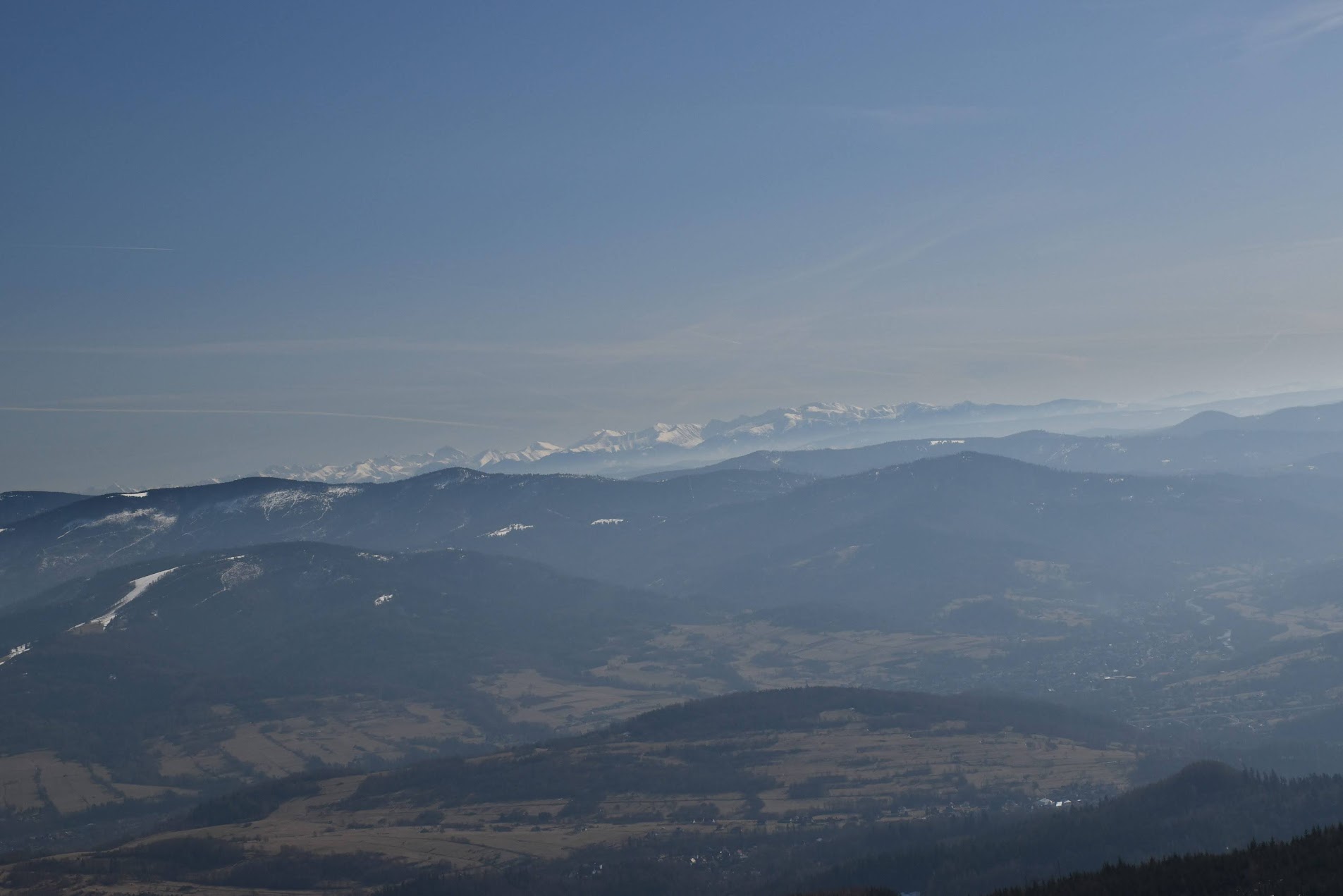 Z platformy roztacza się spektakularna panorama na pobliskie pasma Beskidów, Tatry, Małą Fatrę, a nawet Sudety,