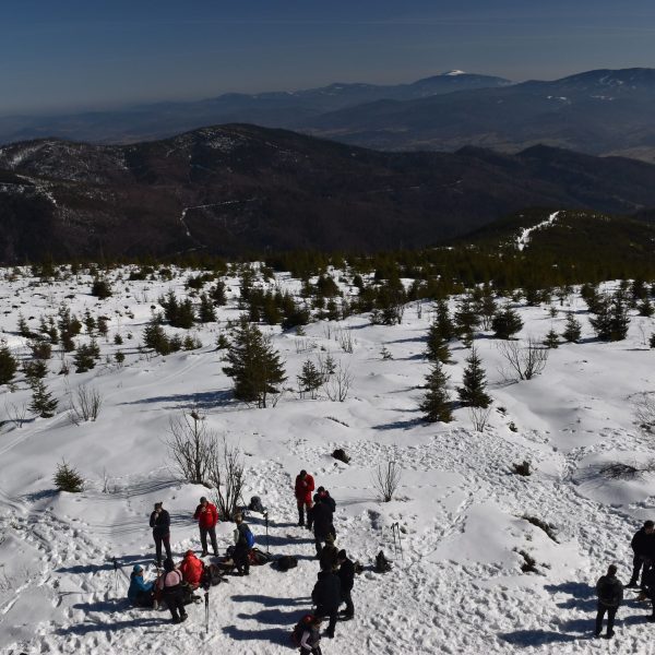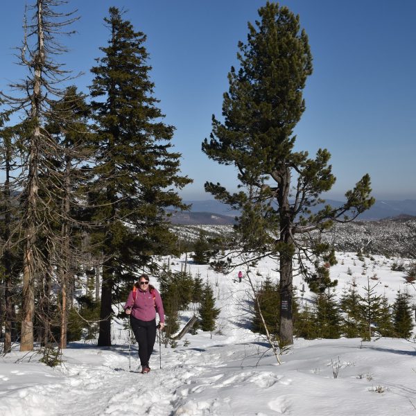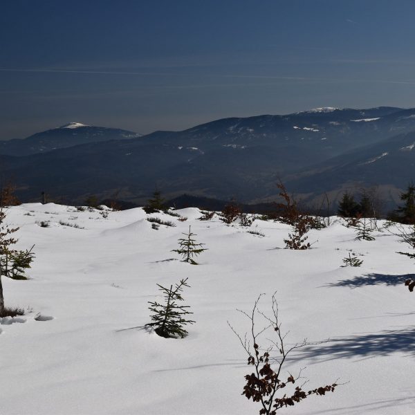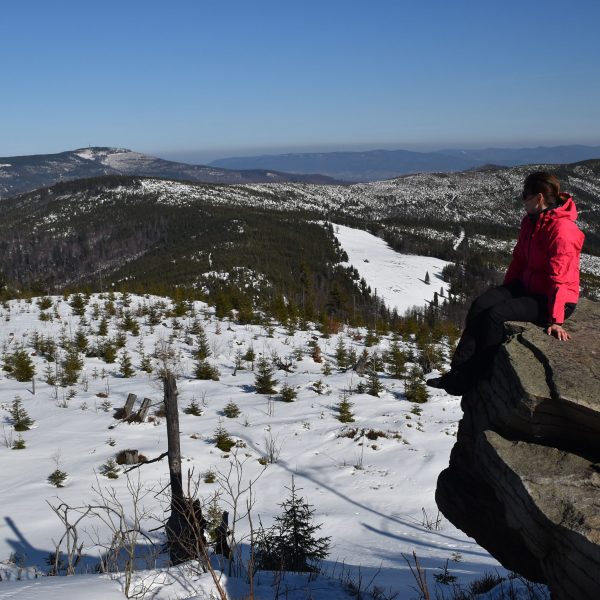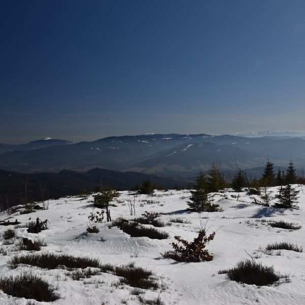 W nagrodę zdobywamy Szarculę (803 m)– ciekawy szczyt z kilkumetrową wychodnią, zwaną Dorkową Skałą (zabytek przyrody).