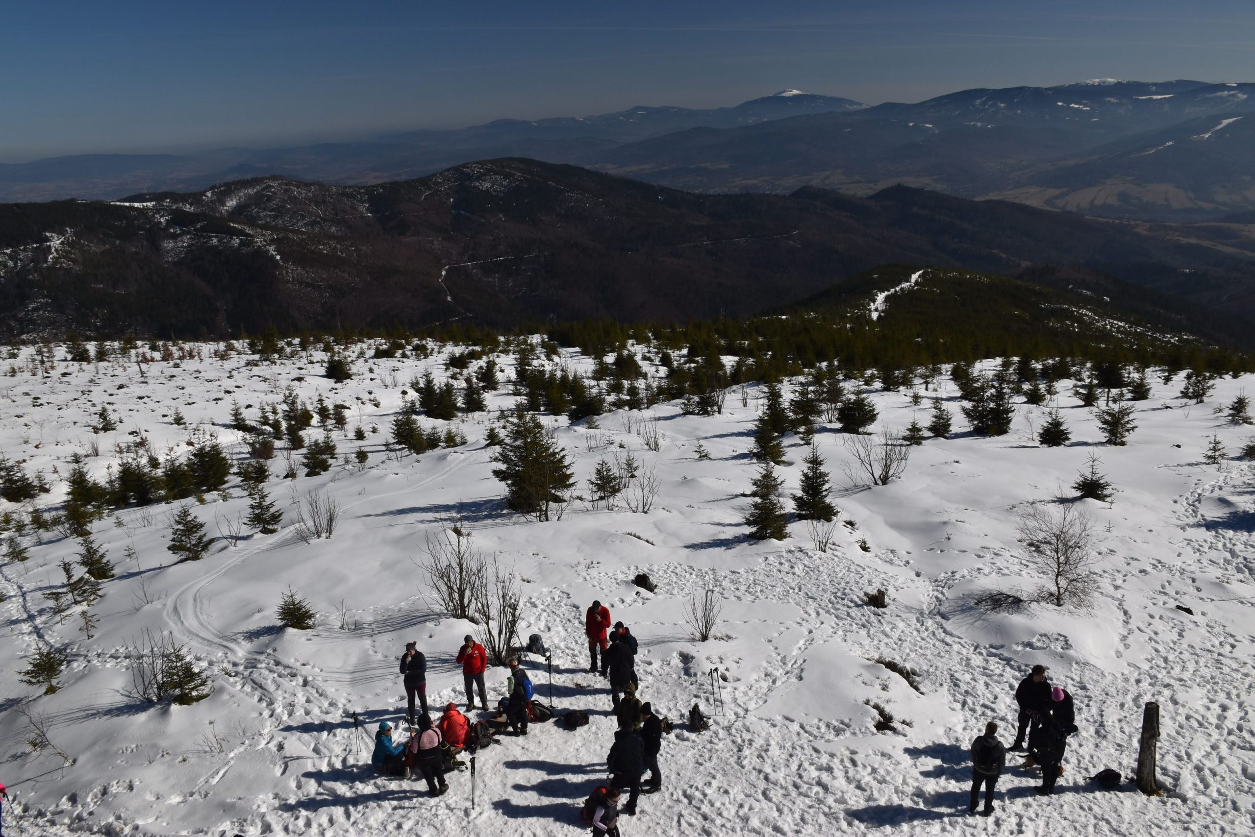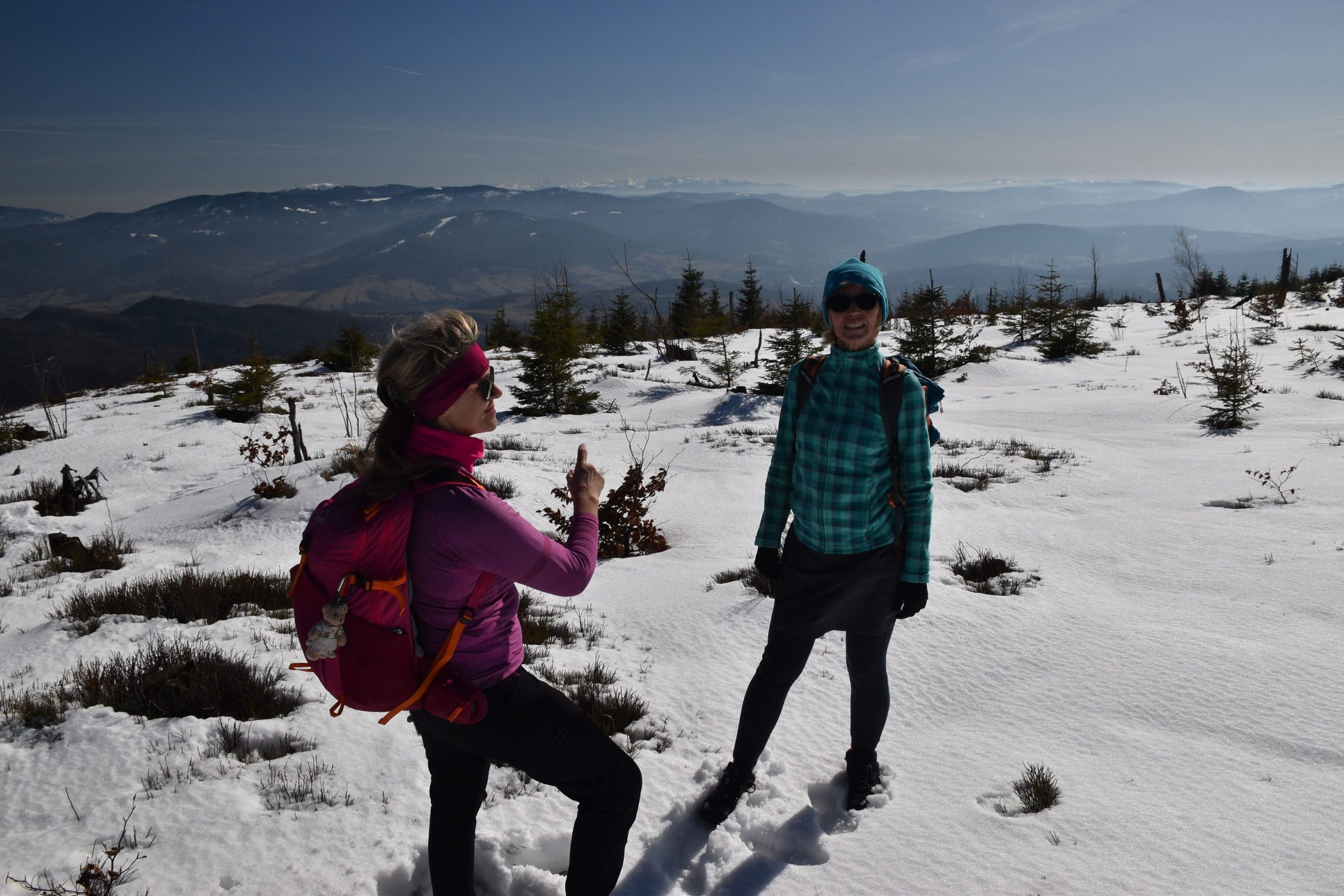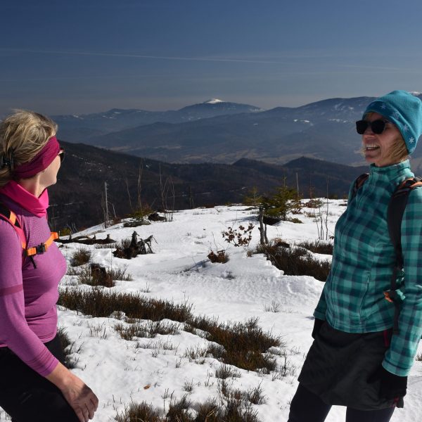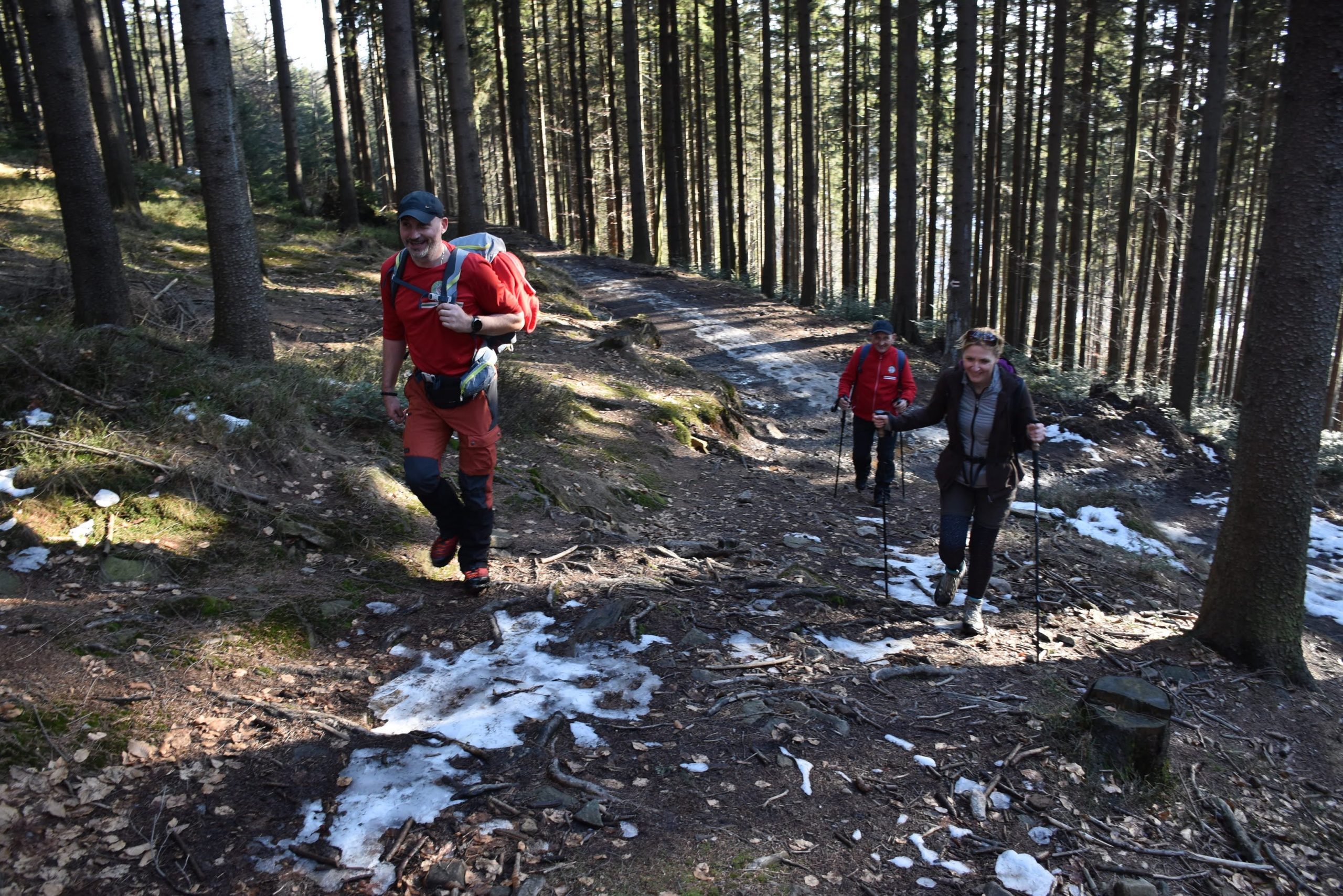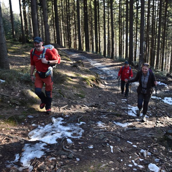 W radosnym nastroju, bo usatysfakcjonowani zdobytym szczytem i wspaniałymi widokami, wracamy czerwonym szlakiem w kierunku Kubalonki.