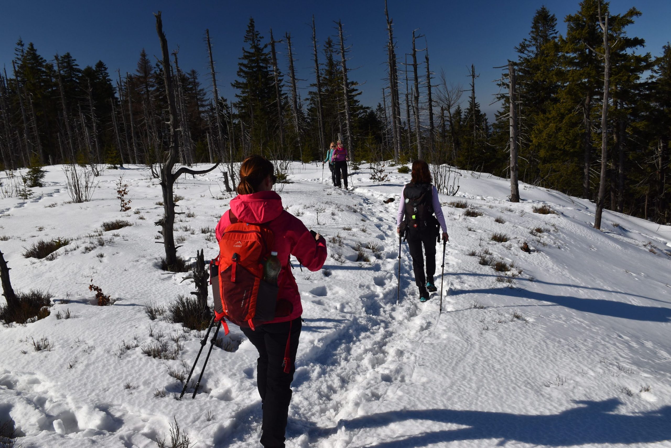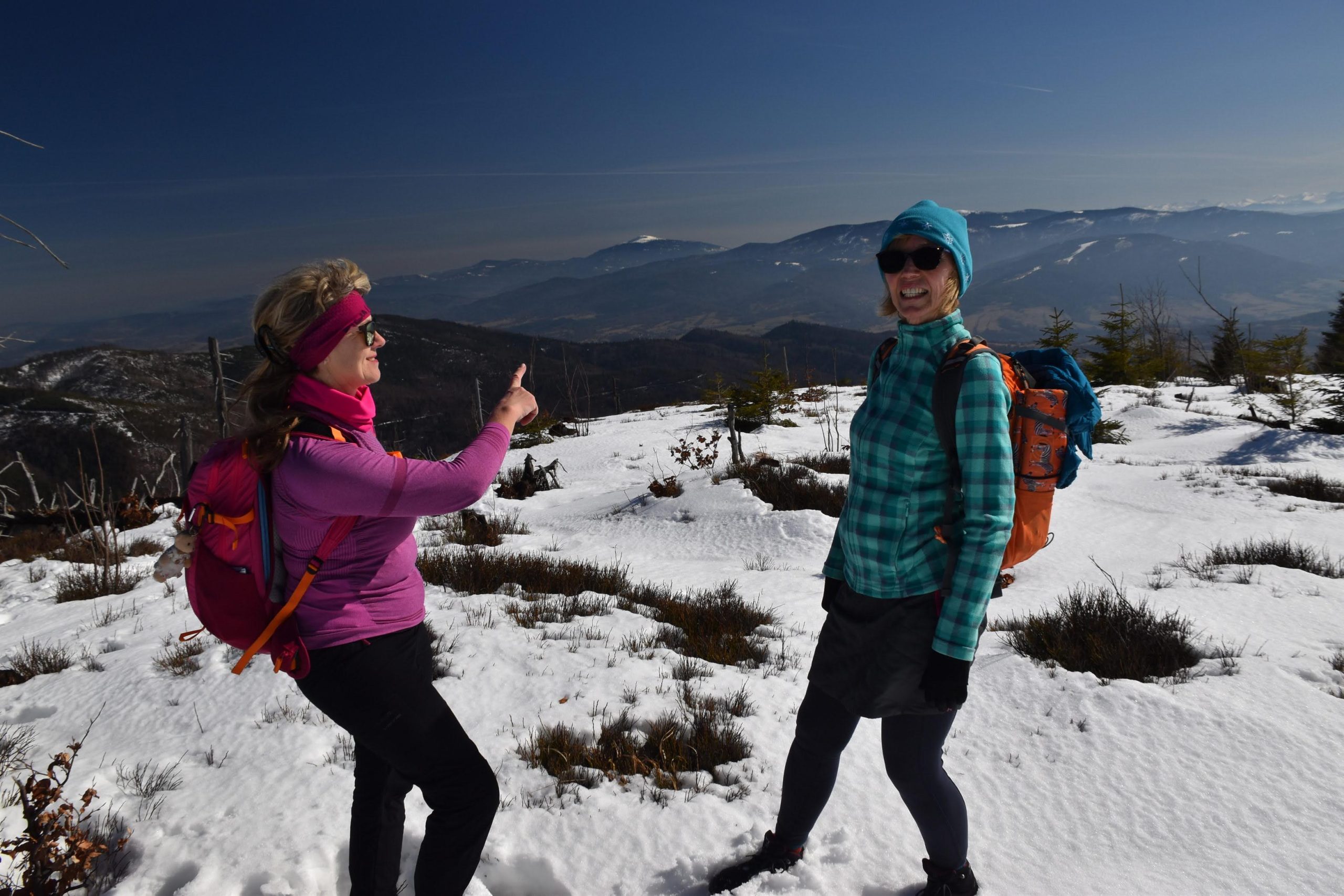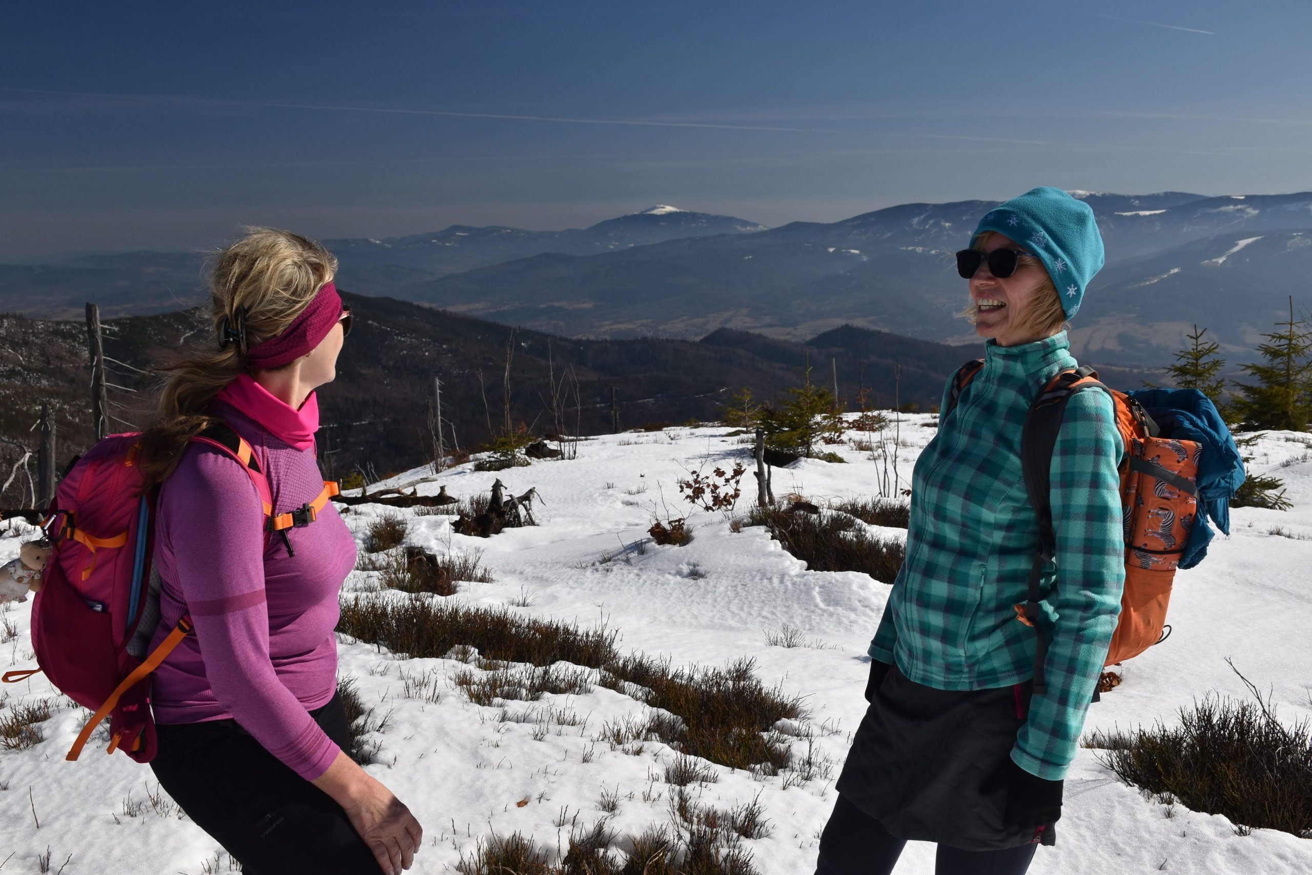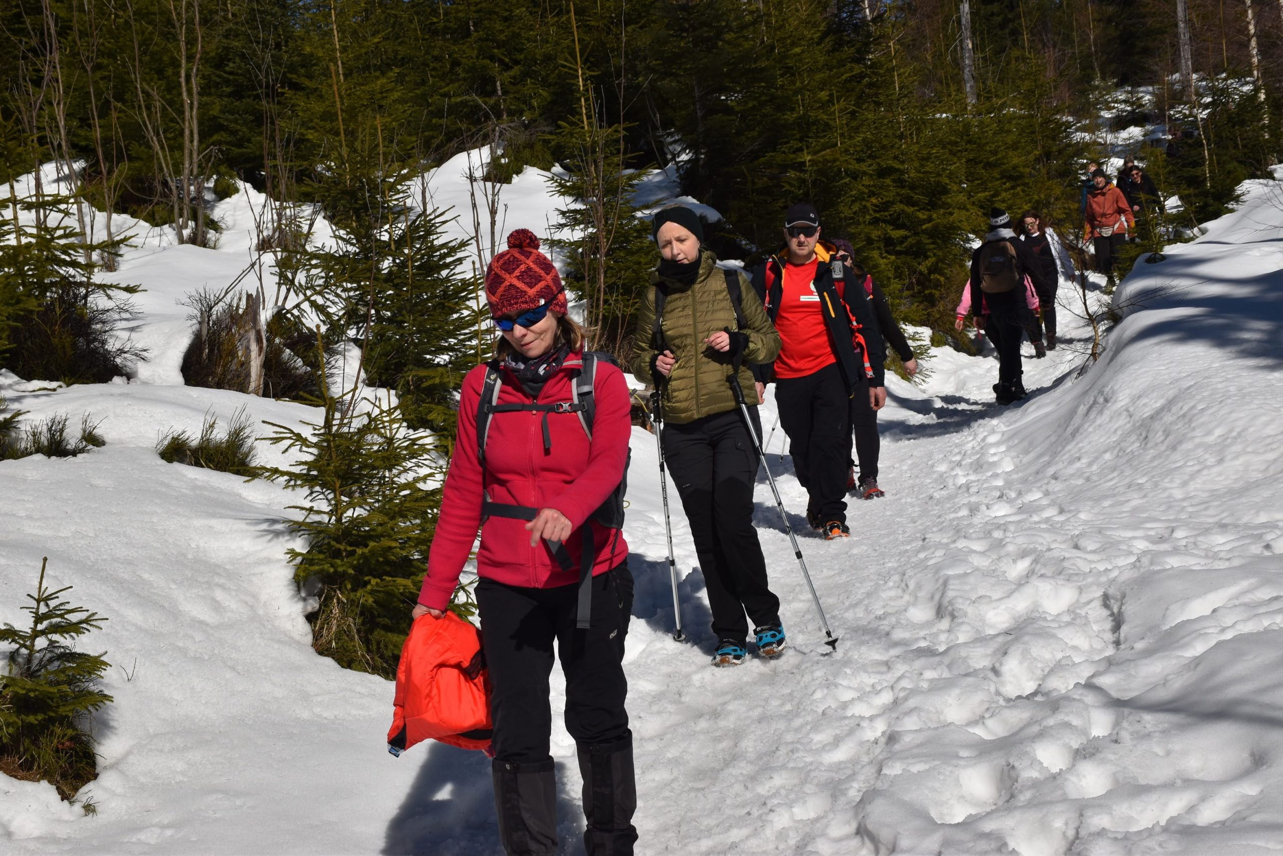 W radosnym nastroju, bo usatysfakcjonowani zdobytym szczytem i wspaniałymi widokami, wracamy czerwonym szlakiem w kierunku Kubalonki.