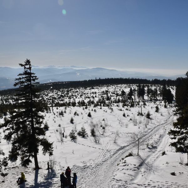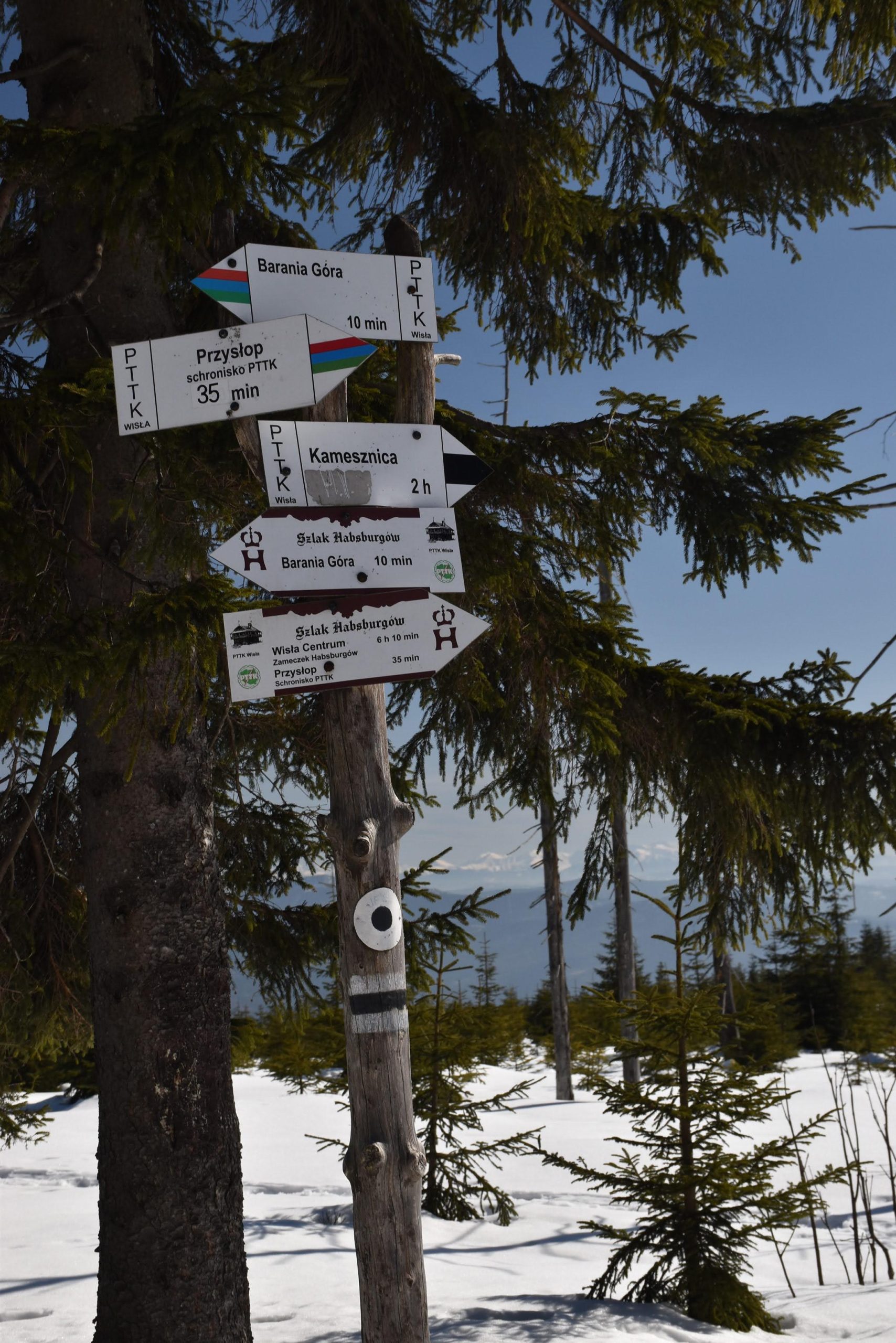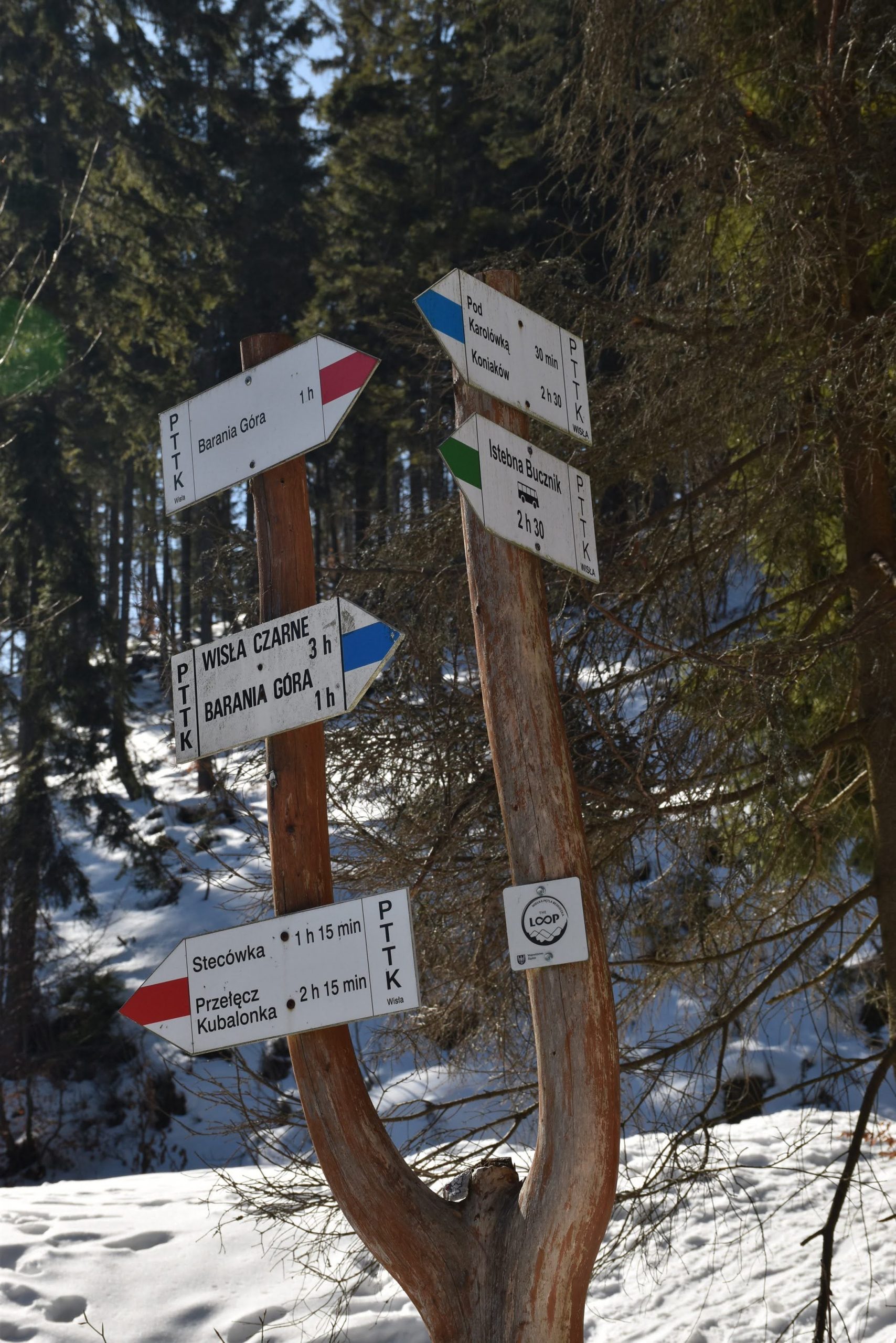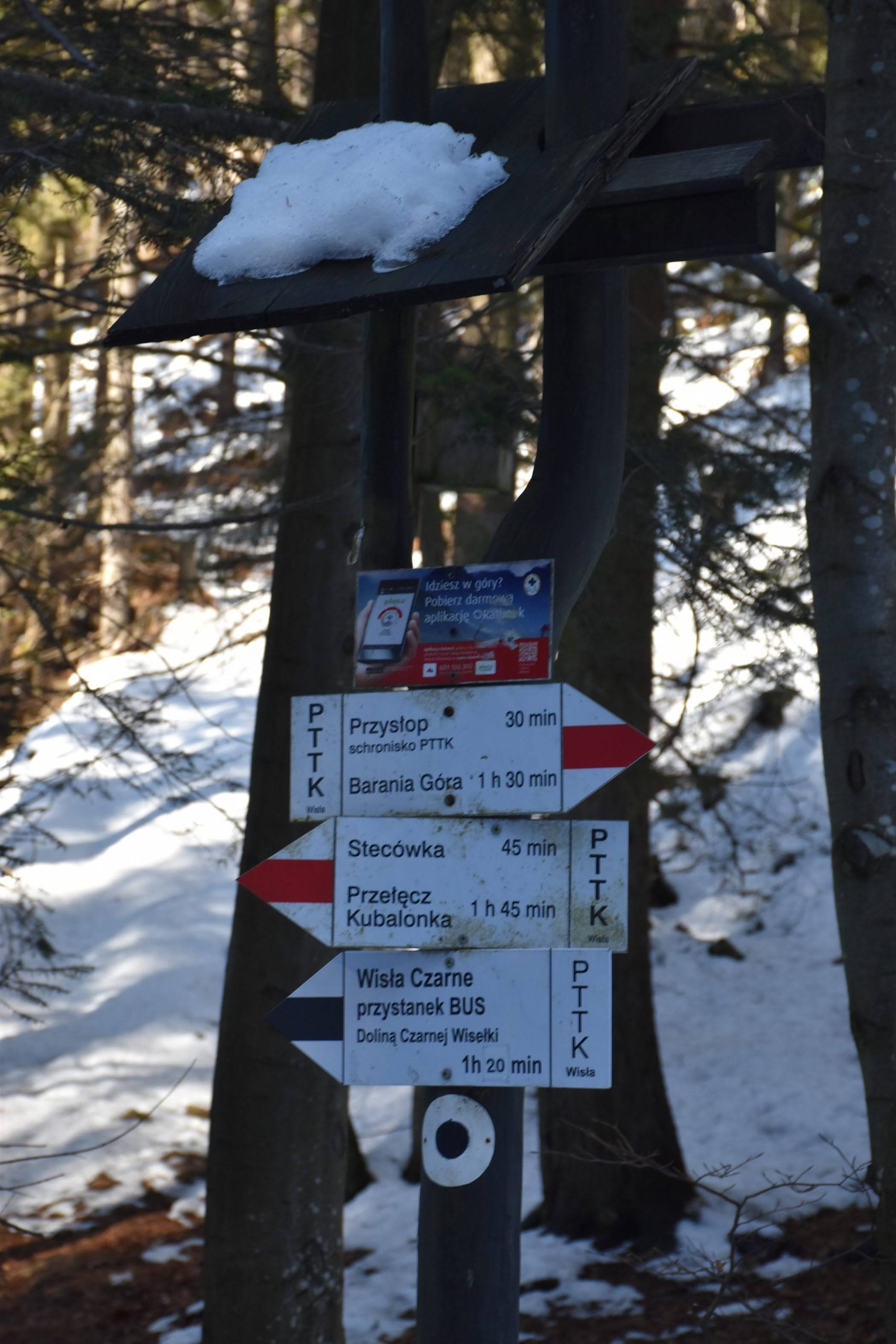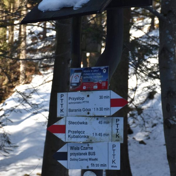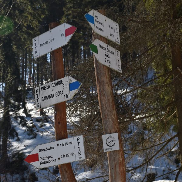 Do mety, czyli na Przełęcz Kubalonkę, docieramy przed 16:00. Kubalonka jest jedną z ważniejszych przełęczy na mapie Beskidu Śląskiego. Położona na popularnej drodze łączącej Wisłę z Istebną (tzw. Pętla Beskidzka), rozdziela pasmo Stożka i Czantorii od pasma Baraniej Góry i słynie z tras narciarstwa biegowego.
