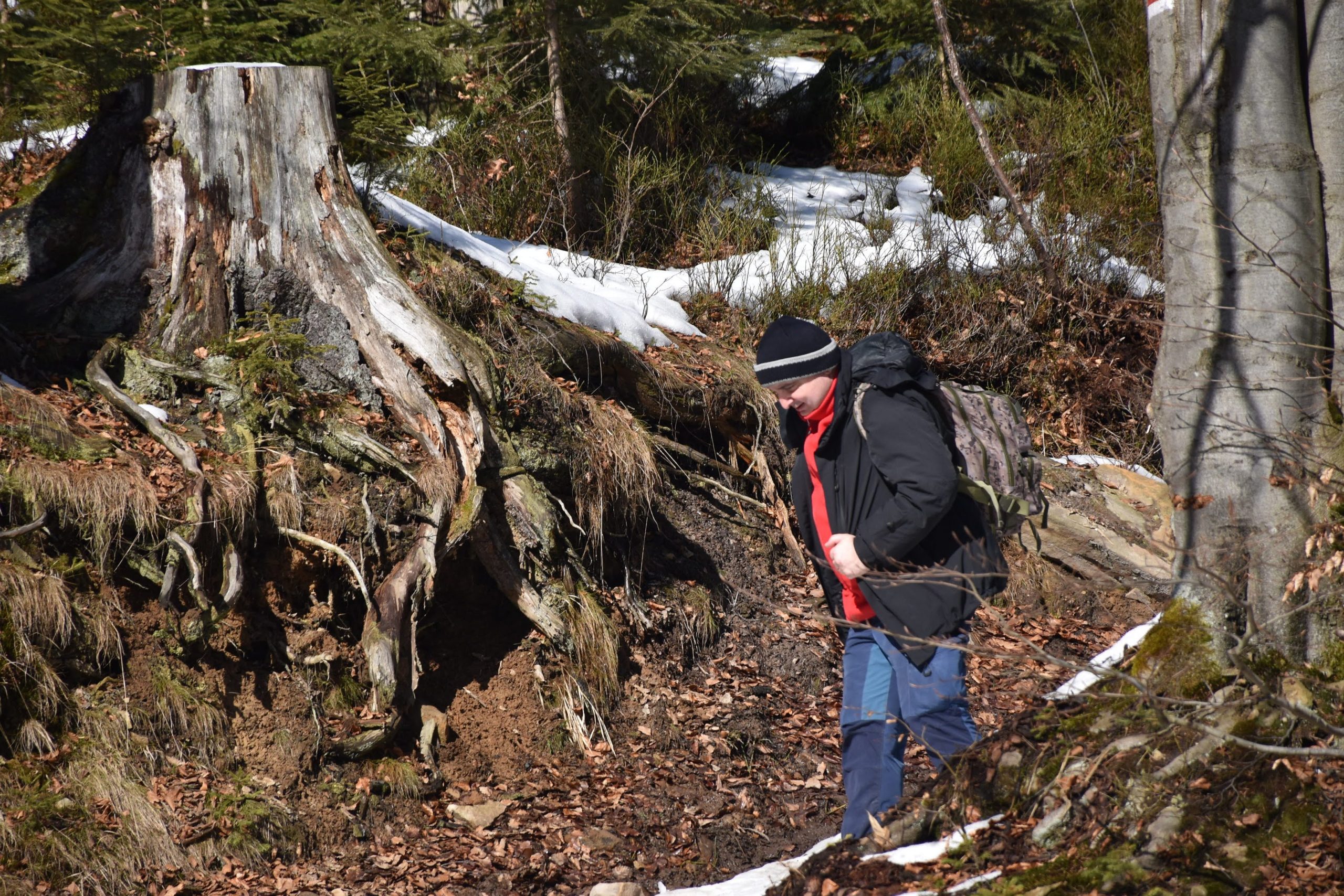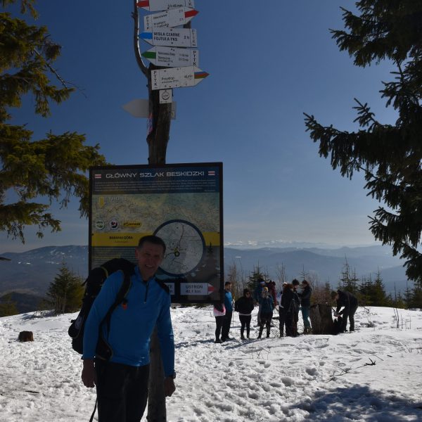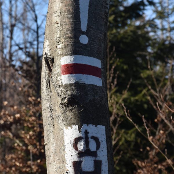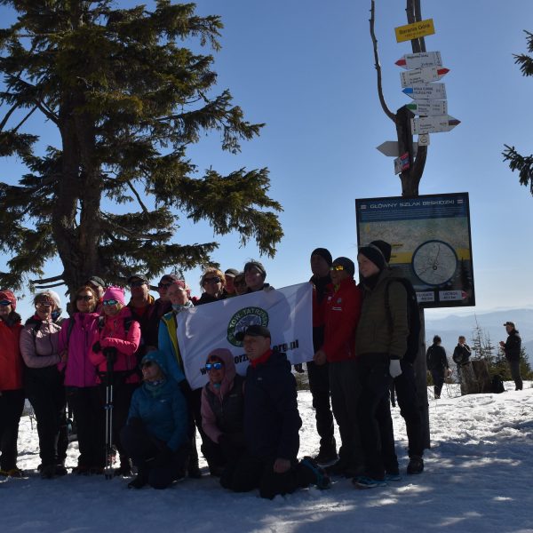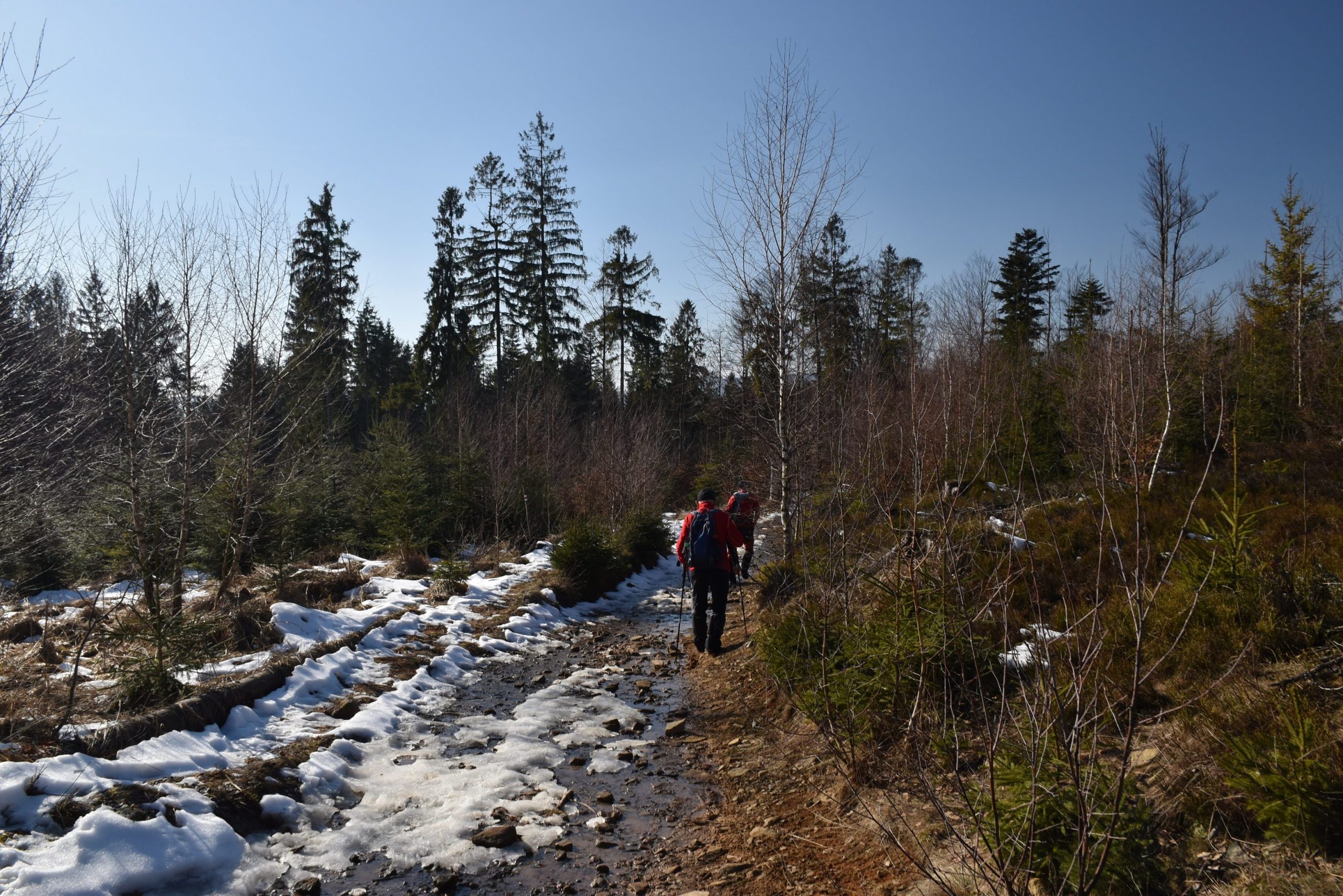 a wkrótce łączymy się z oznaczonym na czerwono Głównym Szlakiem Beskidzkim, na którym pozostaniemy do końca dnia.