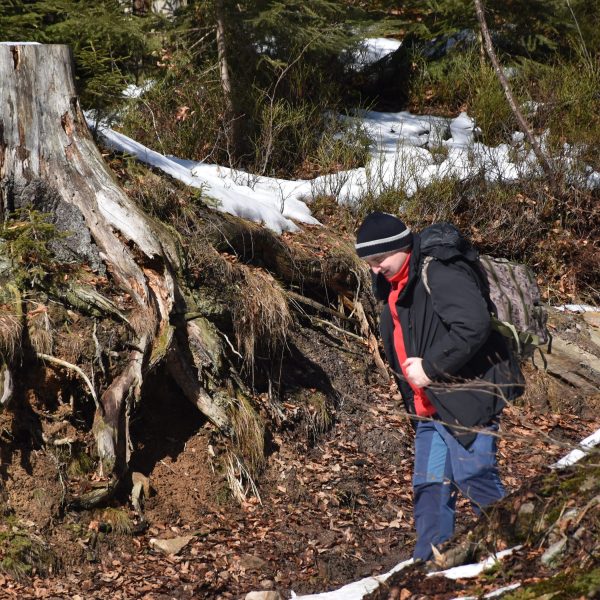 Gdy już czas ruszyć, mamy do wyboru dwie trasy: asfaltową drogę biegnącą równolegle do szlaku (fragment Głównego Karpackiego Szlaku Rowerowego) lub oznakowane leśne ścieżki. Większość grupy wybiera drugi wariant.