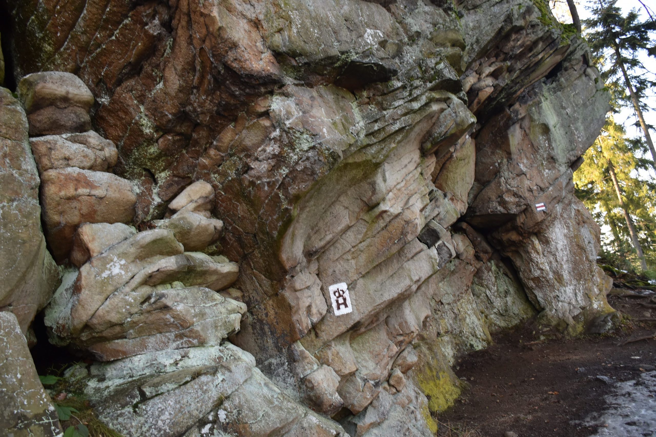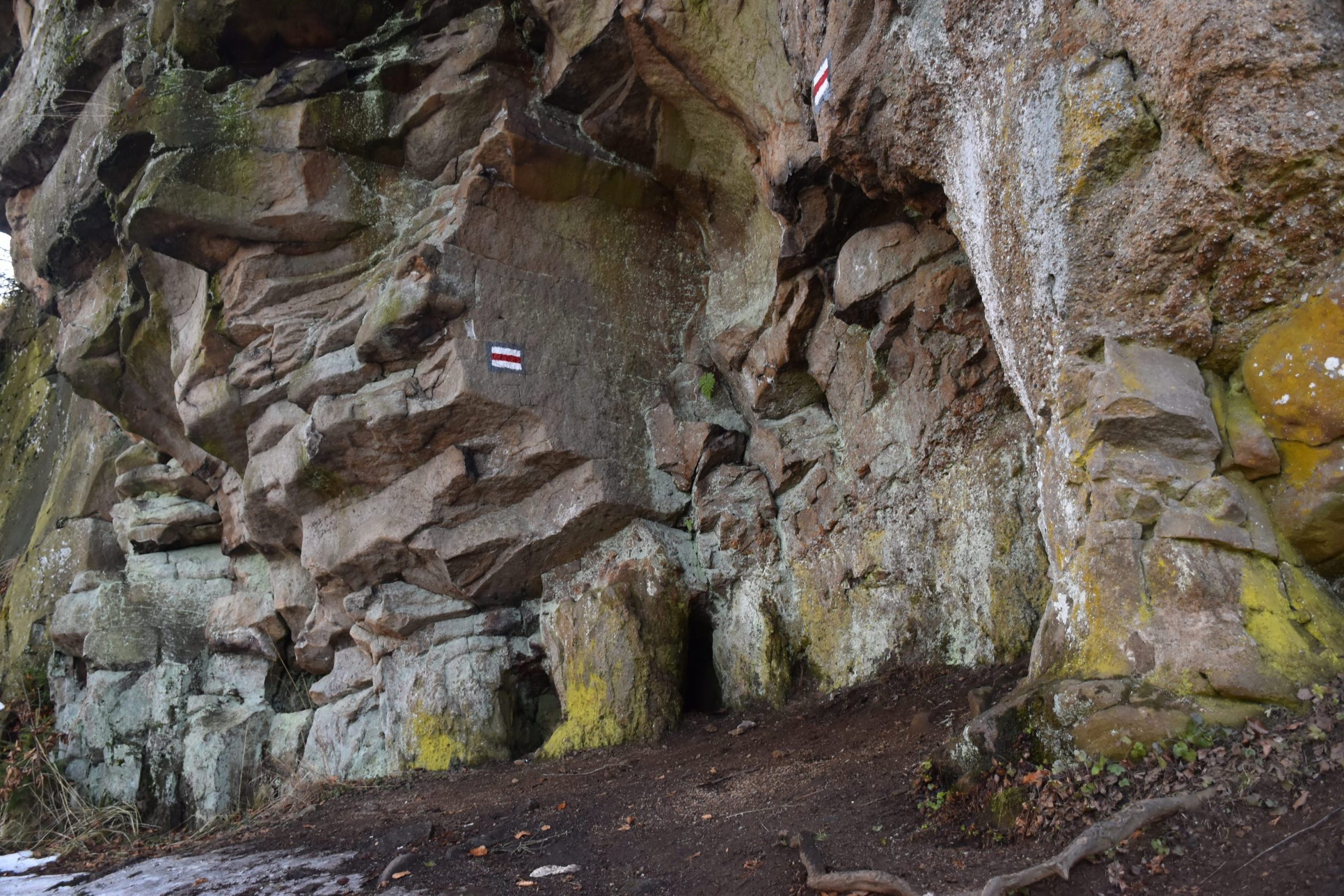 Schodzimy dalej za czerwonymi znakami,